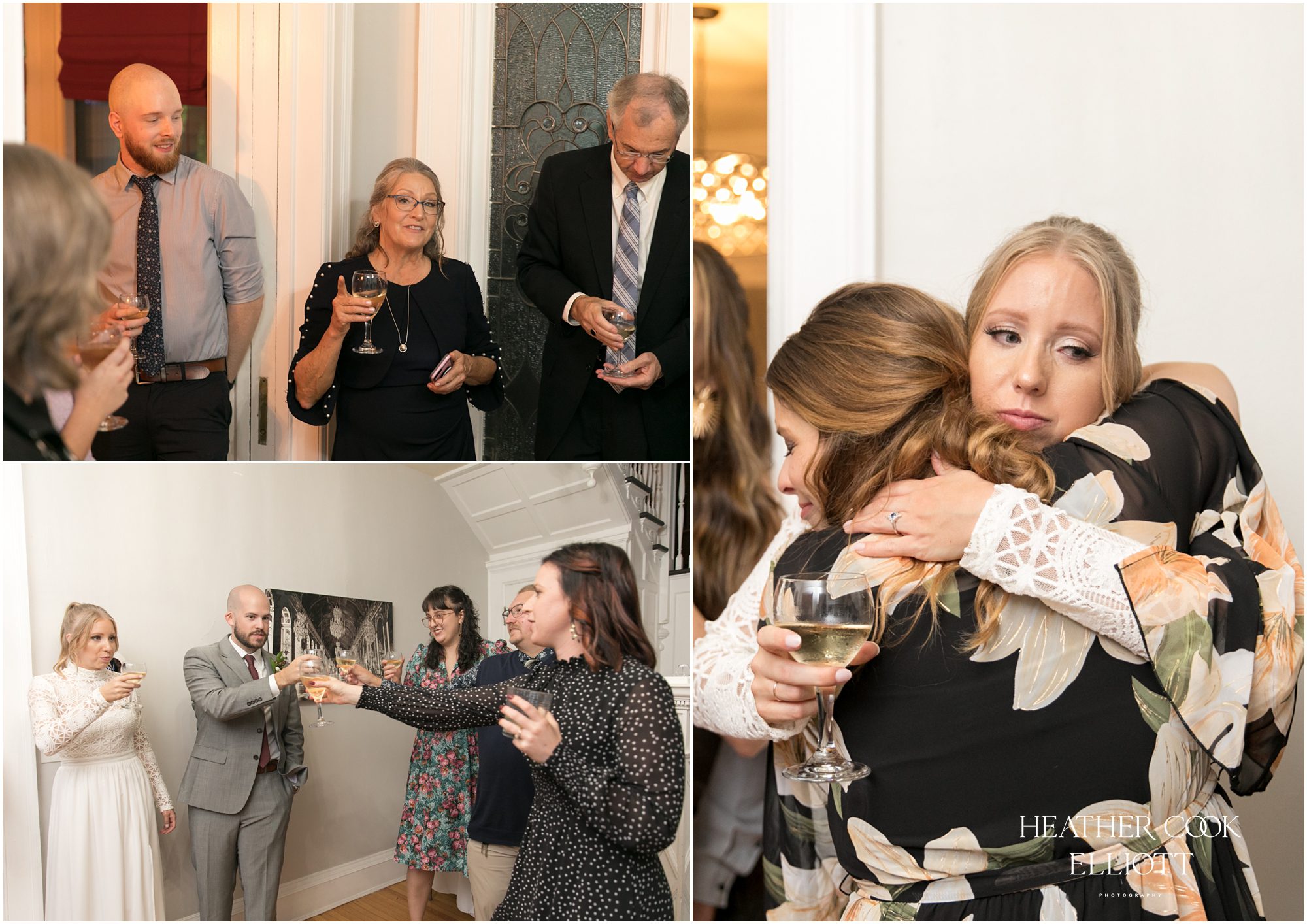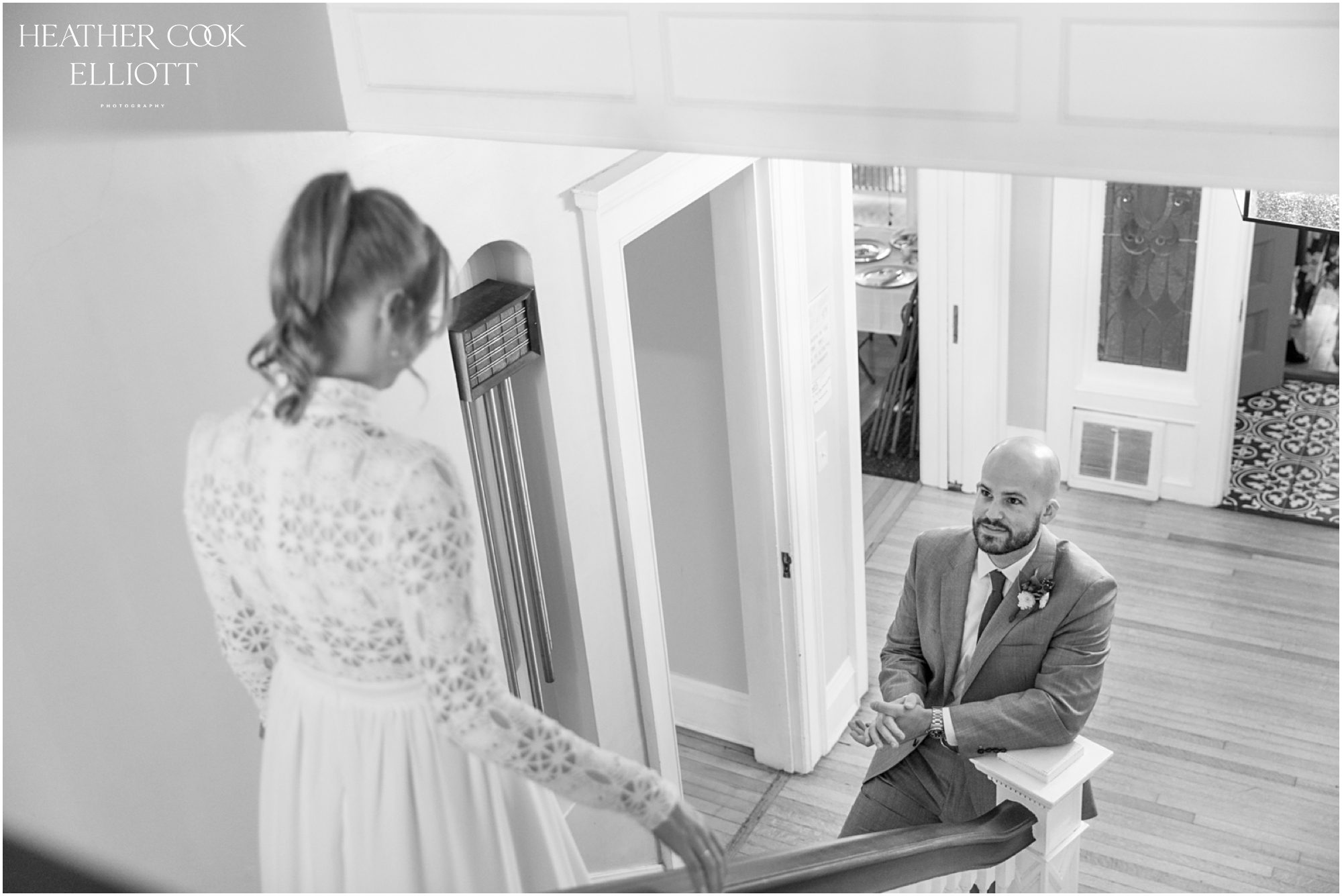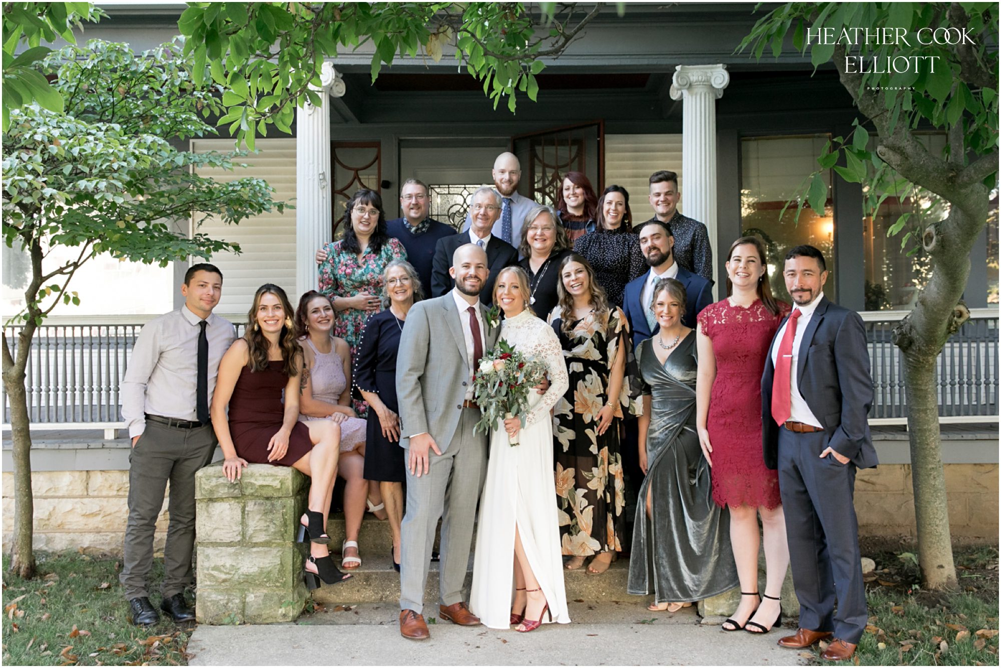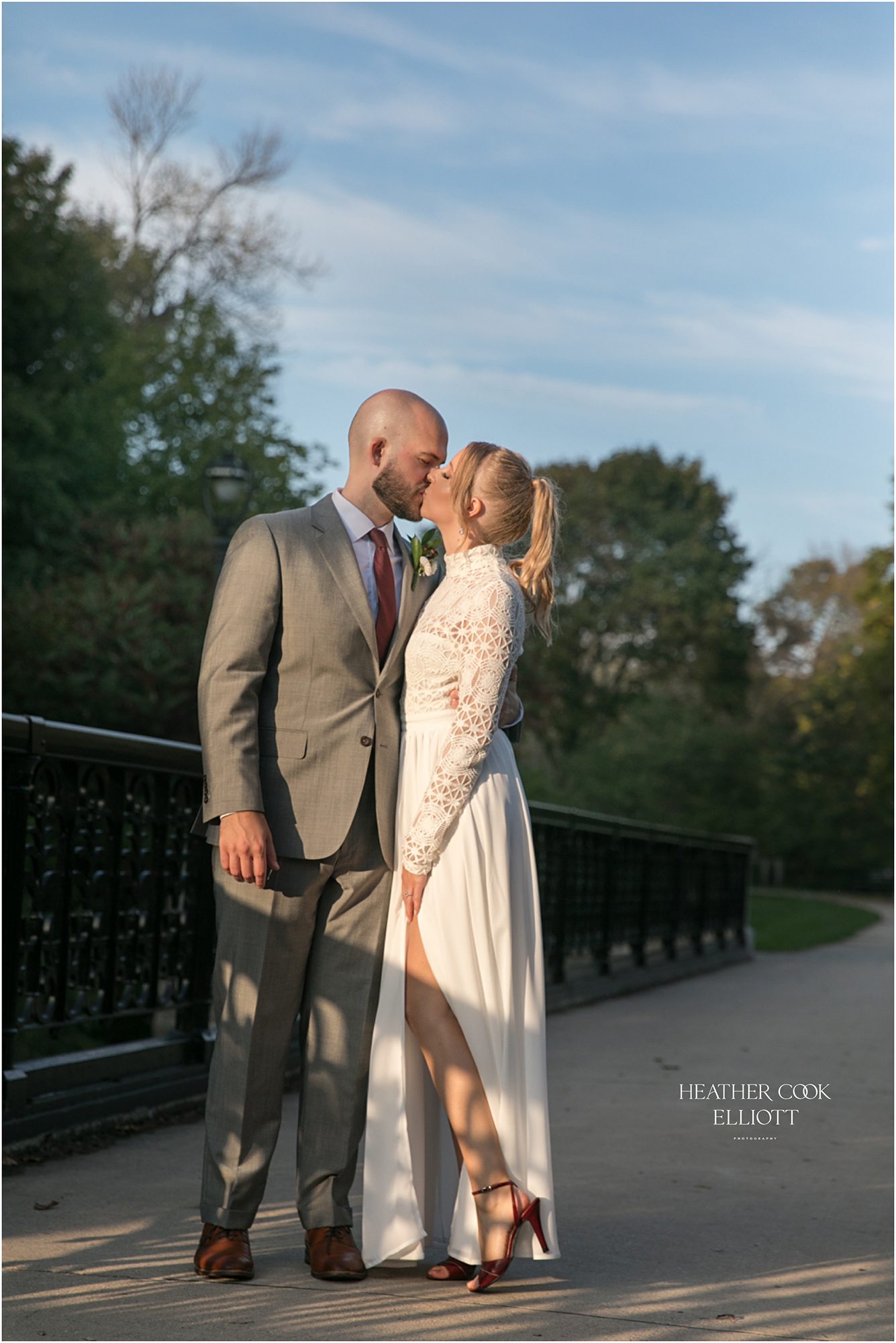 After more than a decade of photographing weddings I can sometimes get a little hubristic and think I’ve shot every kind of wedding. But then a delightful couple like Anna & Mark come along and turn that thought on its head and friends, I am so grateful for that fact. After planning for a courthouse wedding that Covid made nearly impossible to mail down, Anna & Mark were married in the living room of an East Side historic home surrounded by joyful friends and family, and not a few bottles of Spotted Cow. They always envisioned securing a place big enough to host their immediate family and besties for a weekend and they found just the rambling old gem of a home to do that in. After family personalized it with family photos and mementos and Anna’s mom deployed her florals skills to decorate, the house became the perfect substitute for a judge’s chambers. They dressed on different floors, surrounded by their people, and they first saw each other on the home’s formal staircase. It’s true that I pretty much love every wedding I photograph but there were just so many sweet things about this one that I think it’s magic will stick with me a little longer than expected. From Anna’s vintage shoes – the same ones her mother wore at her wedding to Anna’s dad 4 decades prior – to the silly and awesome “Marks’ head” tattoos that everyone sported, from the golden hour walk through Lake Park to the delicious spread from Cafe India: every part of the day was included for its capacity to tether them to their families, spark joy, and create memories. Sounds like as perfect way to get married, right?