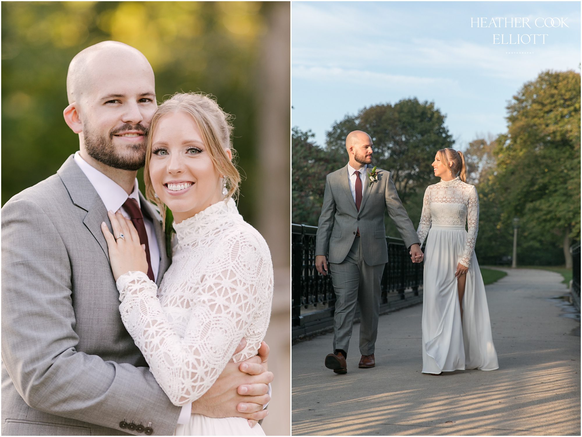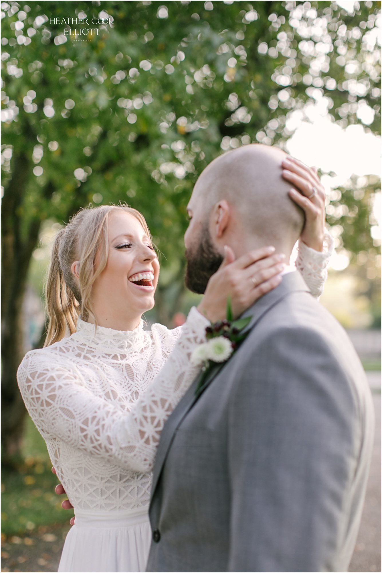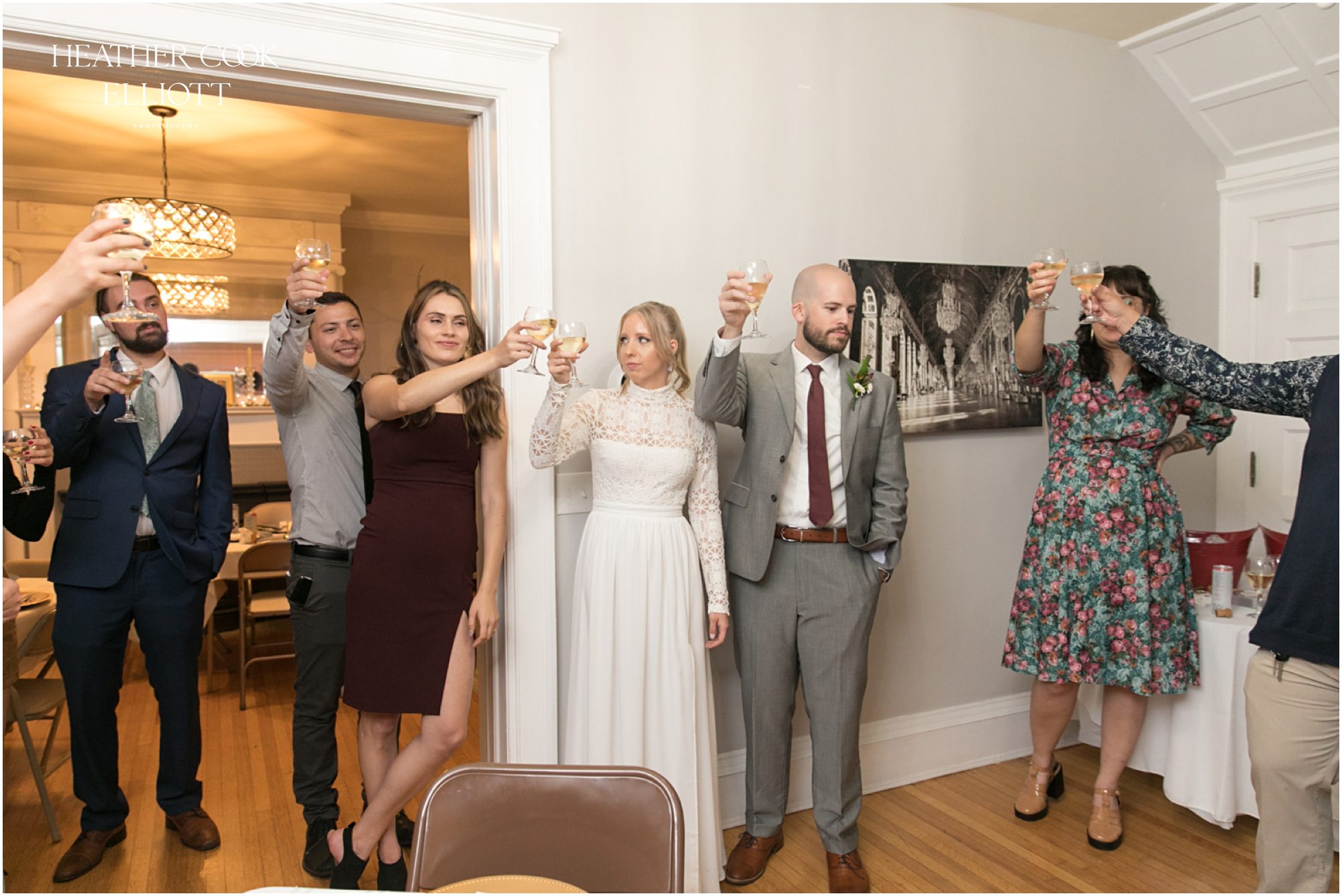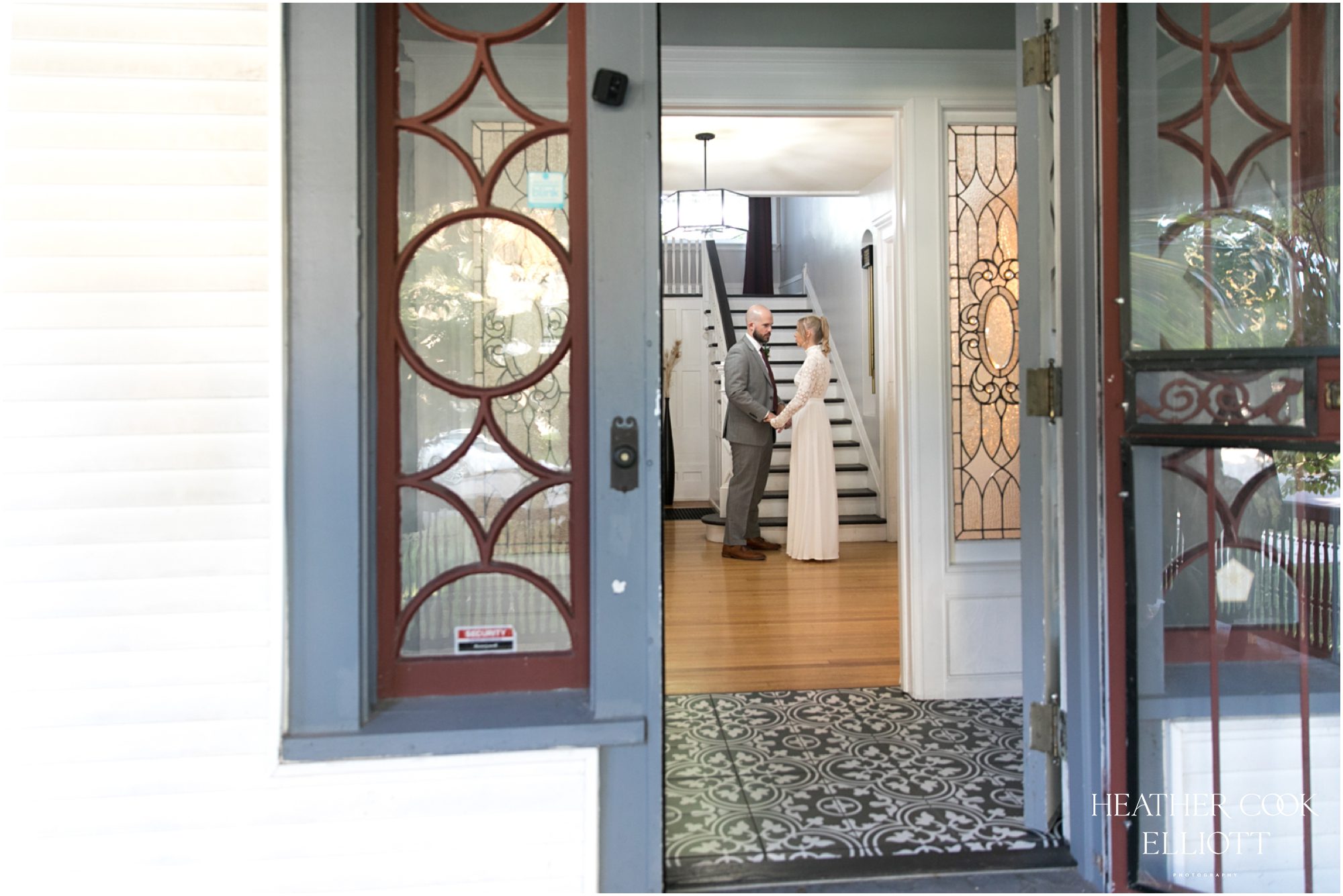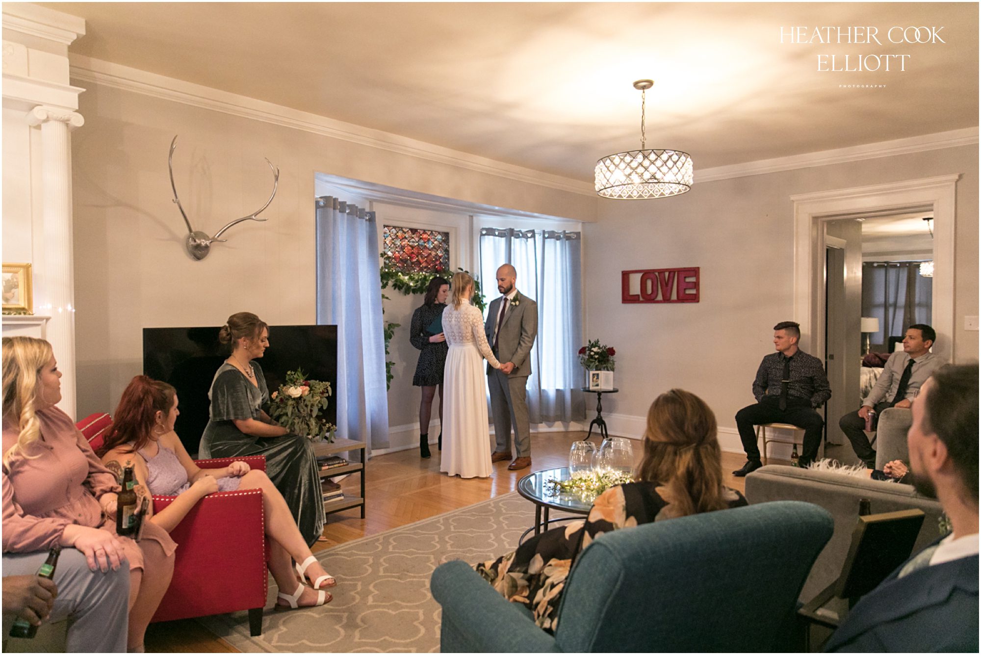 After more than a decade of photographing weddings I can sometimes get a little hubristic and think I’ve shot every kind of wedding. But then a delightful couple like Anna & Mark come along and turn that thought on its head and friends, I am so grateful for that fact. After planning for a courthouse wedding that Covid made nearly impossible to mail down, Anna & Mark were married in the living room of an East Side historic home surrounded by joyful friends and family, and not a few bottles of Spotted Cow. They always envisioned securing a place big enough to host their immediate family and besties for a weekend and they found just the rambling old gem of a home to do that in. After family personalized it with family photos and mementos and Anna’s mom deployed her florals skills to decorate, the house became the perfect substitute for a judge’s chambers. They dressed on different floors, surrounded by their people, and they first saw each other on the home’s formal staircase. It’s true that I pretty much love every wedding I photograph but there were just so many sweet things about this one that I think it’s magic will stick with me a little longer than expected. From Anna’s vintage shoes – the same ones her mother wore at her wedding to Anna’s dad 4 decades prior – to the silly and awesome “Marks’ head” tattoos that everyone sported, from the golden hour walk through Lake Park to the delicious spread from Cafe India: every part of the day was included for its capacity to tether them to their families, spark joy, and create memories. Sounds like as perfect way to get married, right?