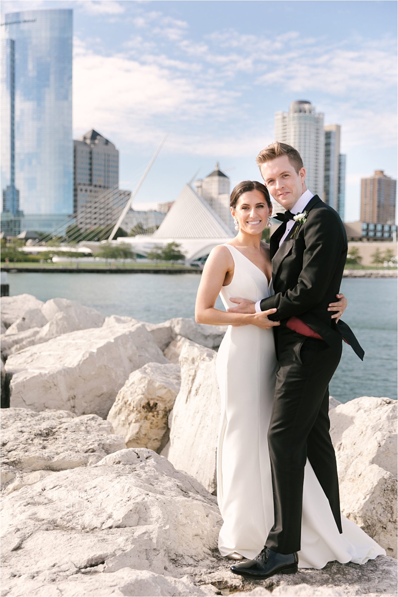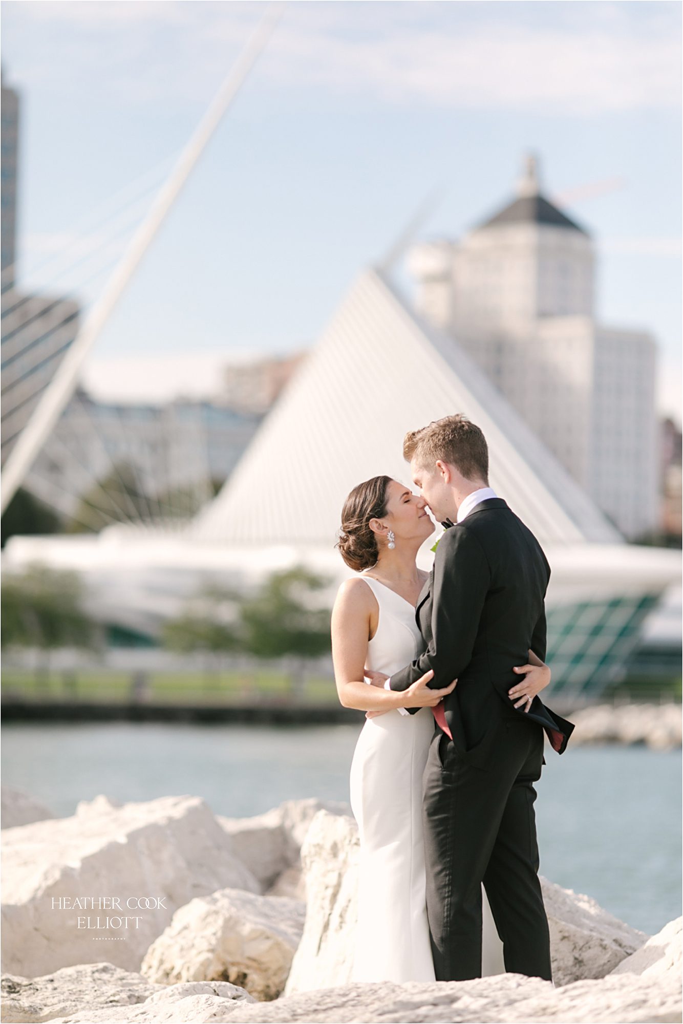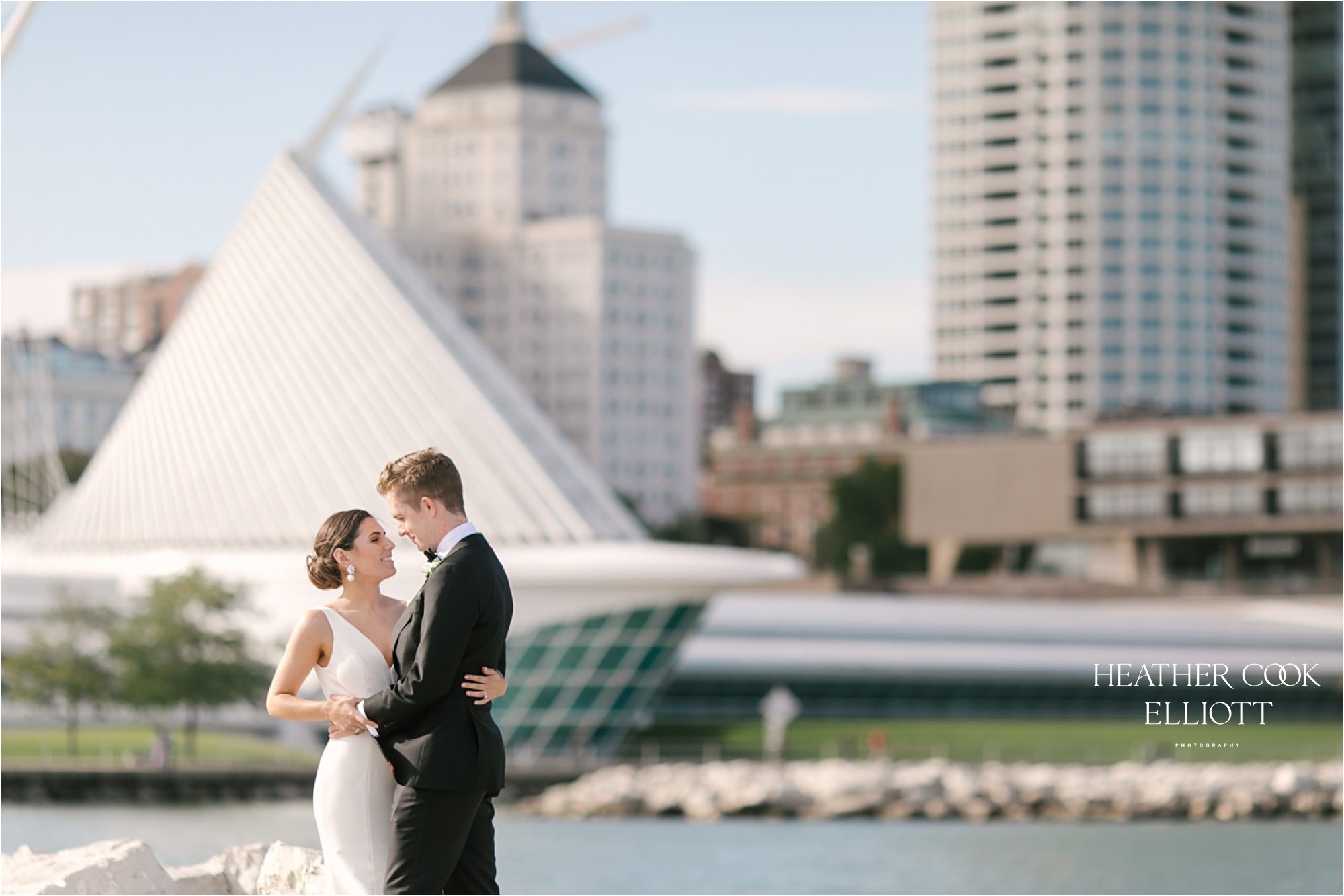 I first met Sam and Pat in their current city of San Francisco. As they took me to some of their favorite spots, meandering through the architecture of the Palace of Fine Art and then in the shadow of the Golden Gate bridge, where Patrick proposed, I couldn’t help but wonder about why we were planning for a midwestern wedding. But after a covid delay of almost exactly 1 year and the resulting opportunity to think on what matters most in this world, it is entirely clear to me why they would plan for a Milwaukee wedding. The answer is: Family and Friendship. Samantha grew up on the shores of Lake Michigan and Milwaukee will always be a sort of home. So, what better opportunity than a wedding is there in the world to introduce your east coast college friends and your west coast work friends into the world you grew up in, the world you’ll grow your family in? And oh yes, it doesn’t hurt that Milwaukee in early fall is simply glorious with warm weather days and lake side breezes, yummy light and some seriously good architecture. There was so much to love about this wedding, but I’ll enumerate just a few. Sam dressed at home and Pat met her on the backyard bluff where they exchanged personal wedding vows. They were wrapped up all day by friends and family and their sweet ceremony was officiated by a friend. After dinner Patrick’s college acapella group stunned the crowd with their vocal talents and the dance party simply did not stop all.night.long. It was a day that punctuated an entire weekend full of long-awaited fun with friends and memory making with family. It was a day worth waiting for and a day we were honored to capture in images for Samantha & Patrick.