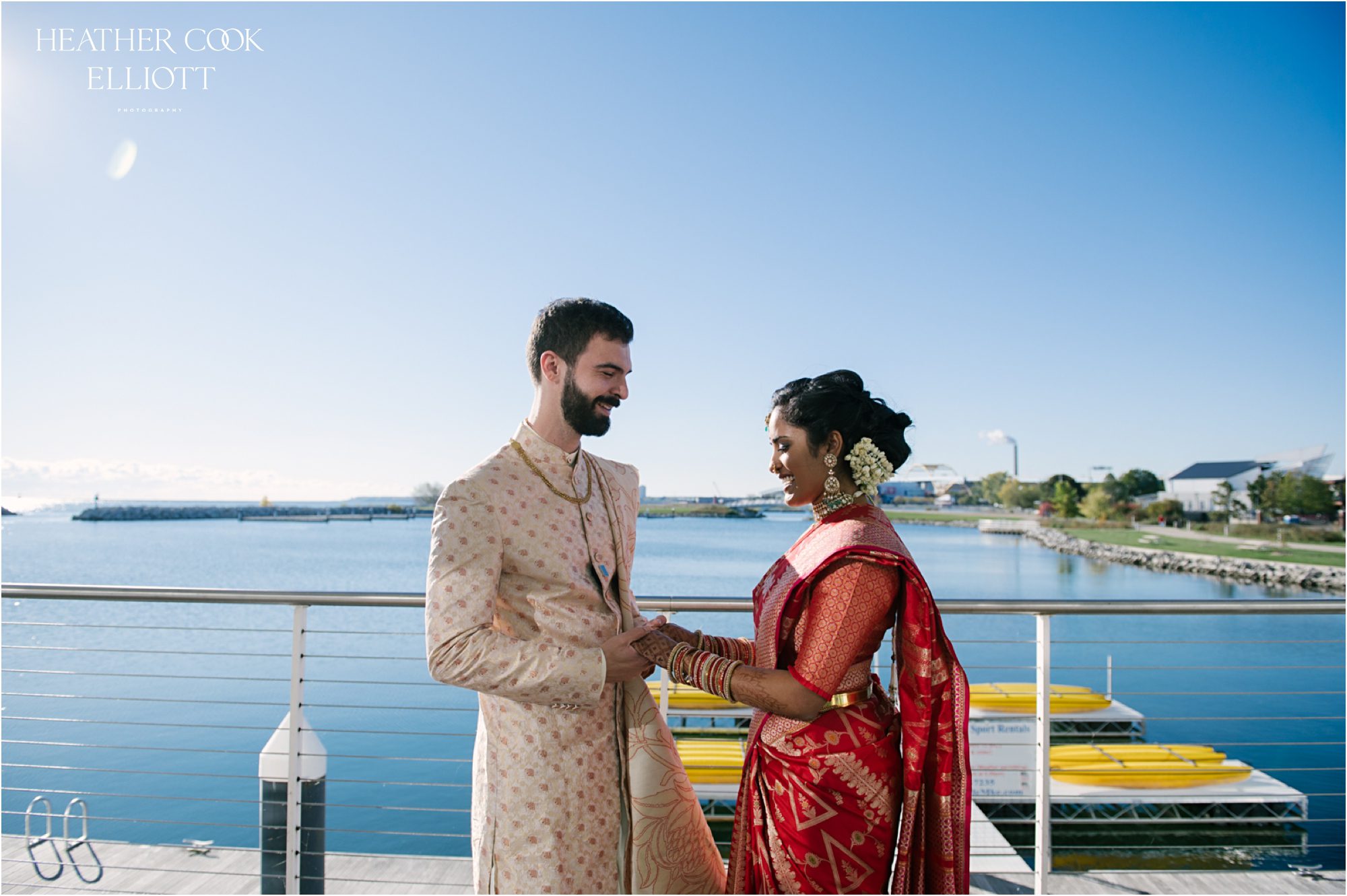 Jared & Katya’s wedding morning was one of many incredible days on their path to being officially official. In fact, if you missed out on the start of this three blog extravaganza of loveliness and joy, hop back here to see Katya & Jared’s Sangeet night. But if you are here to witness a most elegant and deft fusion of both Jewish and Hindu traditions, then you are in the right place. Surrounded by bright light and bright blooms, Katya & Jared were married in full color and with full hearts at Discovery World on Milwaukee’s lakefront. These pictures really are worth a thousand words in this case so let’s use our time wisely and start a slow scroll to take in all the goodness of these two getting married.