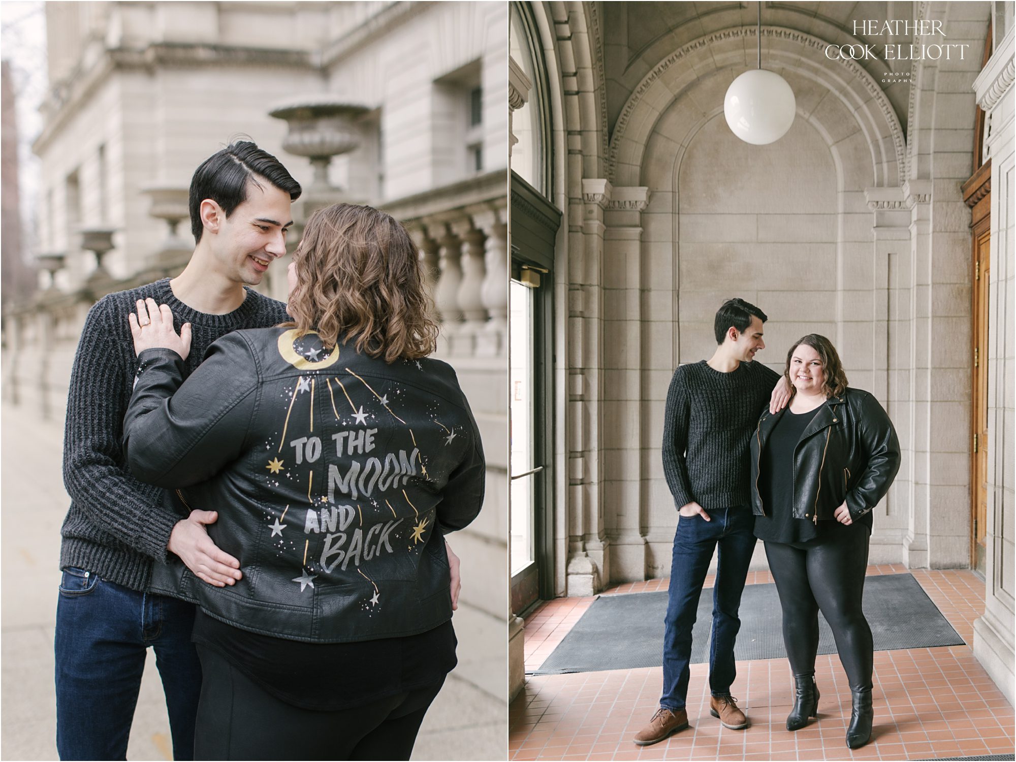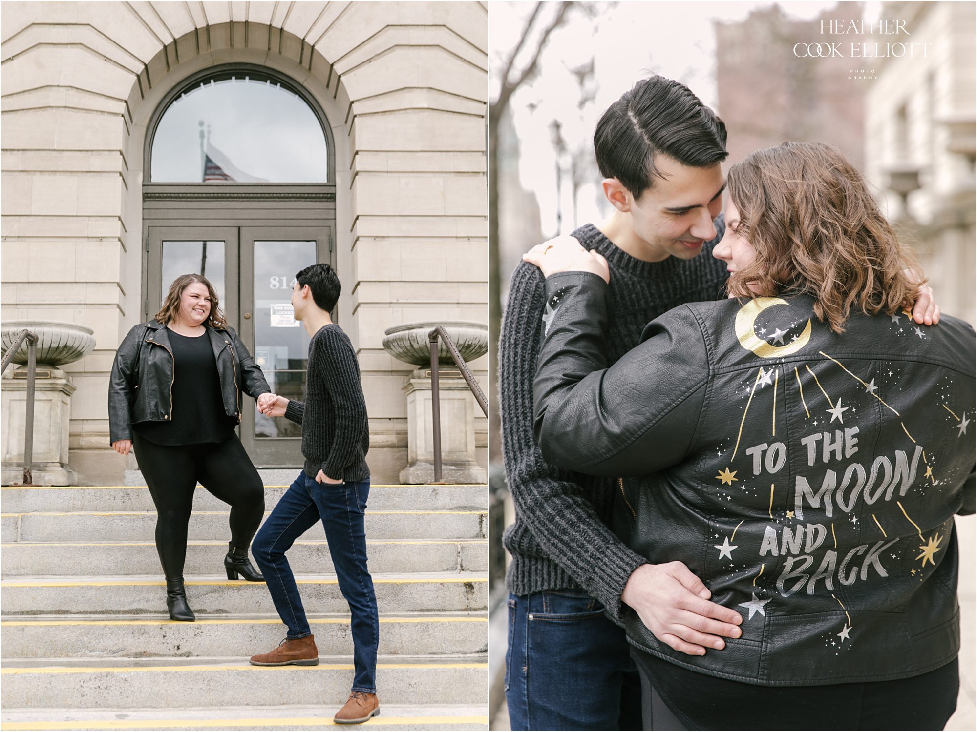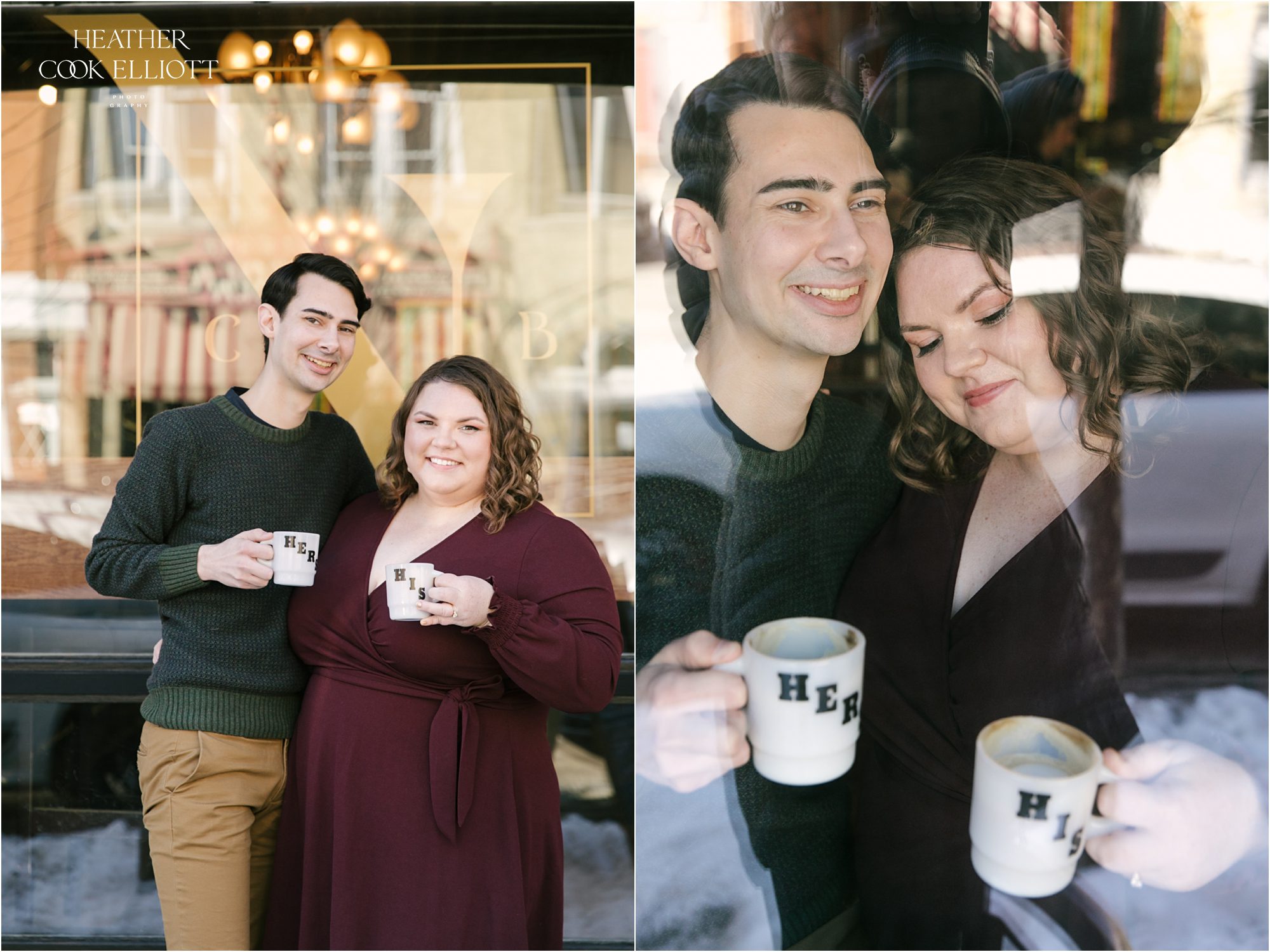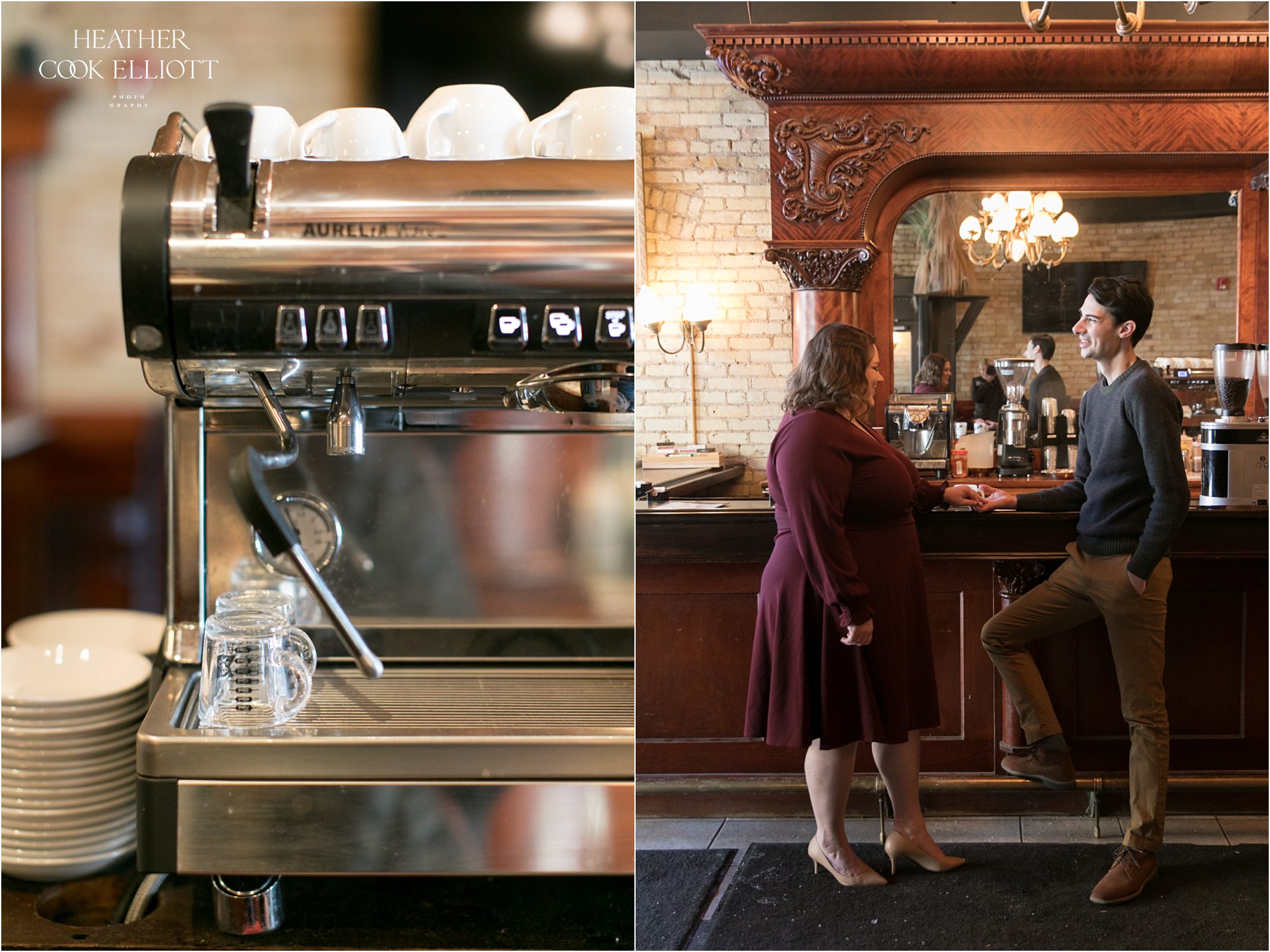 Kate & Andrew have a sweet and funny how we met story that certainly qualifies as a meet cute. It involves a bit of mistaken identity and what in the world is he wearing fashion, a bit of defiance and a whole lot of challenge. But the challenge part was restricted totally to the chase, because once Andrew got his girl and Kate got her beau the story has revolved around devotion, friendship, fun, a cat named Freddy and dreaming of a life spent with one’s soulmate. They play in a cribbage league (raise your hand if you are jealous) and coffee is their friend so we paired their real life with a bit of city wandering to make their engagement session a fun and flirty affair. It was lovely and full of laughter, and a perfect way to spend time getting to know these two kind hearted loves.