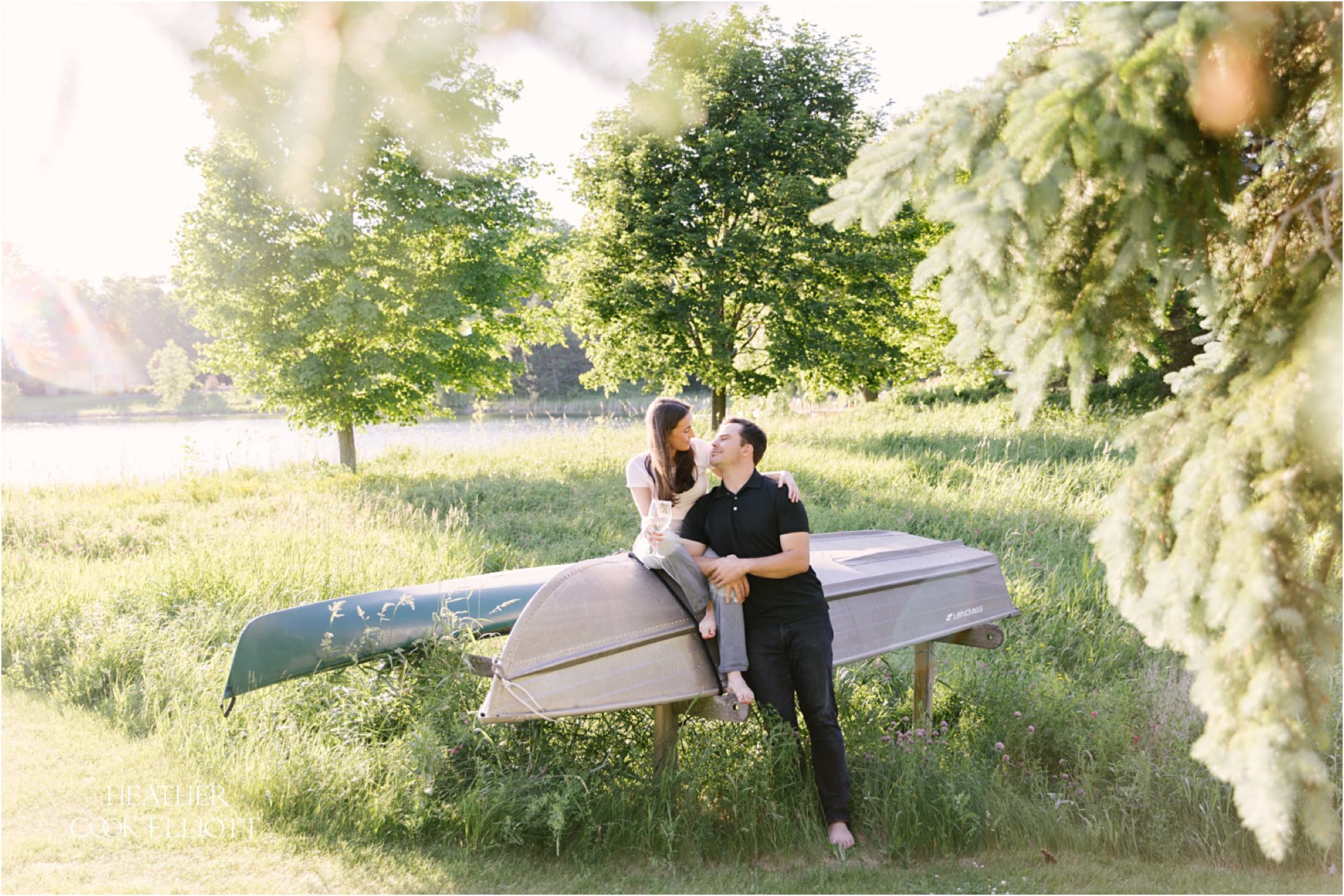 Haleigh and Luke’s wedding planning story is one about family. The families that made them, the family they’ll become. From the engagement ring to the wedding date (they’ll share an anniversary date with her parents), family keeps coming up in any conversation about their wedding. So it was no surprise when Haleigh mentioned she would like to do their engagement session at her grand parent’s lake house where her parent’s were married. See what I mean? But it must be said that even without all of the place based awesomeness, Haleigh & Luke would still be an amazing couple to photograph. They are easy to laugh and clearly madly in love, two city people who dig barefoot walks on lake piers and sunset cocktails to close out any day. So grab a glass of something bubbly (or a bottle of something hoppy) and kick off your shoes; this is a good one and you’ll want to drink it in fully.
