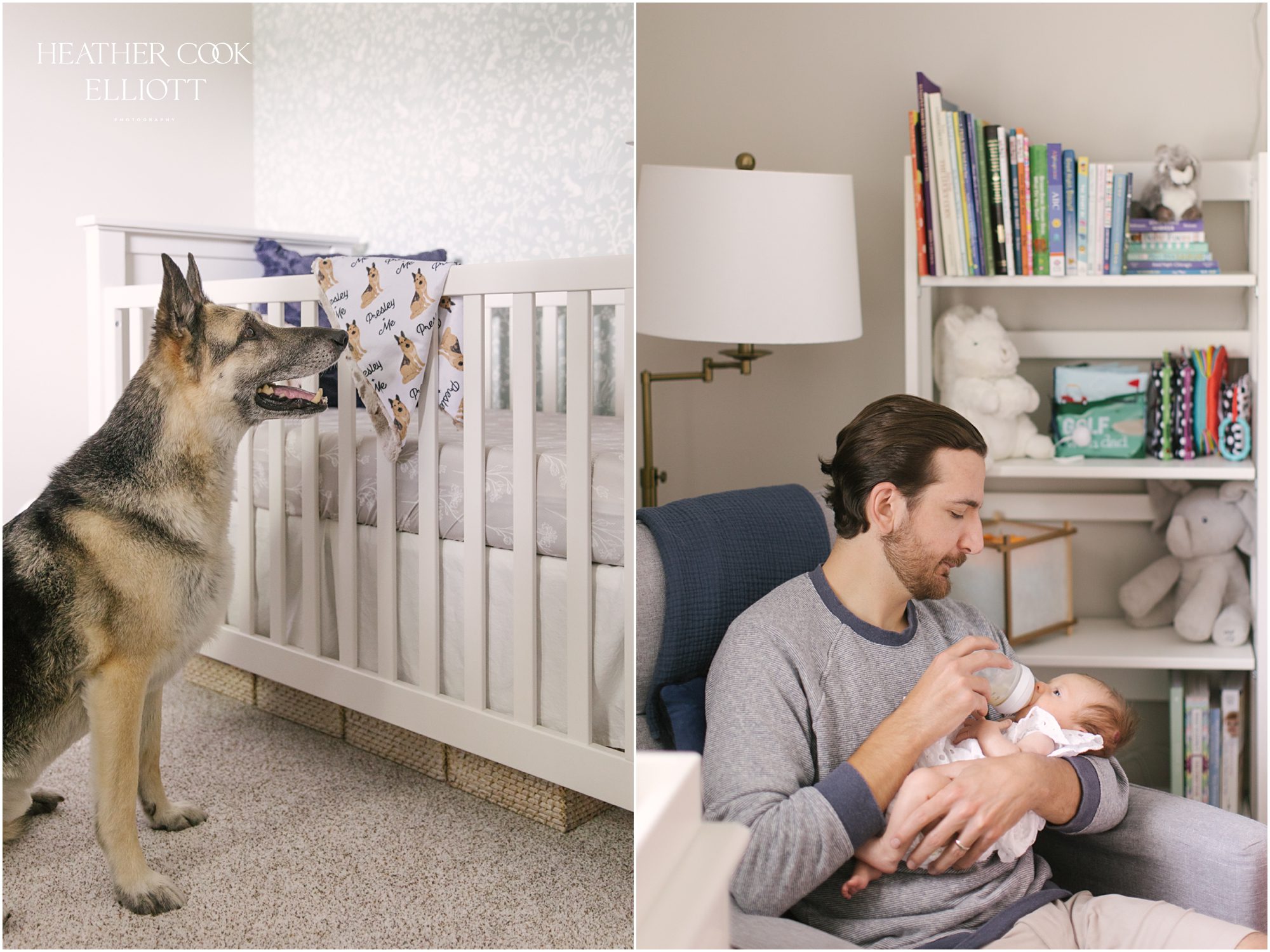 Any baby with a warm home and parents willing to cuddle and coo is lucky in this world, but Stella Jean hit the family jackpot. Her home is warm & bright, filled with art and memories of lives very well lived. Her room has hand drawn illustrations of beloved grandparents and she has a built in protector in her fur sibling Presley. But best of all, her parents are two kind souls madly in love – with one another and now, with her. We photographed her parent’s wedding and engagement a few years ago so I write this with some prior knowledge, but upon seeing them again for this session it was irrefutably apparent how much these two have grown in life and love and how ready they are to be the best parents they can be for Stella Jean. Congratulations to those in these photos; you make a beautiful family of three (four!)