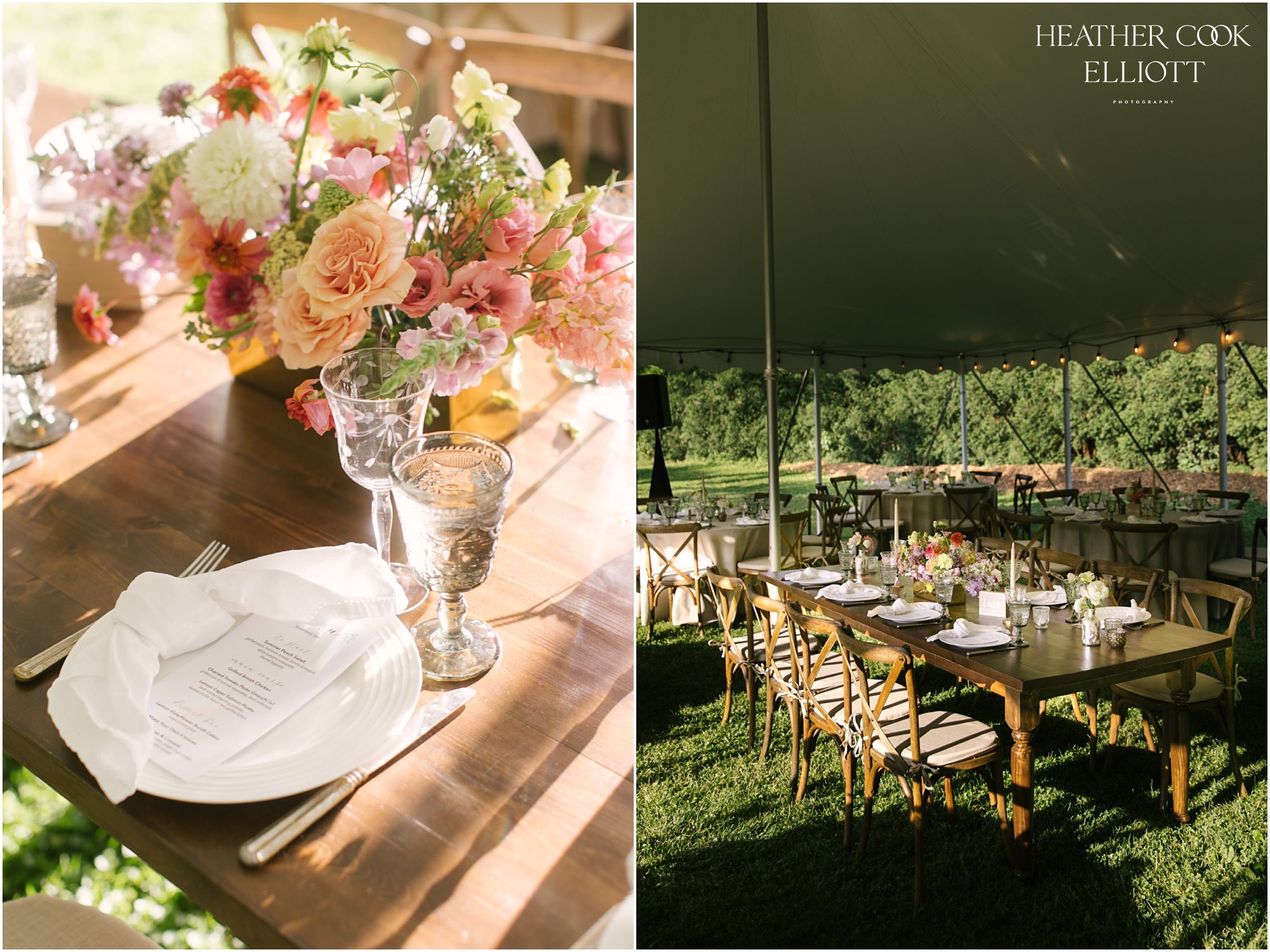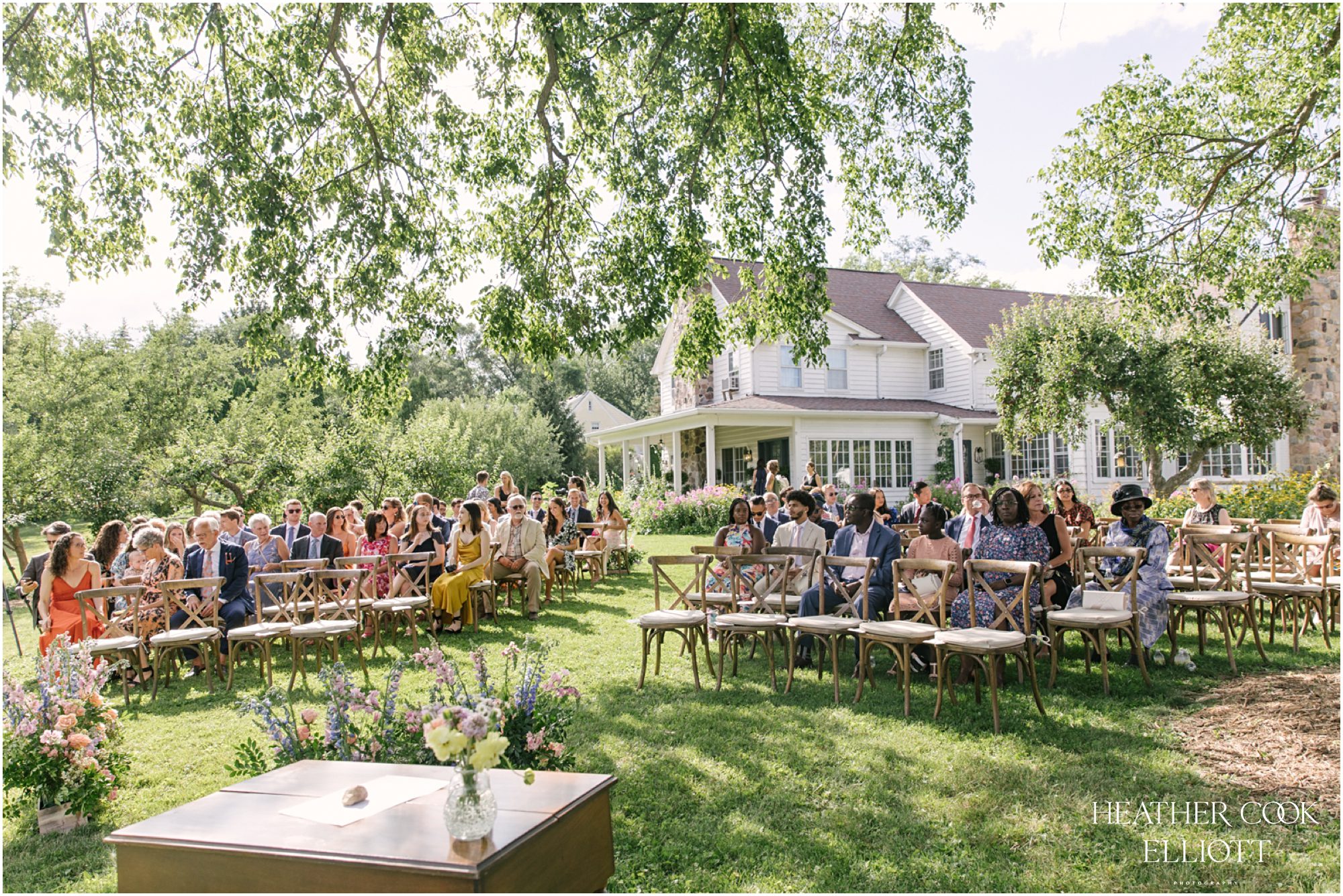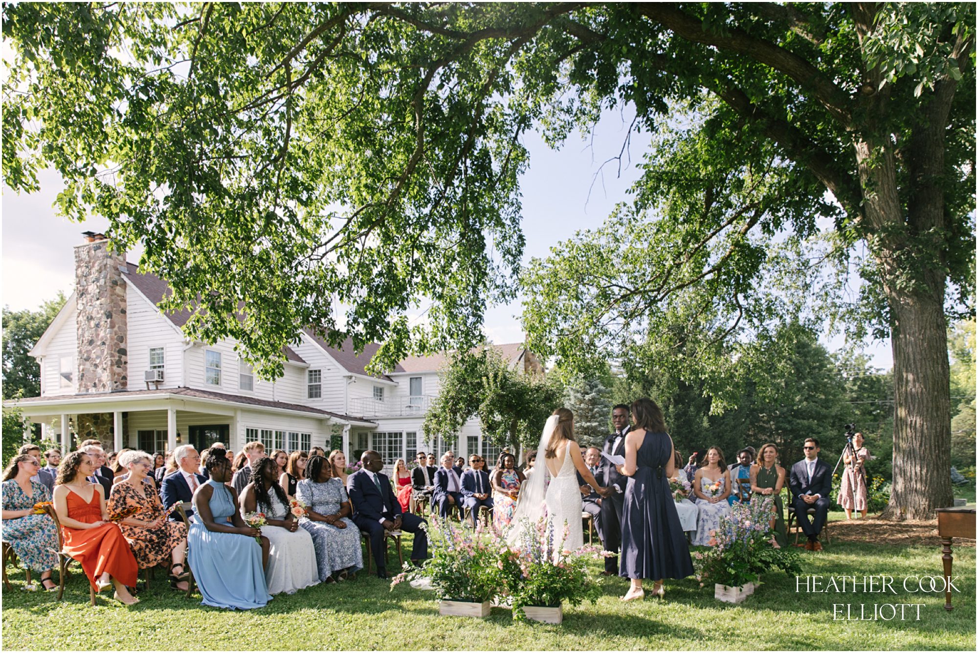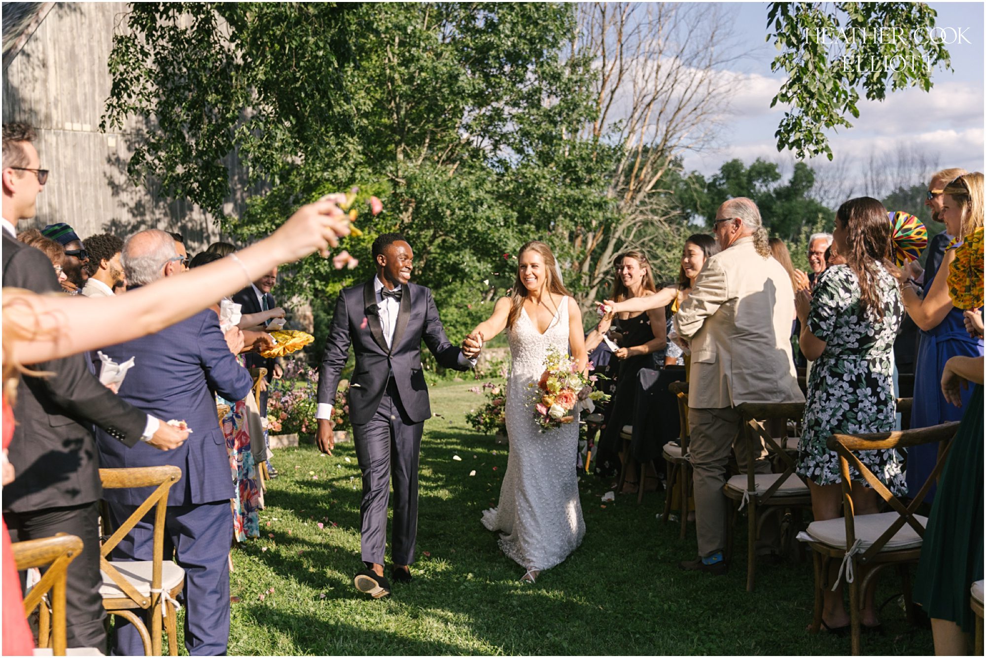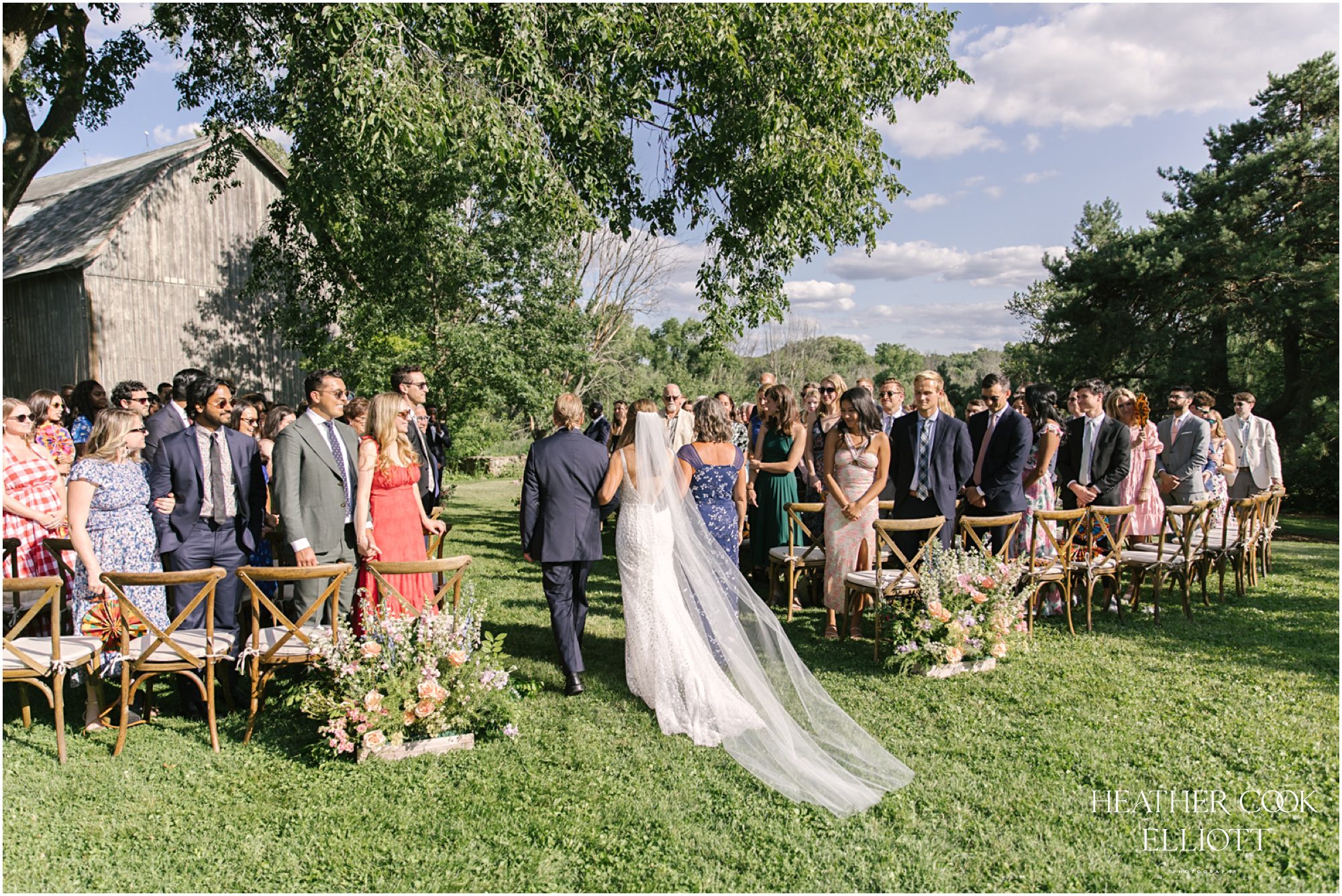 Every wedding is a gift of sorts, for the families involved, for the guests in attendance, perhaps even for a community. But some weddings have a kind of extra special energy that makes the day stand out in a photographer’s memory. Heidi & Paul’s outdoor wedding was such an event, so full of life and love that it numbers among those that we know we will look back on for years as an exquisite example of how to pull off the perfect At Home Wedding. That home is her parents’ farm where the land is full of flowering gardens and watched over by massive, stately trees. The ceremony space was under one of those sentinels and the 1800s barn on the property hosted the dancing. In the time in between an elegant dinner was served family style under a tent and sweet toasts marked the night with laughter, great memories and a few tears, too. Through it all Heidi and Paul clearly savored every second, every details, every hug, every moment that made the day so perfectly theirs.