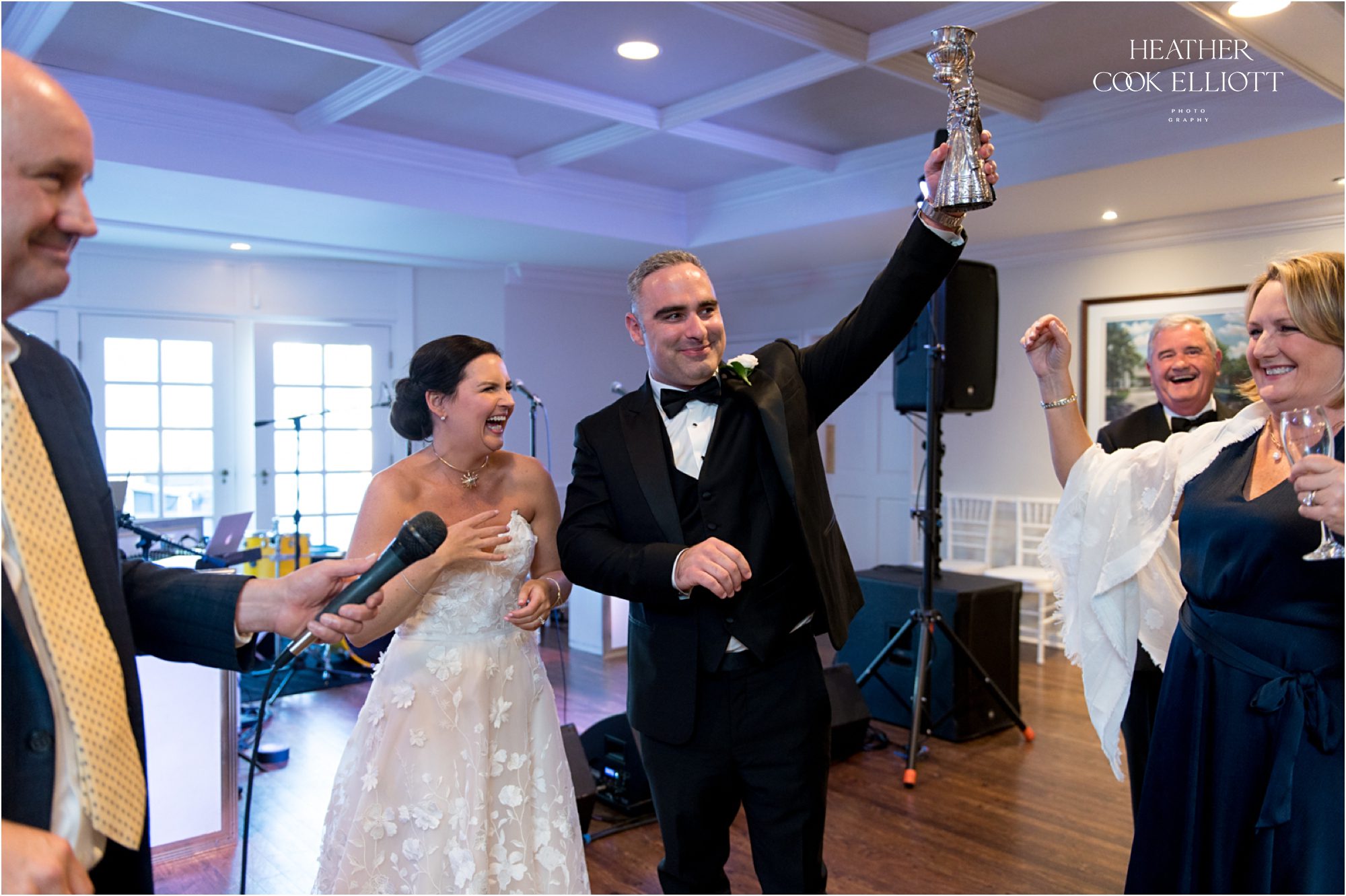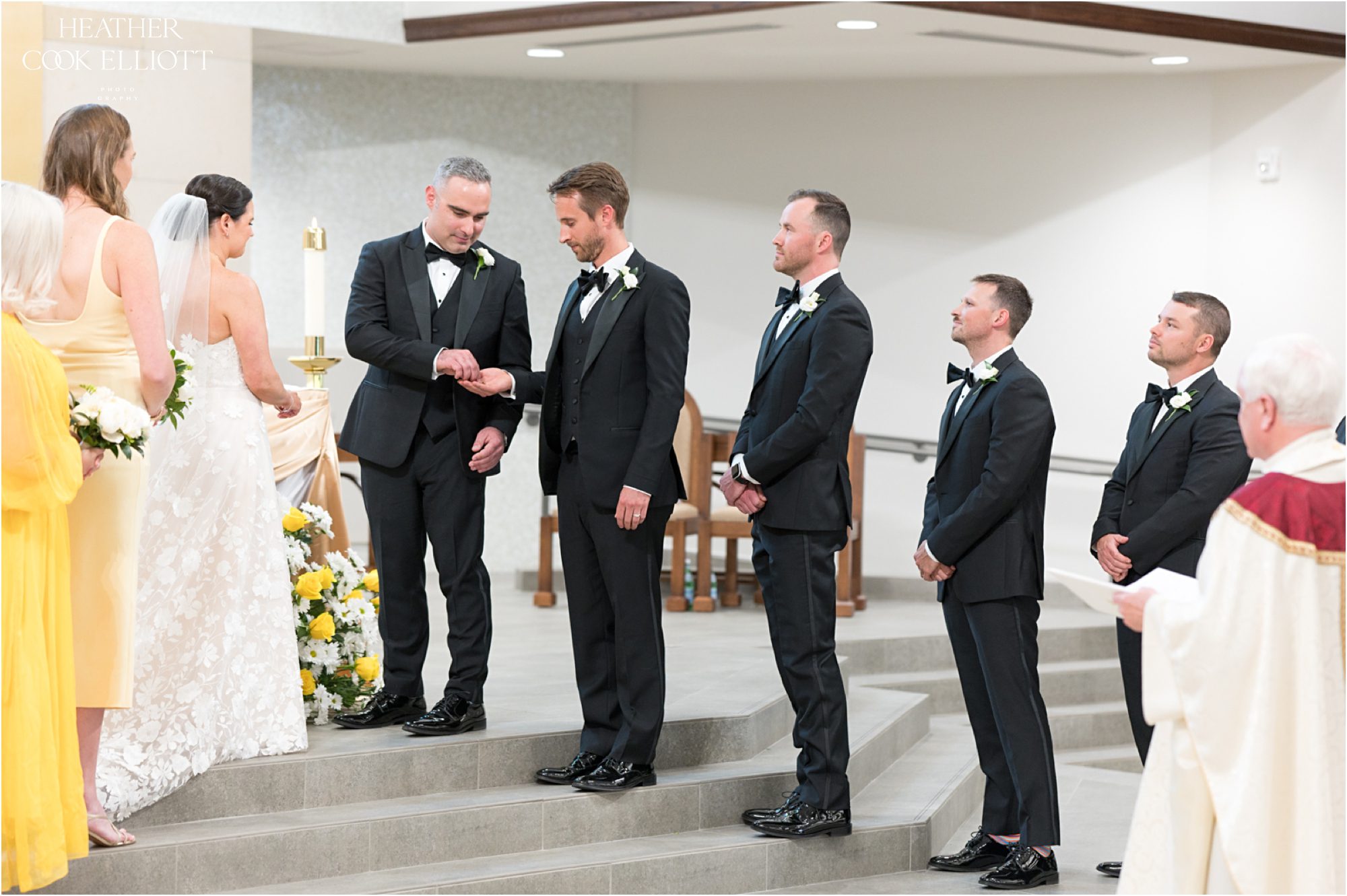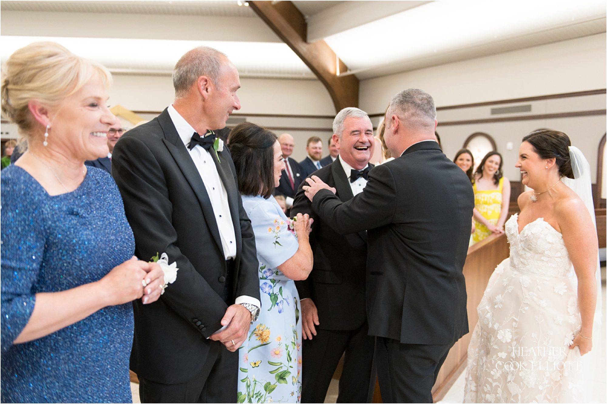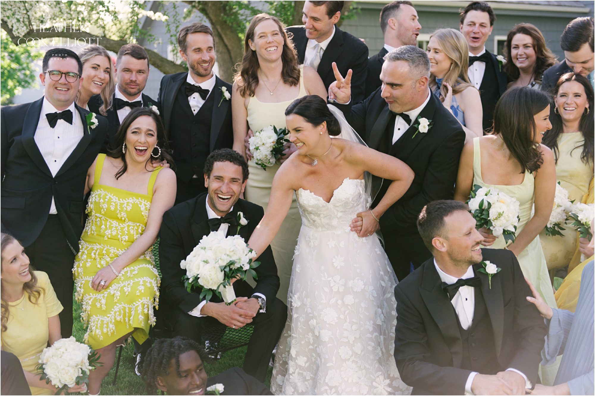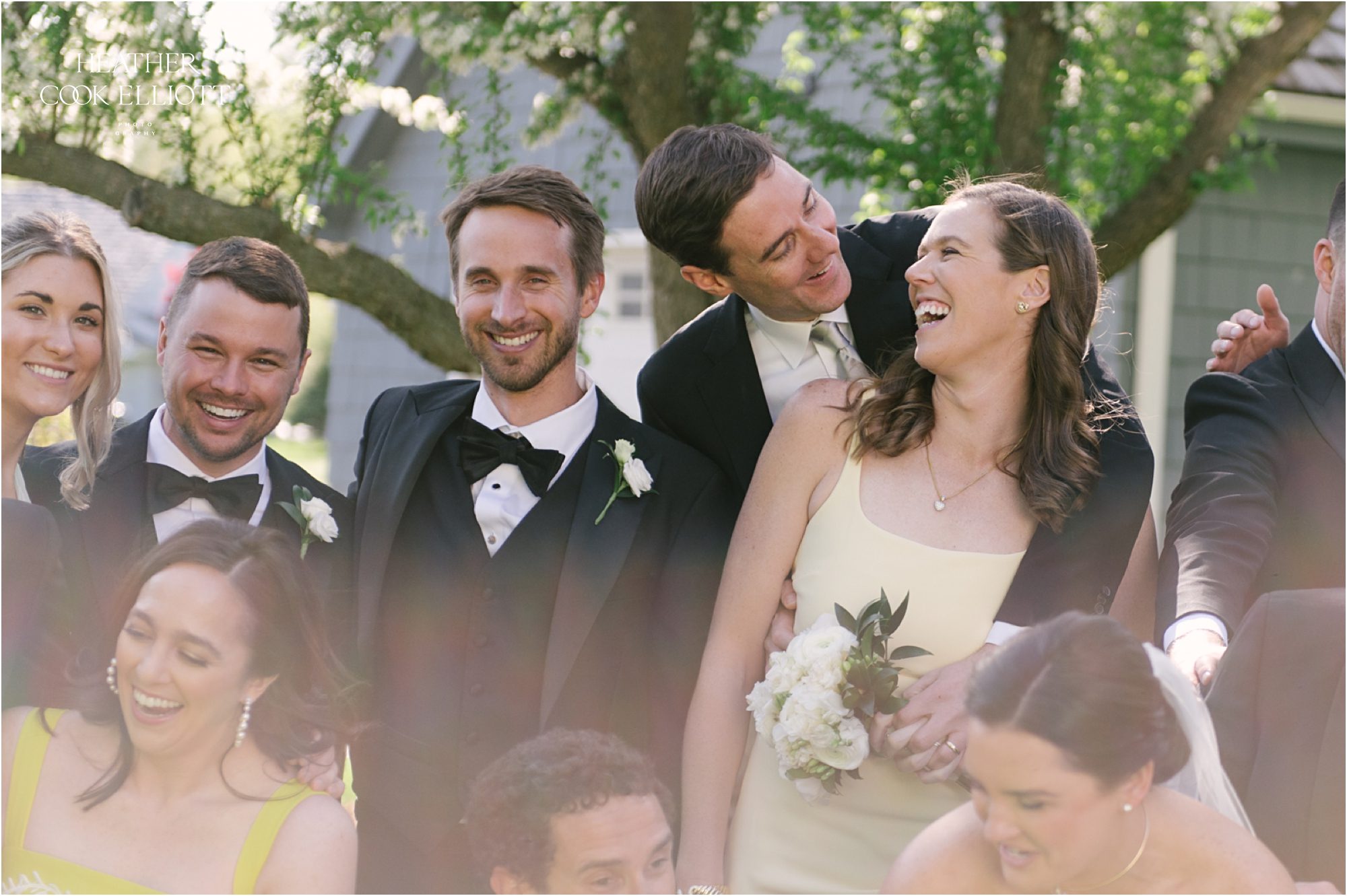 Catherine & Danny spent their wedding day in the best possible way: with family. Catherine started her day at her family home, surrounded by cousins and in laws and photos of family weddings. With her best ladies dressed in the perfect May color – yellow – she met Danny for the first time that day at the end of the aisle. His normal joking, laughing self was stilled, centered & utterly captured by her presence and together they tied their lives together in a sweet, personalized ceremony. And from there it was all about big smiles, big family and big fun. They hosted a colorful Town Club reception where her parents offered a toast and they joined in a family tradition of drinking from the family cup, an Irish token brought back by her grandparents. With live music and high energy dancing they kicked off an evening to remember with all their best people. Cheers to Catherine & Danny!