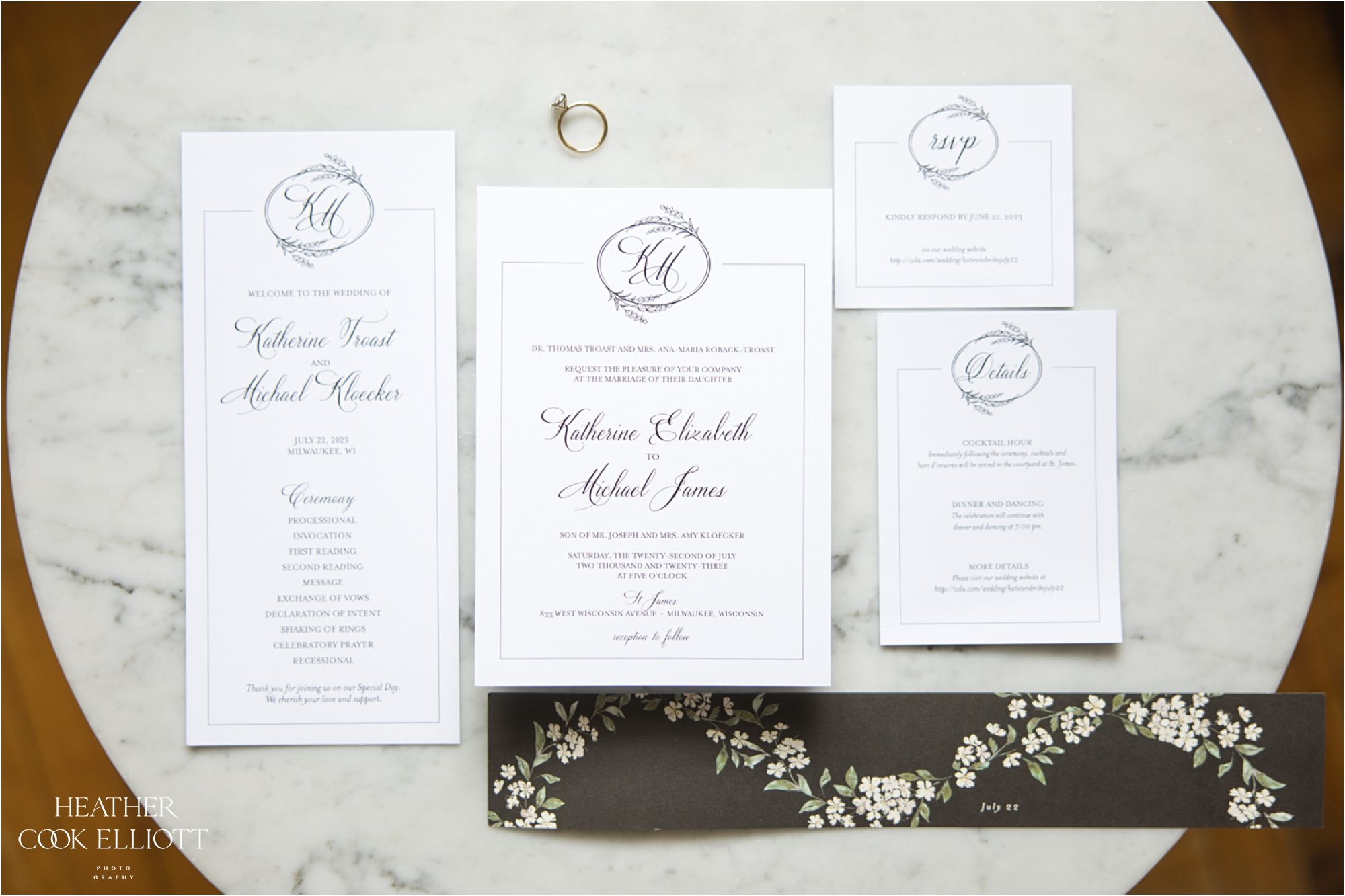Katie & Mike are quiet types, or at the very least they are not the-center-of-attention kind of people. But in their quiet, thoughtful way these two sure know how to plan a party. Katie’s beaded dress and Mike’s dapper tuxedo set the tone for an elegant wedding that felt classic and elevated but never stuffy. The St James 1868 was the perfect venue for them to host their friends & family in an intimate setting that was both traditional and totally modern. Their bridal party was made of friends and family, too, and they took the time to enjoy those wonderful humans all weekend. They especially valued their wedding party on the wedding day as Mike’s brother’s absence was keen, but his eternal presence and never ending love nearly palpable. They kept the day’s activities to a small footprint, getting ready close to the venue and and only venturing as far as the 1800’s era library across the street, but with a world class air show going on above who needs to travel far? So grab a glass of bubbly and get ready to drink in some sweet love. Cheers to Katie & Mike!