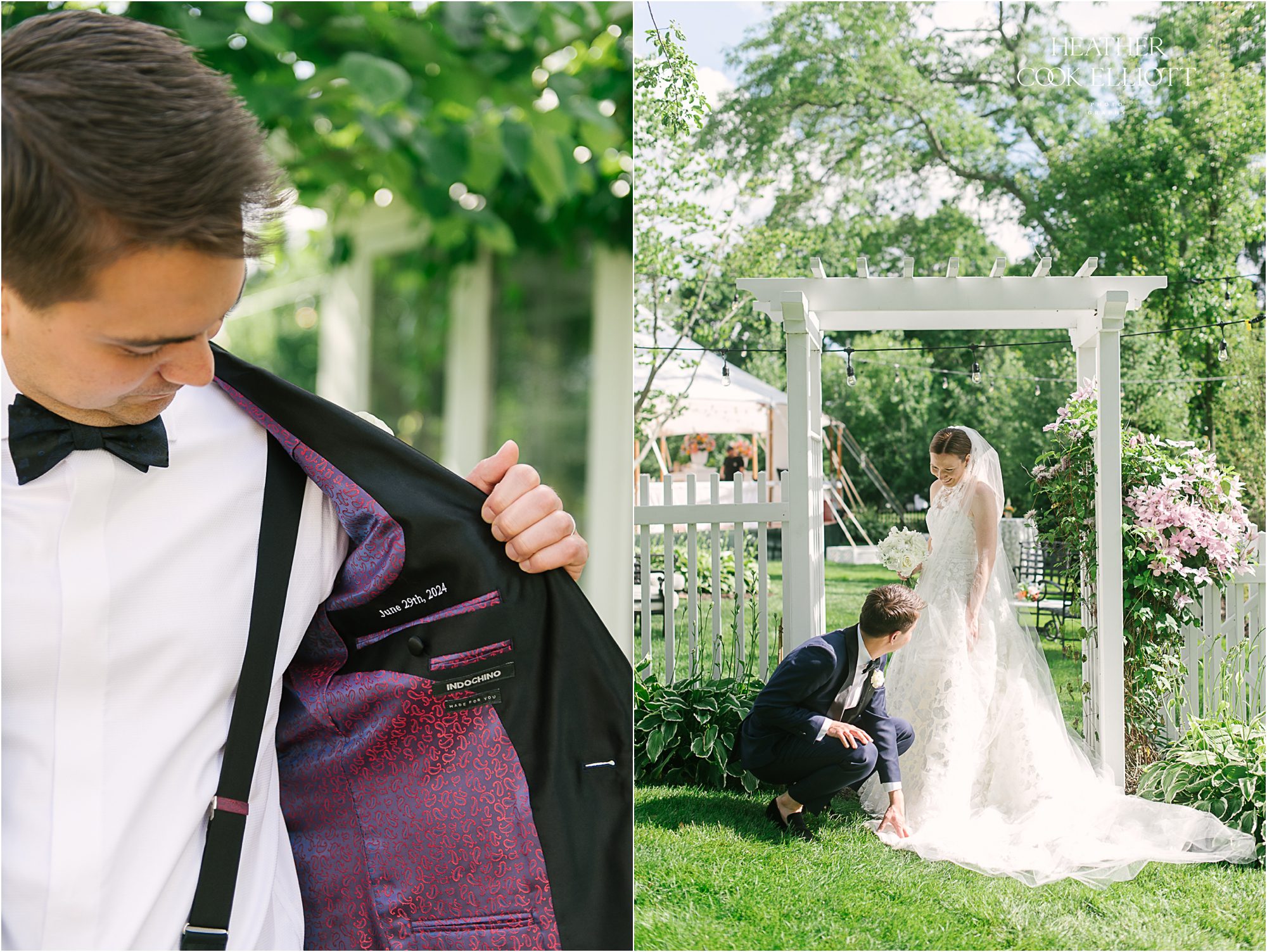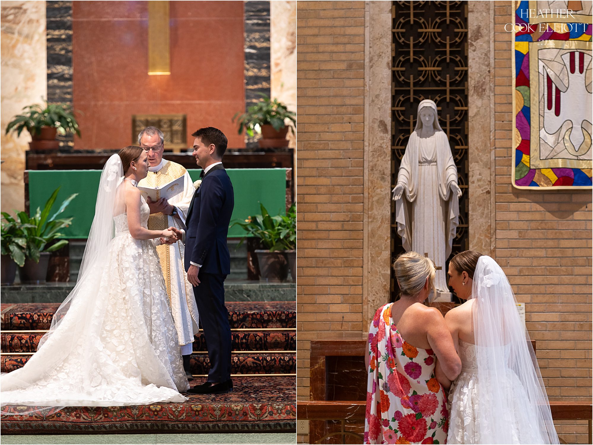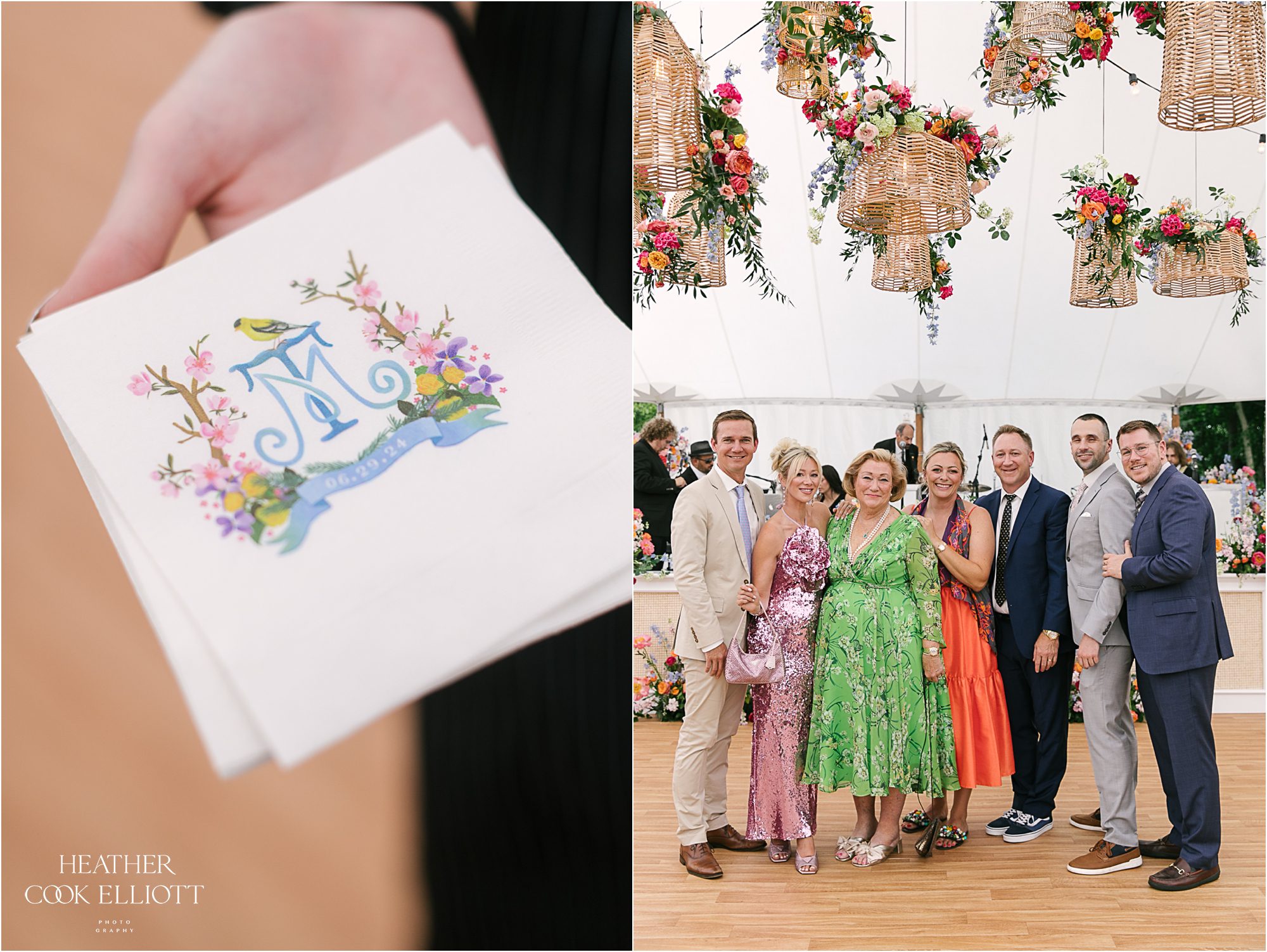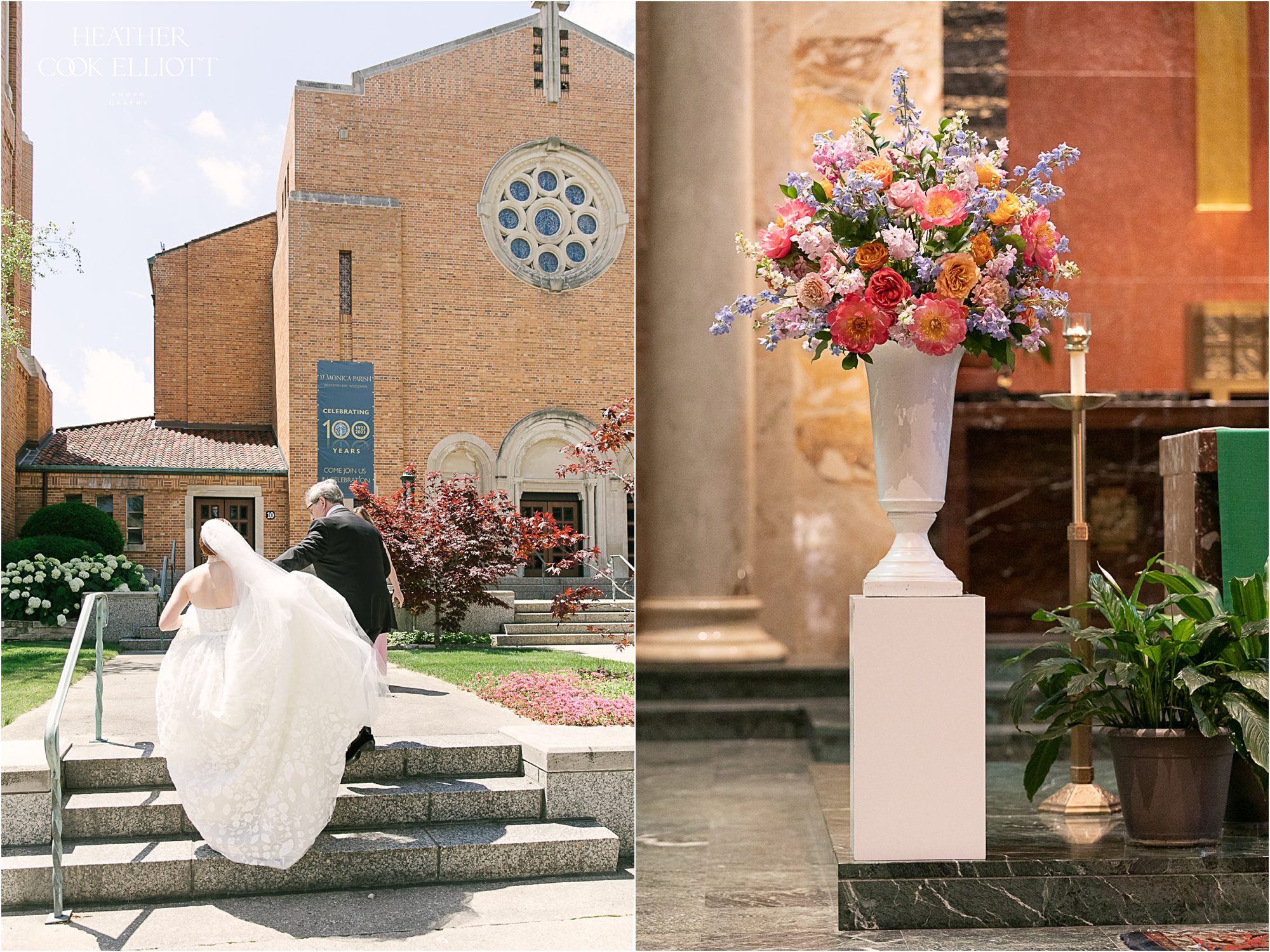 Molly & Taiga met in Seattle but they celebrated their gorgeous and oh-so-colorful-summer wedding at Molly’s family home in Wisconsin. But before they danced the night away under a sail cloth tent and toasted their love with family & friends they said I Do at Saint Monica’s, completing their modern, joyful day with a sweet dose of tradition. Molly’s mom had tied a rosary in a tree to keep the rain away and her plan must have worked because it was warm, blue sky day and a perfect Wisco evening for all of the local family and friends, plus the many guests from out of state. We loved the heavy rotation of floral motifs (even on Molly’s dress) and the use of so many different florals, fun patterns and textures (hello rattan!) to create a a truly romantic and lovely space to celebrate these two and the life they are starting together. So cheers to the return of color to weddings and most importantly, cheers to Molly & Taiga!