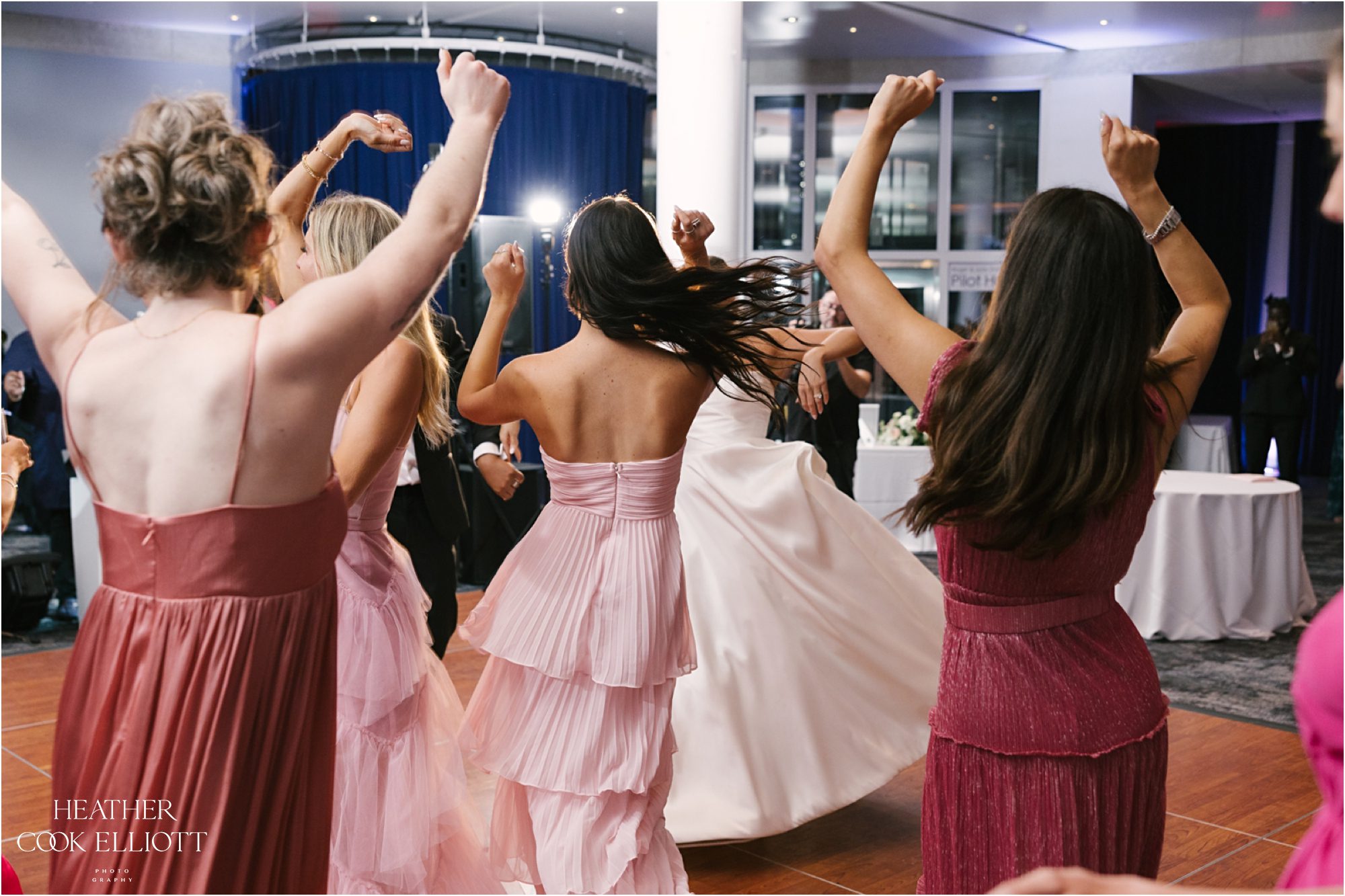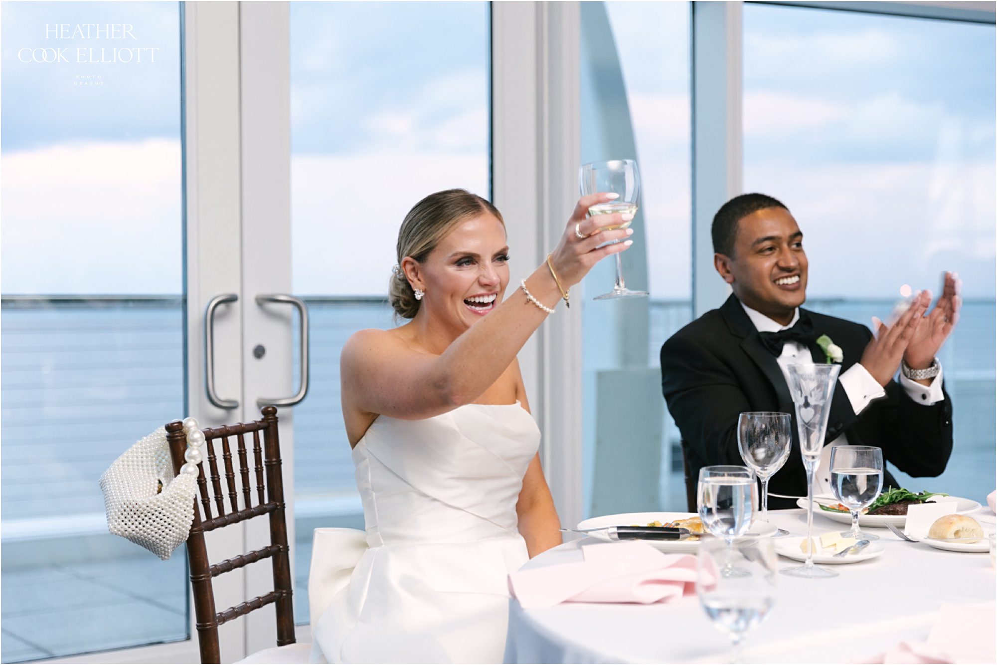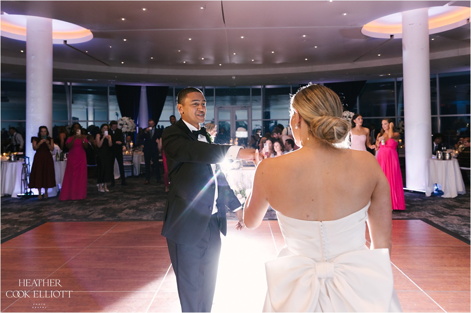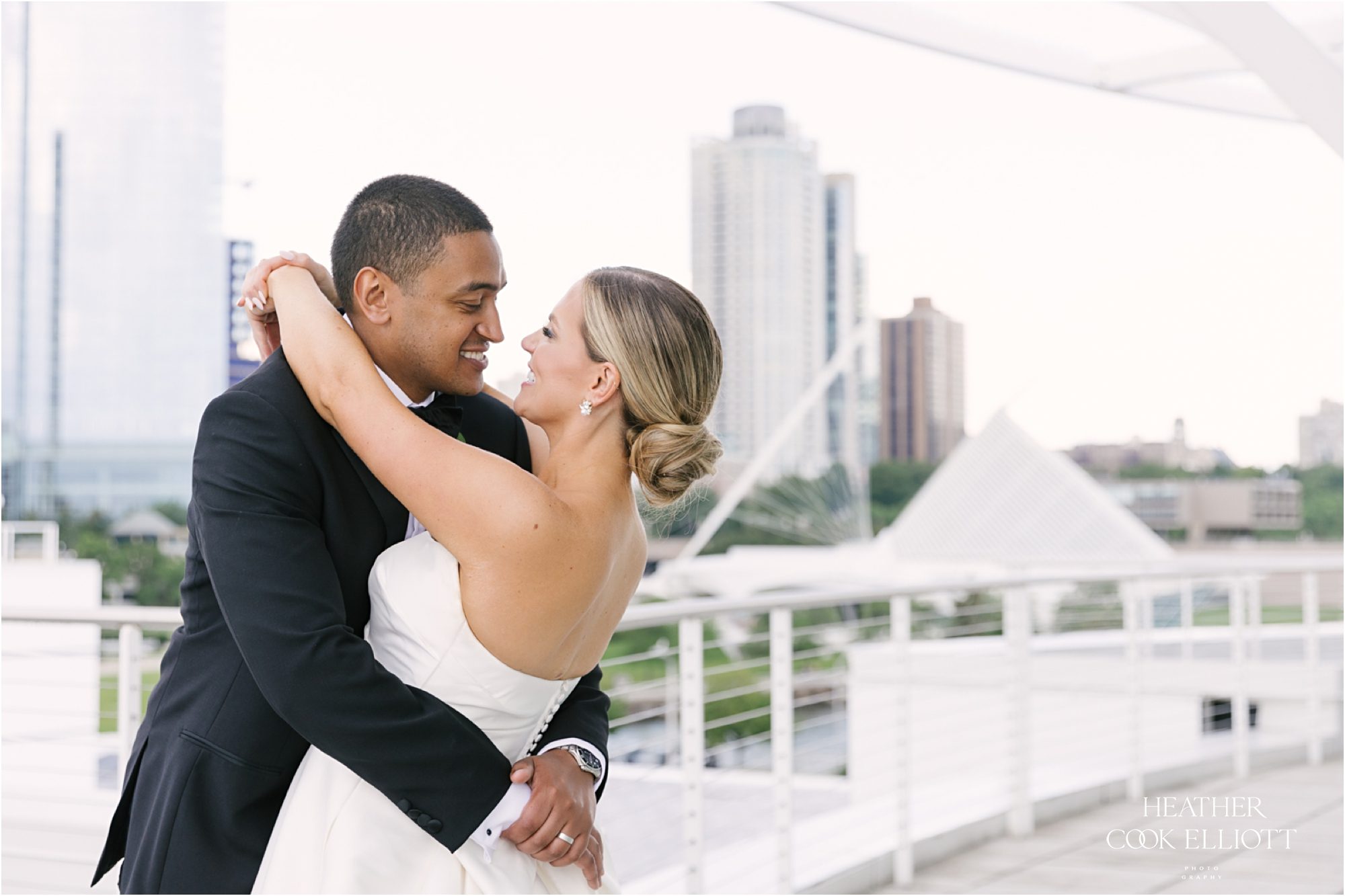 Katie & Maz celebrated their wedding in grand lakeside style in Milwaukee on a day that featured a little rain, but just enough to make the sky bluer, the lake sparklier, and their sunset even sweeter. They said I Do at Katie’s home parish and celebrated their commitment at Discovery World where every view includes water. We loved Katie’s bold choice to invite her bridesmaids to pick a pink dress and go for it and even more we loved how that variability was paired with Maz’s guys in classic tuxedos. From the romantic flowers to the vintage cake topper, Katie & Maz chose to make their day a perfect example of how elegance never goes out of style. This wedding pairs well with champagne and live music, with laughter and good times so get ready to smile and scroll with purpose; this one will warm your heart.