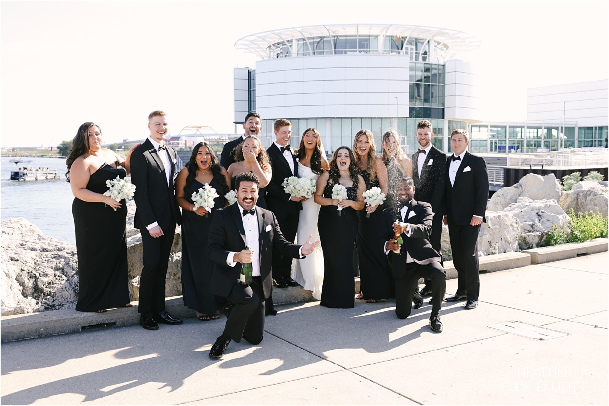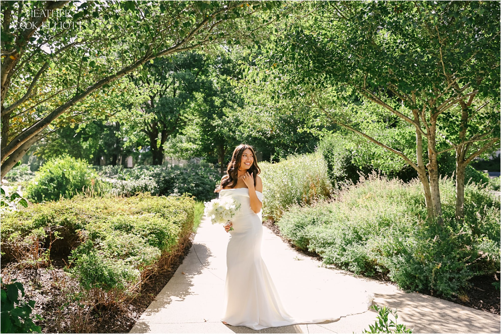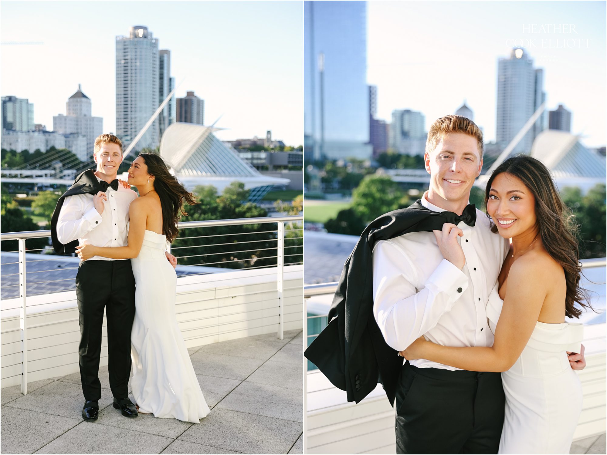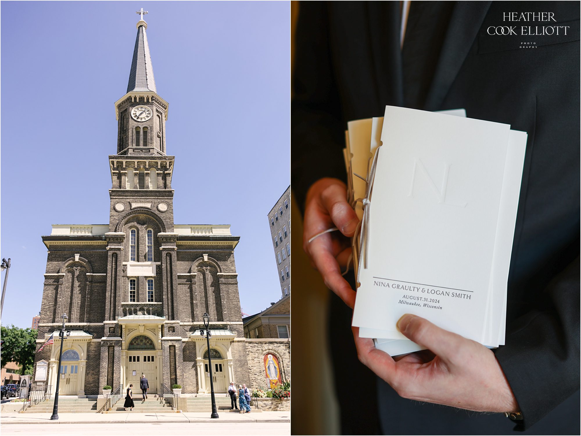 Nina & Logan’s wedding day was like a breath of fresh air. It was equal parts modern and traditional and we adored all of their stylish details + the spaces and places where they chose to spend their wedding day. But more than any of that we loved witnessing and photographing the thoughtful ways they moved through their day. Nina dressed with her beloved mom by her side – and spent extra attention enjoying the details of her incredible Philippino wedding veil. They met for the first time that day at the end of the aisle at Old St Mary’s, the oldest Catholic church in Milwaukee. The east side and lakefront played host to the rest of their wedding and it was a glorious blue sky day perfect for exchanging private vows AND for popping bottles. So grab your own glass of bubbly and get ready to breath deeply; love is in the air.