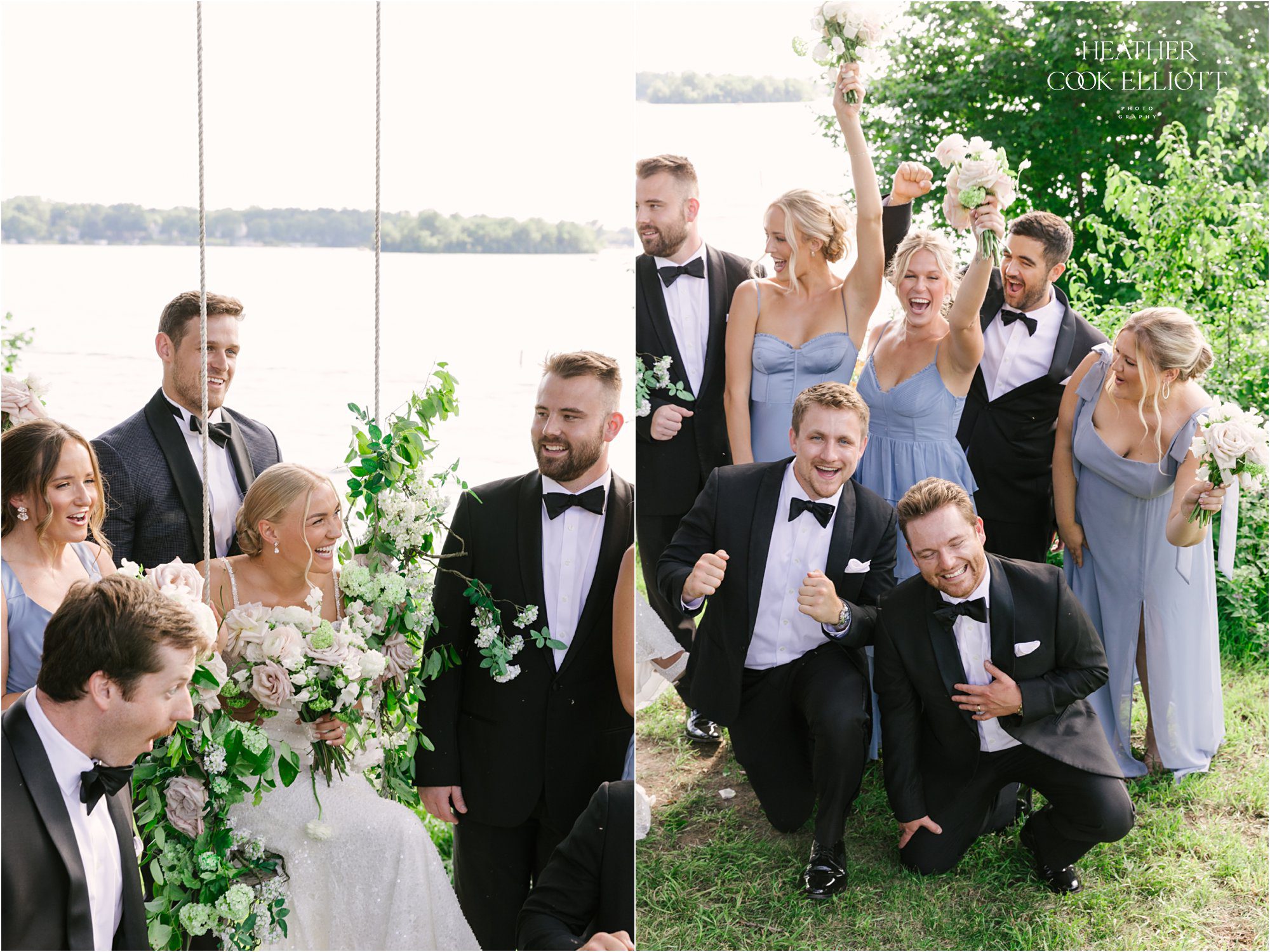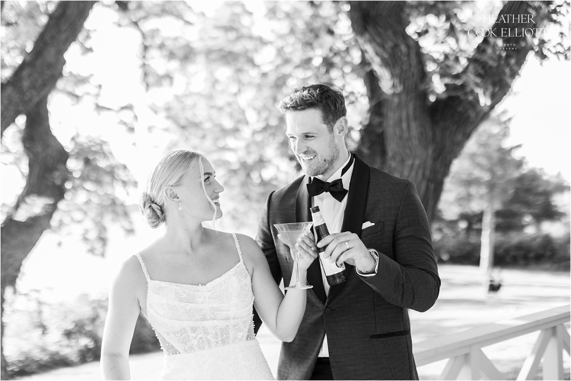 What’s better than spending a summer day at the lake? I submit the following: surrounding yourself with your favorite people in the world, marrying the love of your life AND spending a perfect summer day at a lake. Add in craft cocktails, beautiful flowers, a stone chapel, heartfelt toasts and a gorgeous sunset and I think I have cracked the code for not only wedding day perfection but any day, elite level awesomeness. Or rather, Claire & Joe have cracked the code because all I have written simply describes their St John’s Northwestern Chapel & The Commodore wedding day in late June. It was a great day for everyone involved as these two have loved each other for a long time. They found each other as teens and have already built a sweet life together, but even so, the emotions were high and all of their joyful parents were so very happy to see their children officially say *I DO* . We join their friends and family in wishing them all that is good in life because we know that these two said yes to the right person at the right time in the right place for all the right reasons.
