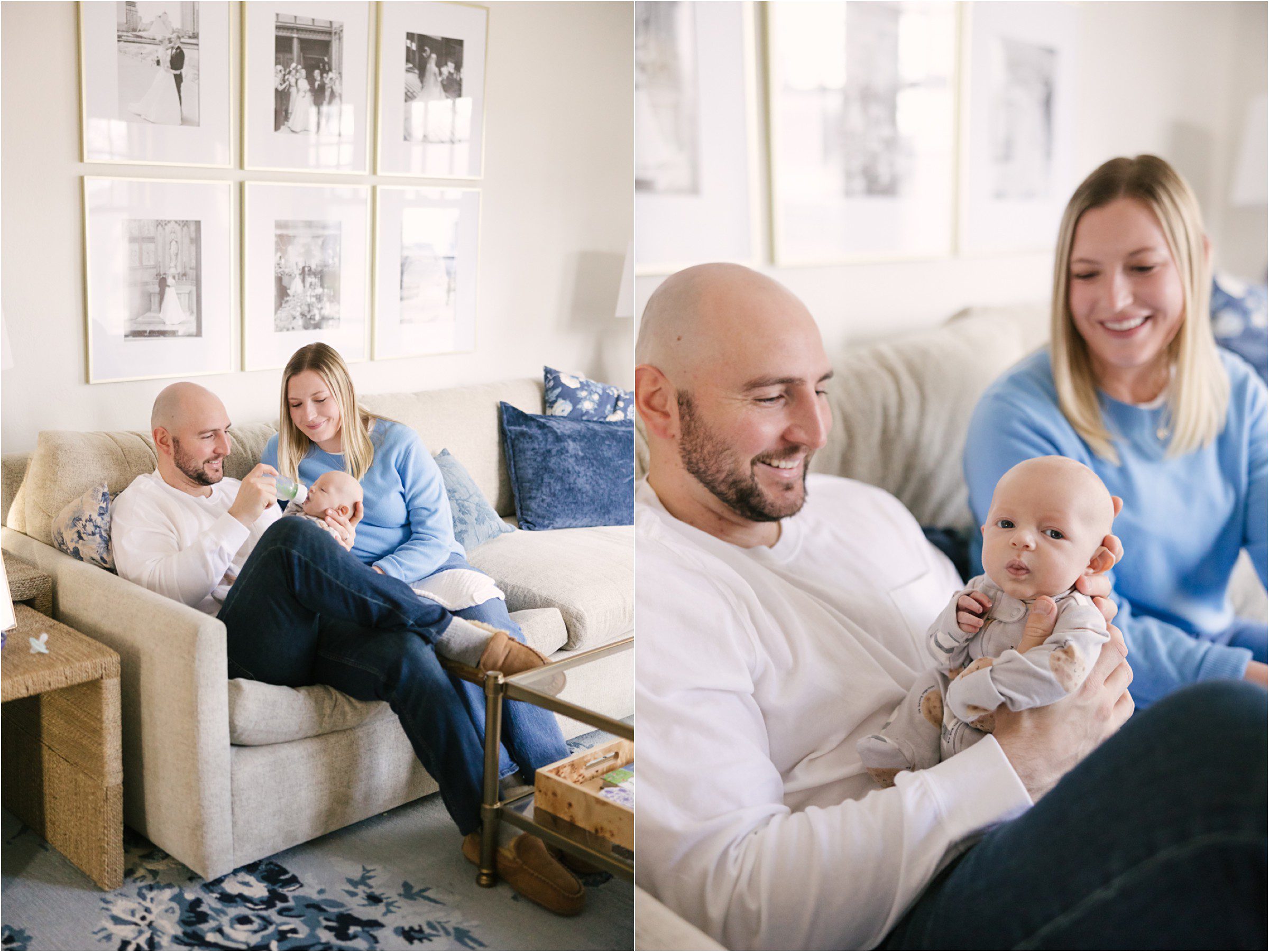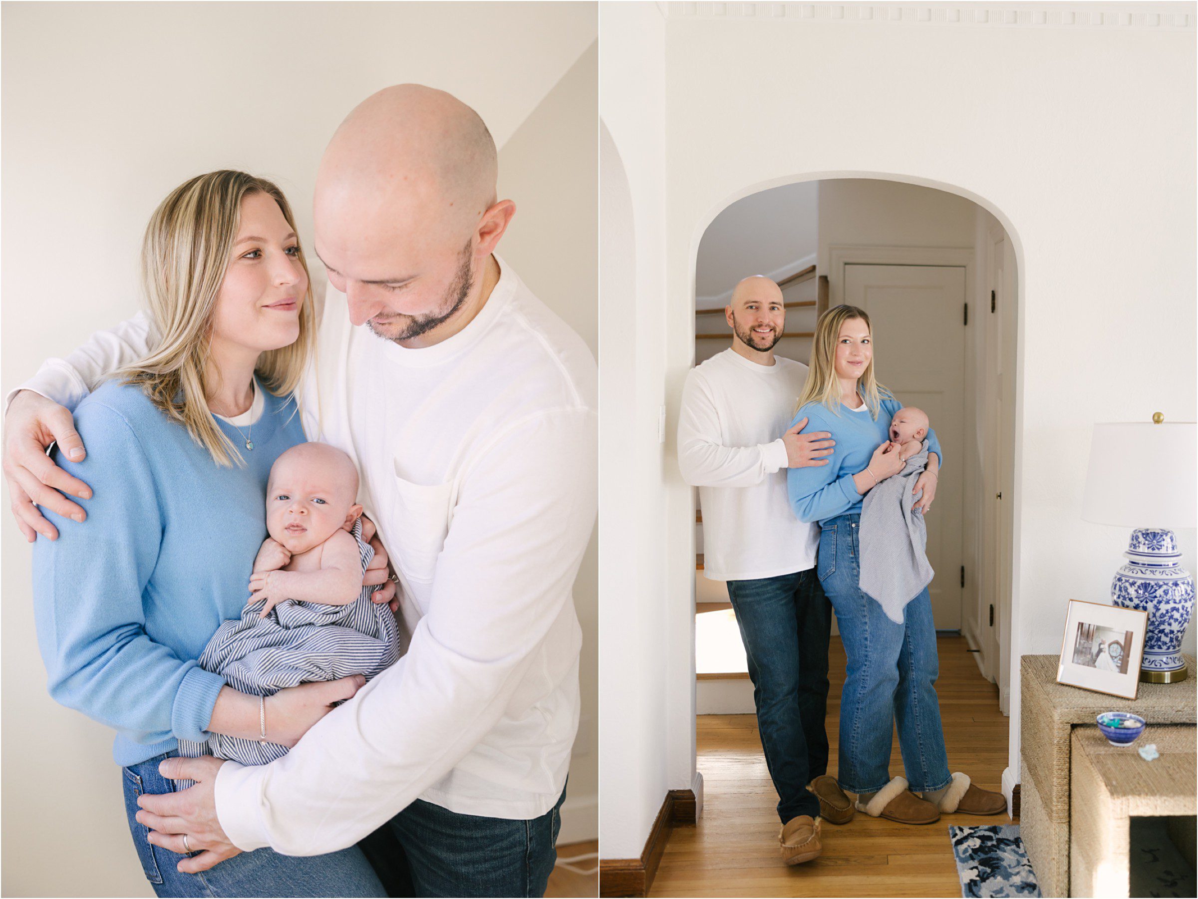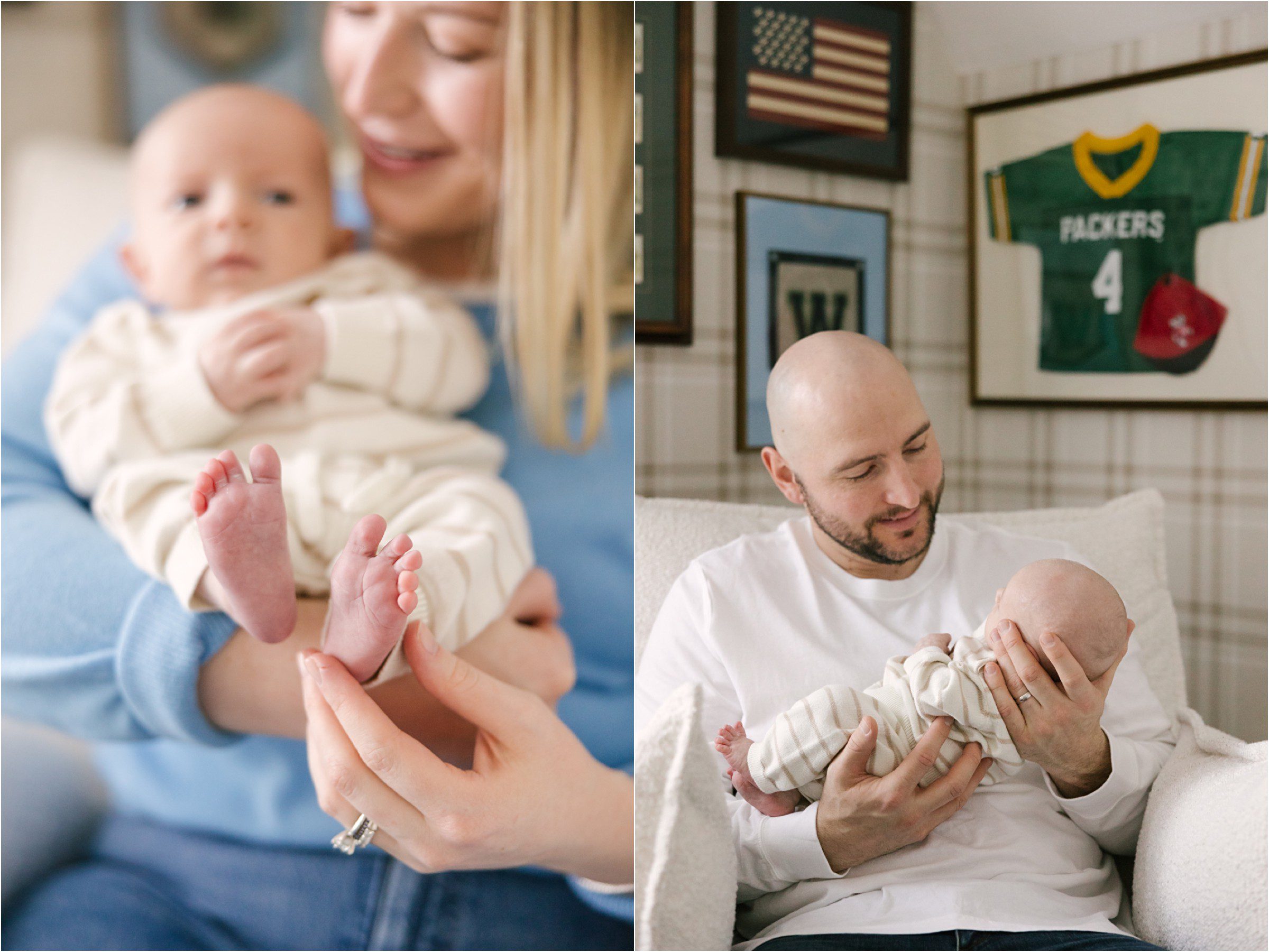 Sweet William is the newborn son of Lindsay and Jack, a wonderful couple we had the pleasure of meeting way back when they were just engaged. We captured their engagement session and then their gorgeous wedding day at Milwaukee’s Lakefront. And what a treat (and an honor) it is to come into their home at this tender time to capture some of their first days as parents. William was born a little earlier than expected but he’s perfectly healthy and adorably cuddly, almost always happy to just be close to mom & dad. On this winter morning we moved from room to room of his beautiful, light-filled home settling him into small naps and cute outfits, happy to just enjoy a quite morning at home. I’m posting this on the literal coldest day of my life (-28 windchill out there) so for me this post is a warm tonic for my heart, reminding me that in life the best days are often the slowest and there’s nothing like a warm hug to say life is beautiful.
