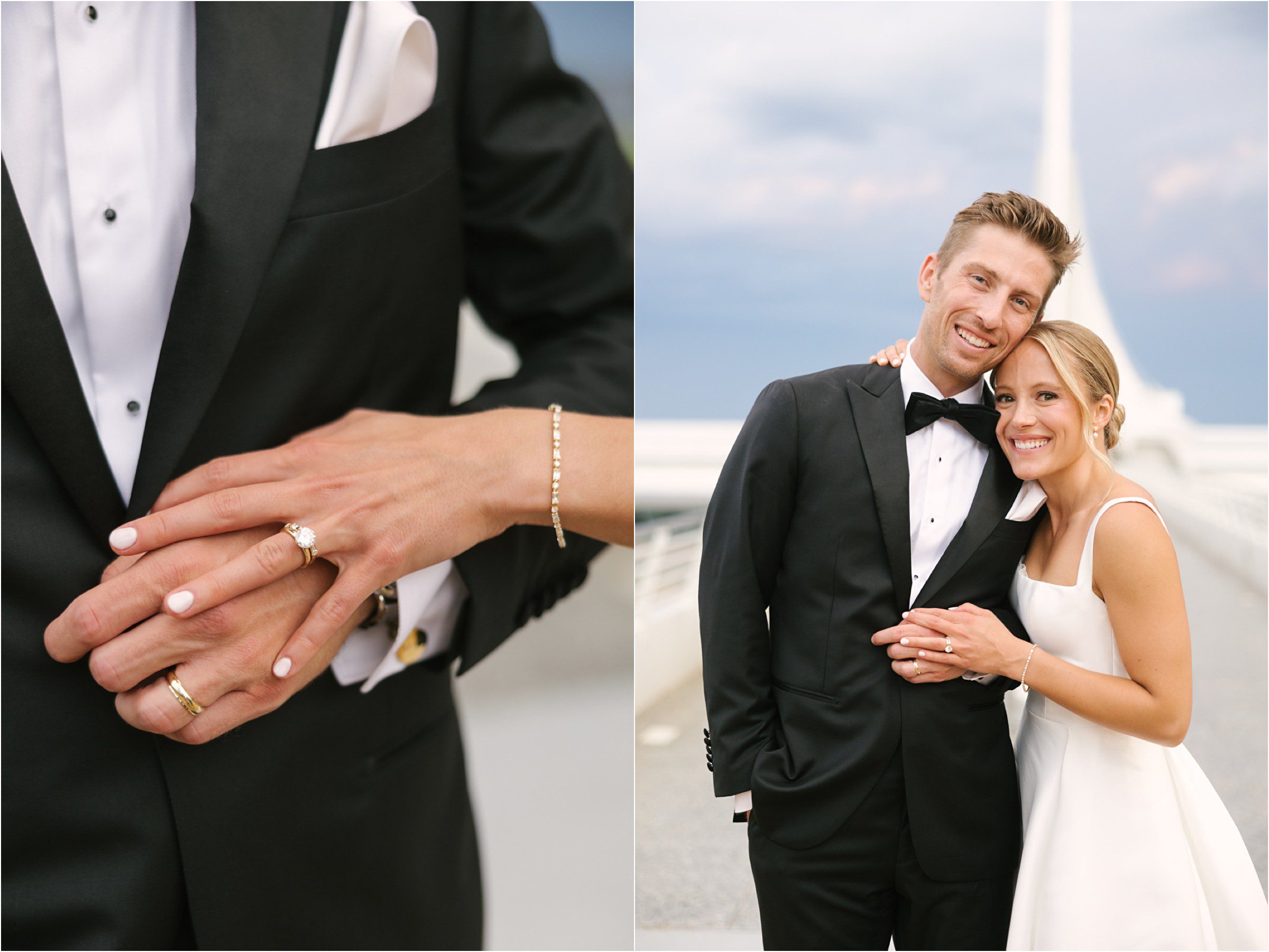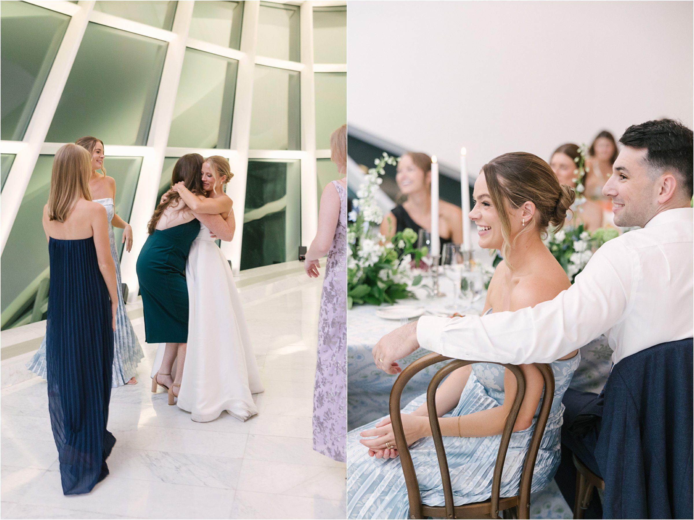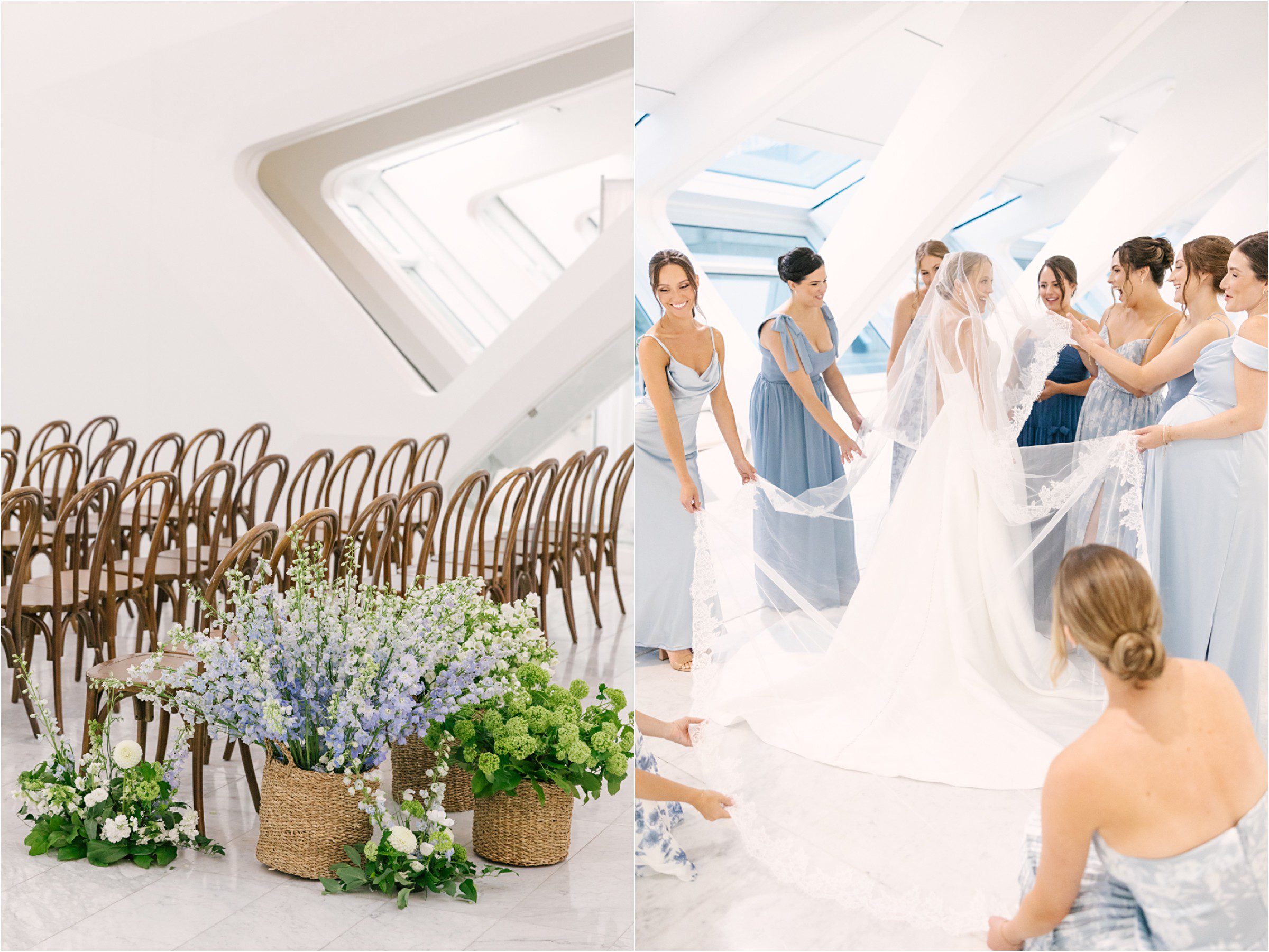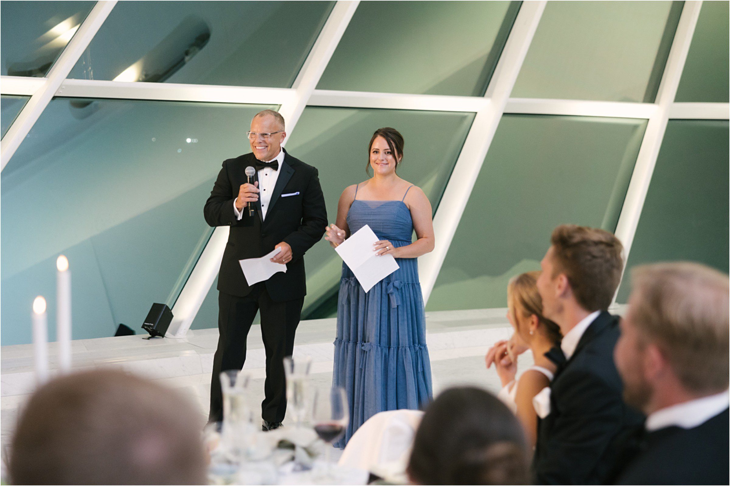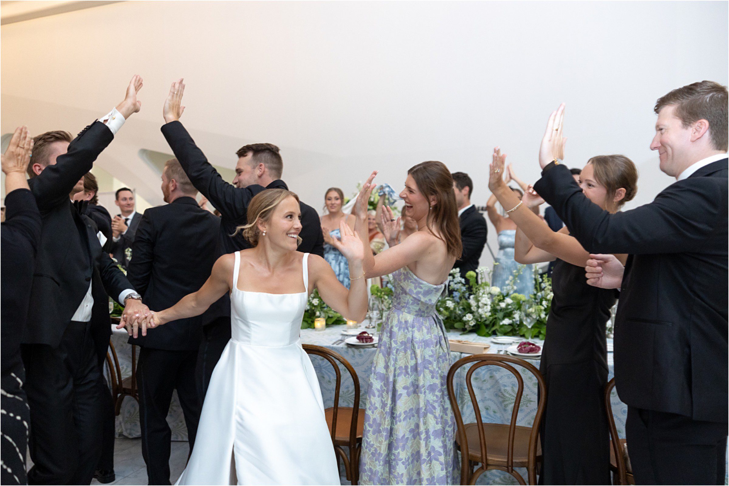 Brooke & Matt are joy incarnate. Their friends adore them, their parents practically beam when looking at them, and the two of them are hearts-on-the-sleeve-dance-like-no-one-is-watching kind of people. And man oh man, a wedding day filled with that kind of delight and love is exactly what a photographer needs to fill the proverbial tank and stay grounded in the moment on a wedding day. Theirs was an uncharacteristically stormy summer day but we made the most of our dry minutes and they got to see one another for the first time on the roof of Hotel Metro and take in Lake Michigan views with their wedding party. Even when the sun declined to shine outside they brought the summer air in with them via a design by Jane Kelly Floral that managed to make The Milwaukee Art Museum even more gorgeous. You’ll have to forgive how many detail shots there are in this post, but seriously, every delicious bluebell, sneak peek of Brooke’s sky high heels, and focus on the texture and pattern of the day just breathes life into my soul so let’s go with it. In the end our collective reward is one of the most beautiful stormy sunset sessions we’ve ever photographed and the happiest dancing grandpa you ever did see.