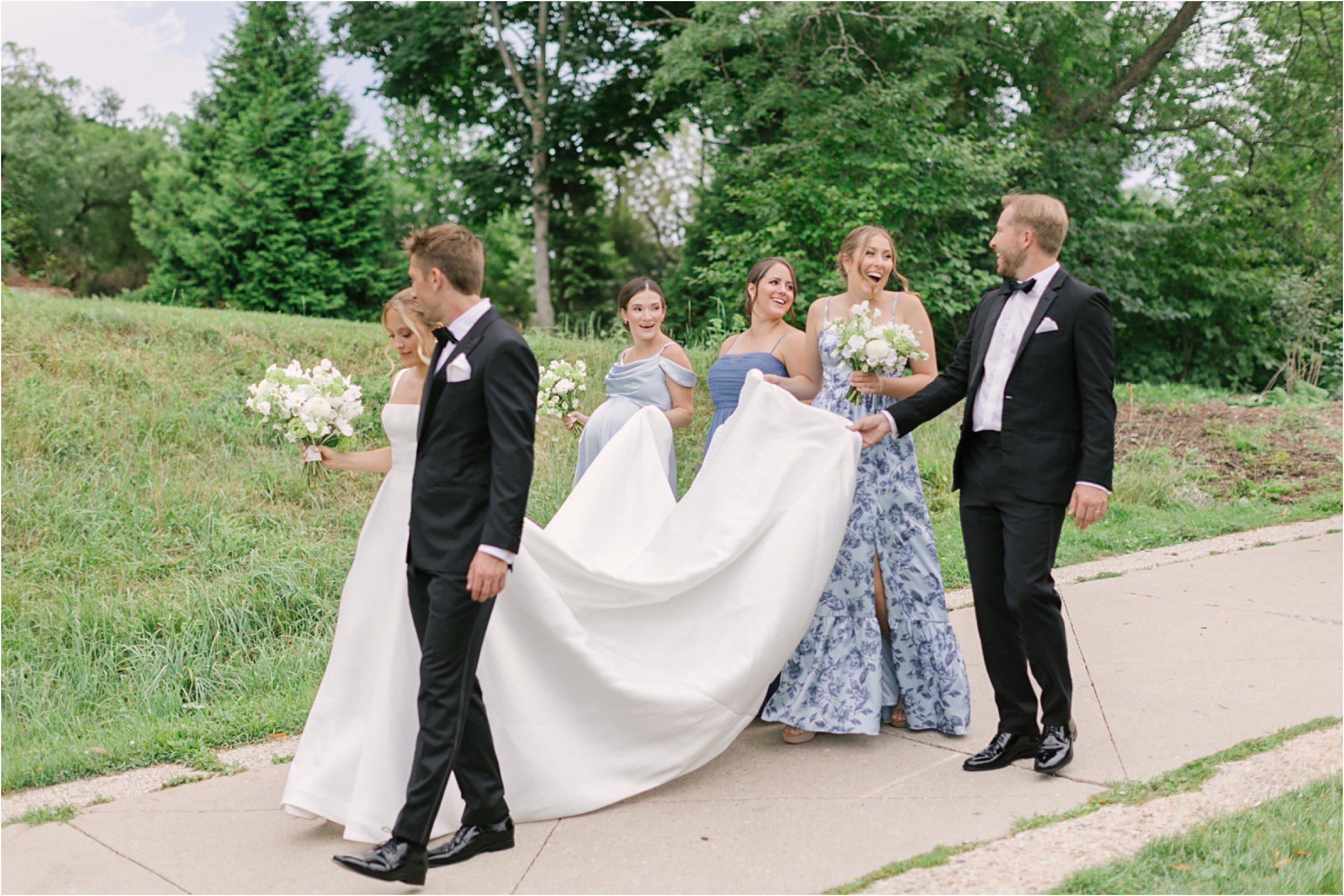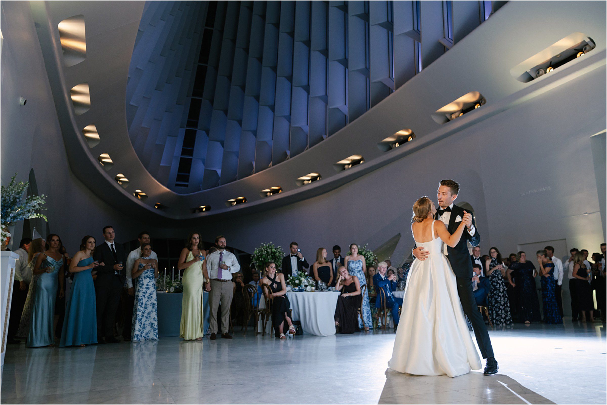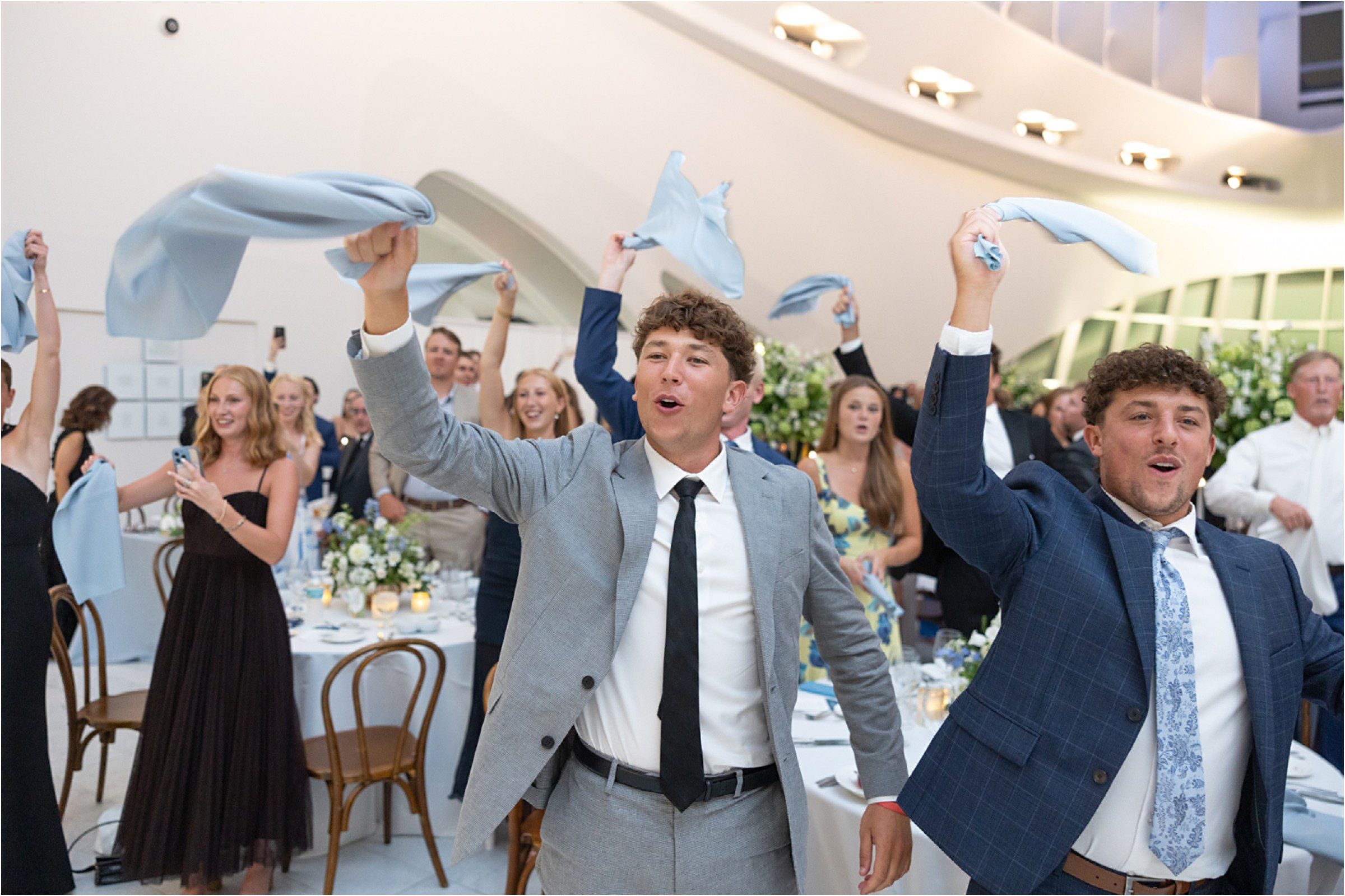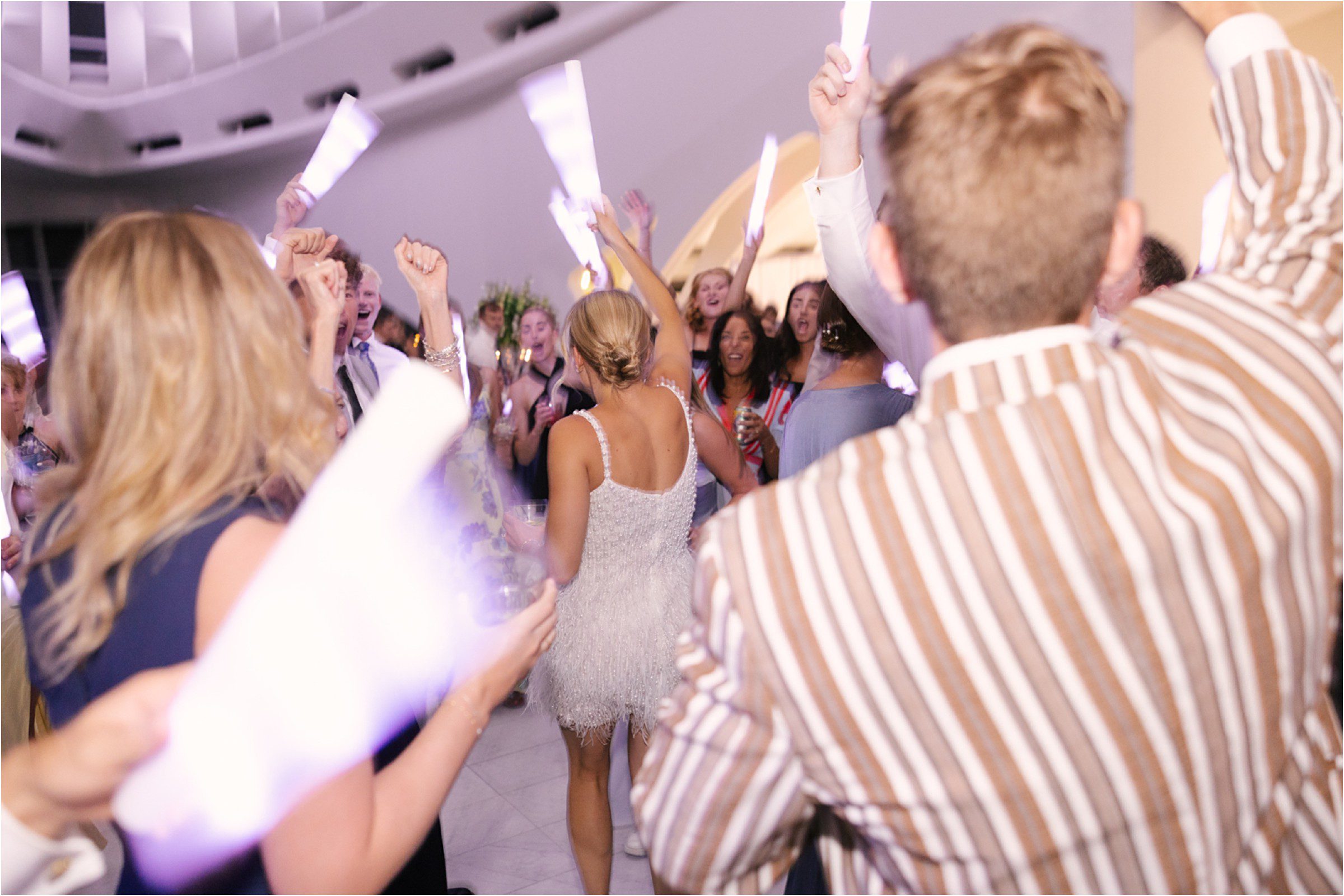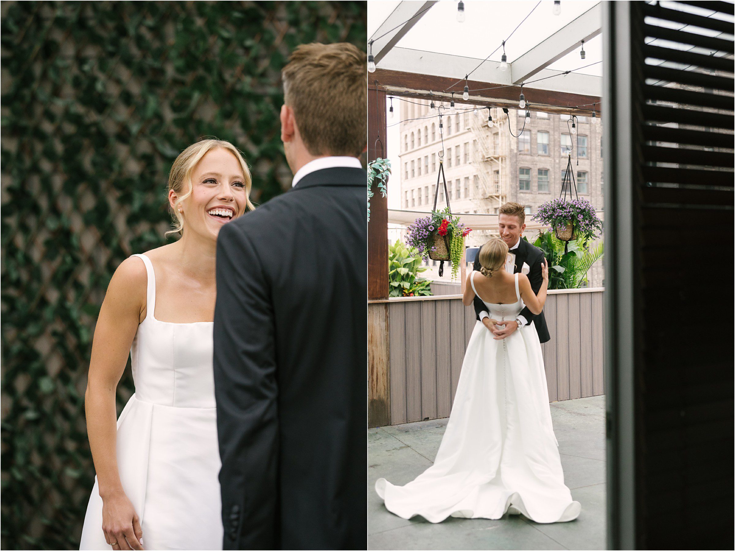 Brooke & Matt are joy incarnate. Their friends adore them, their parents practically beam when looking at them, and the two of them are hearts-on-the-sleeve-dance-like-no-one-is-watching kind of people. And man oh man, a wedding day filled with that kind of delight and love is exactly what a photographer needs to fill the proverbial tank and stay grounded in the moment on a wedding day. Theirs was an uncharacteristically stormy summer day but we made the most of our dry minutes and they got to see one another for the first time on the roof of Hotel Metro and take in Lake Michigan views with their wedding party. Even when the sun declined to shine outside they brought the summer air in with them via a design by Jane Kelly Floral that managed to make The Milwaukee Art Museum even more gorgeous. You’ll have to forgive how many detail shots there are in this post, but seriously, every delicious bluebell, sneak peek of Brooke’s sky high heels, and focus on the texture and pattern of the day just breathes life into my soul so let’s go with it. In the end our collective reward is one of the most beautiful stormy sunset sessions we’ve ever photographed and the happiest dancing grandpa you ever did see.