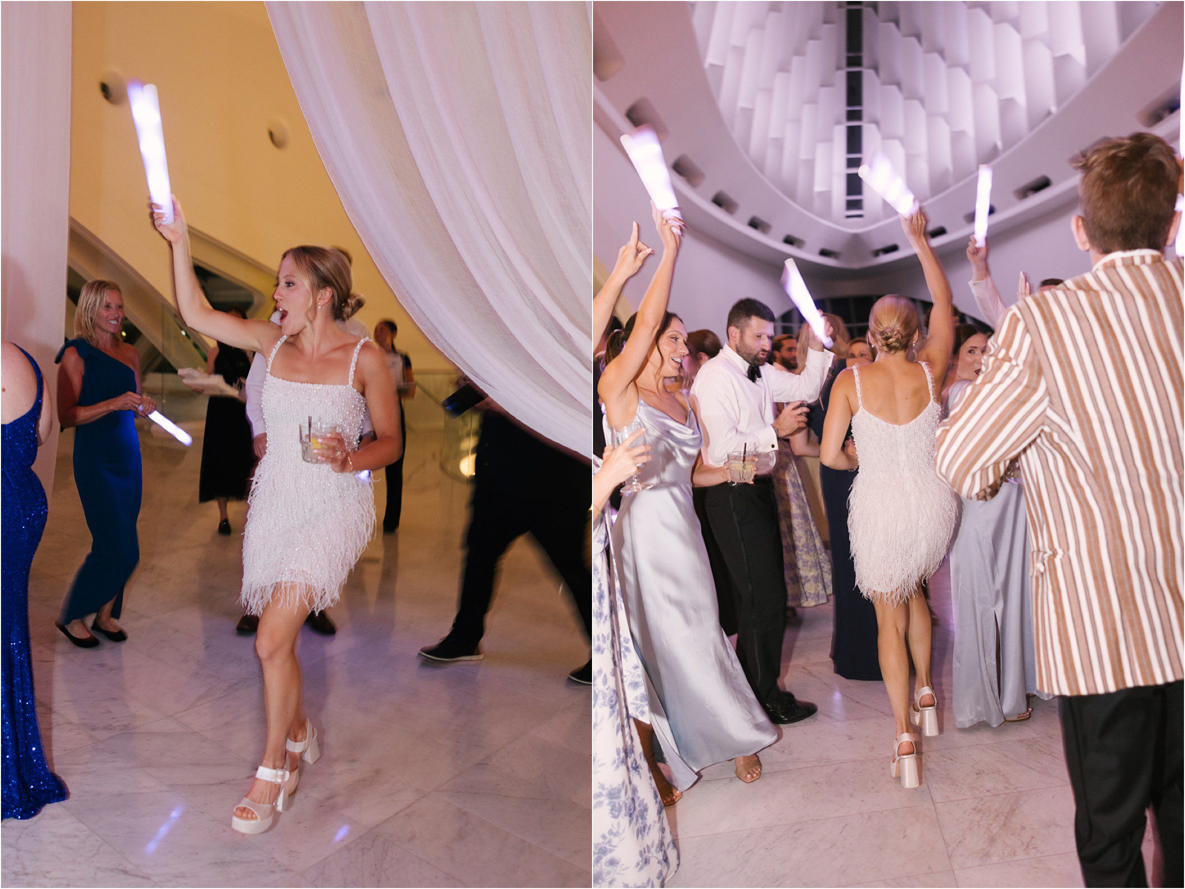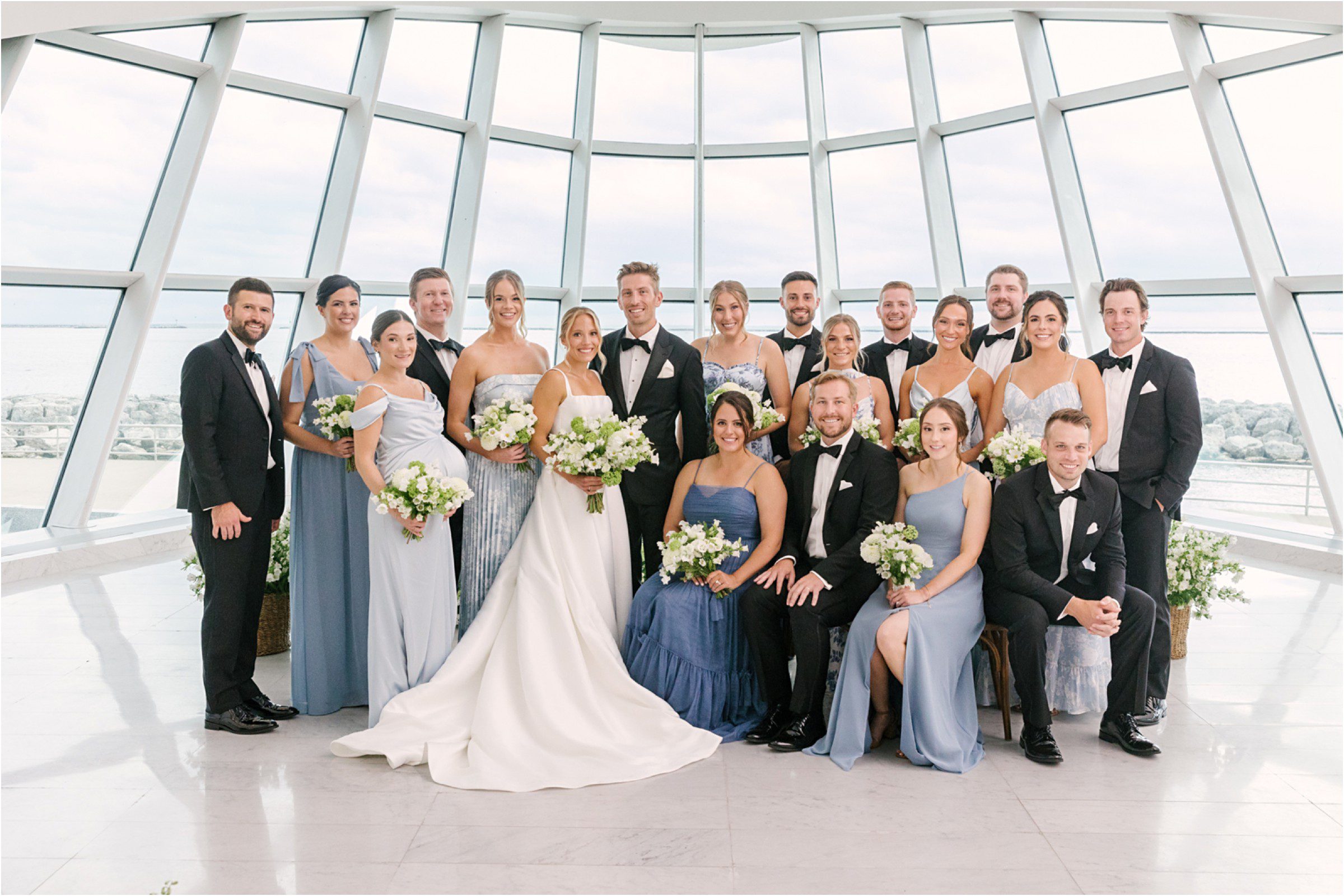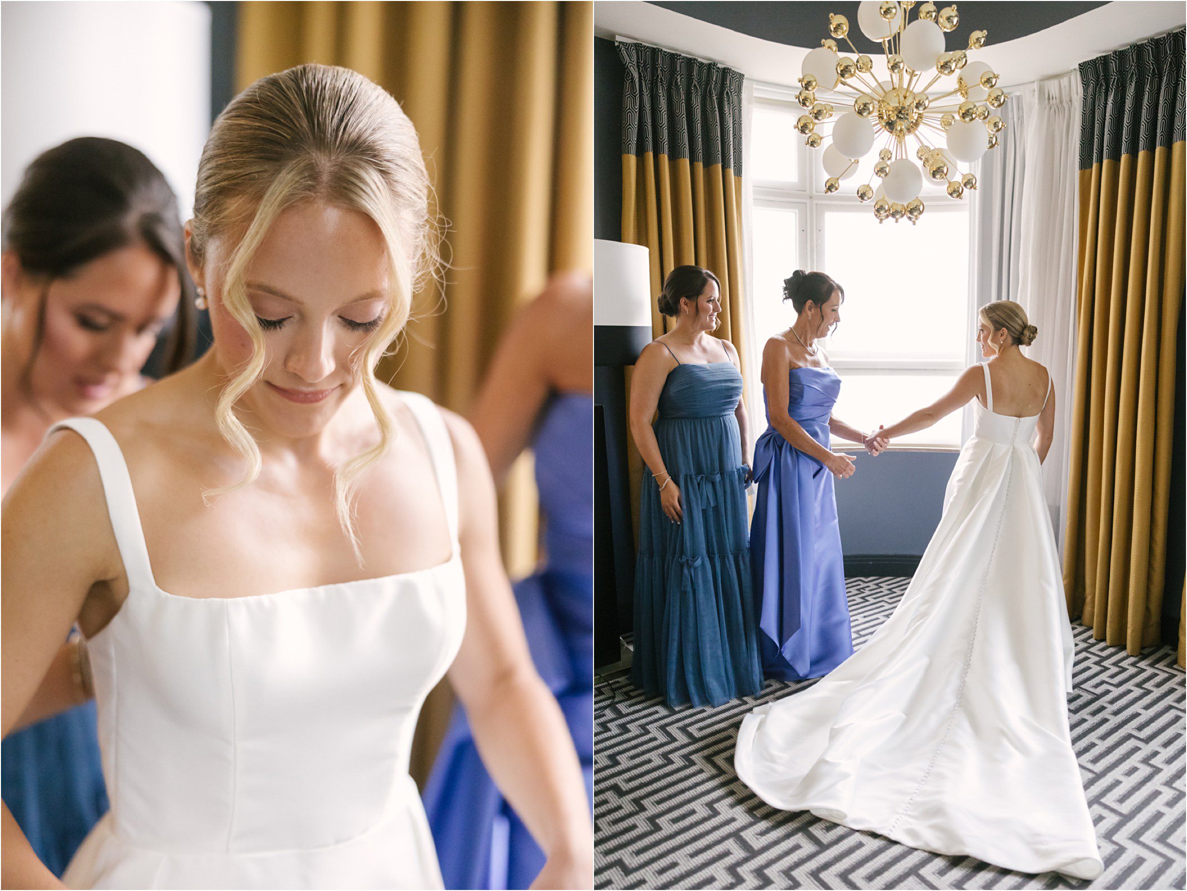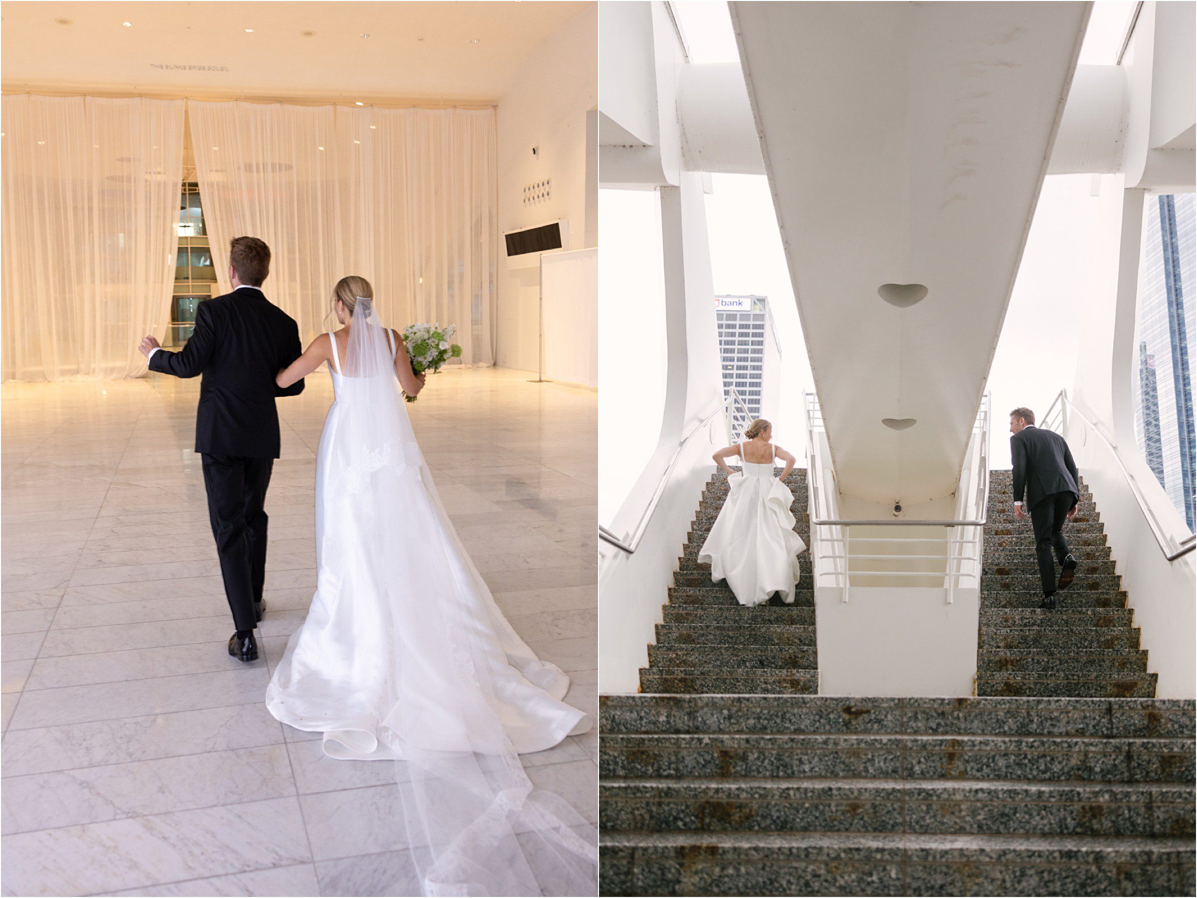 Brooke & Matt are joy incarnate. Their friends adore them, their parents practically beam when looking at them, and the two of them are hearts-on-the-sleeve-dance-like-no-one-is-watching kind of people. And man oh man, a wedding day filled with that kind of delight and love is exactly what a photographer needs to fill the proverbial tank and stay grounded in the moment on a wedding day. Theirs was an uncharacteristically stormy summer day but we made the most of our dry minutes and they got to see one another for the first time on the roof of Hotel Metro and take in Lake Michigan views with their wedding party. Even when the sun declined to shine outside they brought the summer air in with them via a design by Jane Kelly Floral that managed to make The Milwaukee Art Museum even more gorgeous. You’ll have to forgive how many detail shots there are in this post, but seriously, every delicious bluebell, sneak peek of Brooke’s sky high heels, and focus on the texture and pattern of the day just breathes life into my soul so let’s go with it. In the end our collective reward is one of the most beautiful stormy sunset sessions we’ve ever photographed and the happiest dancing grandpa you ever did see.