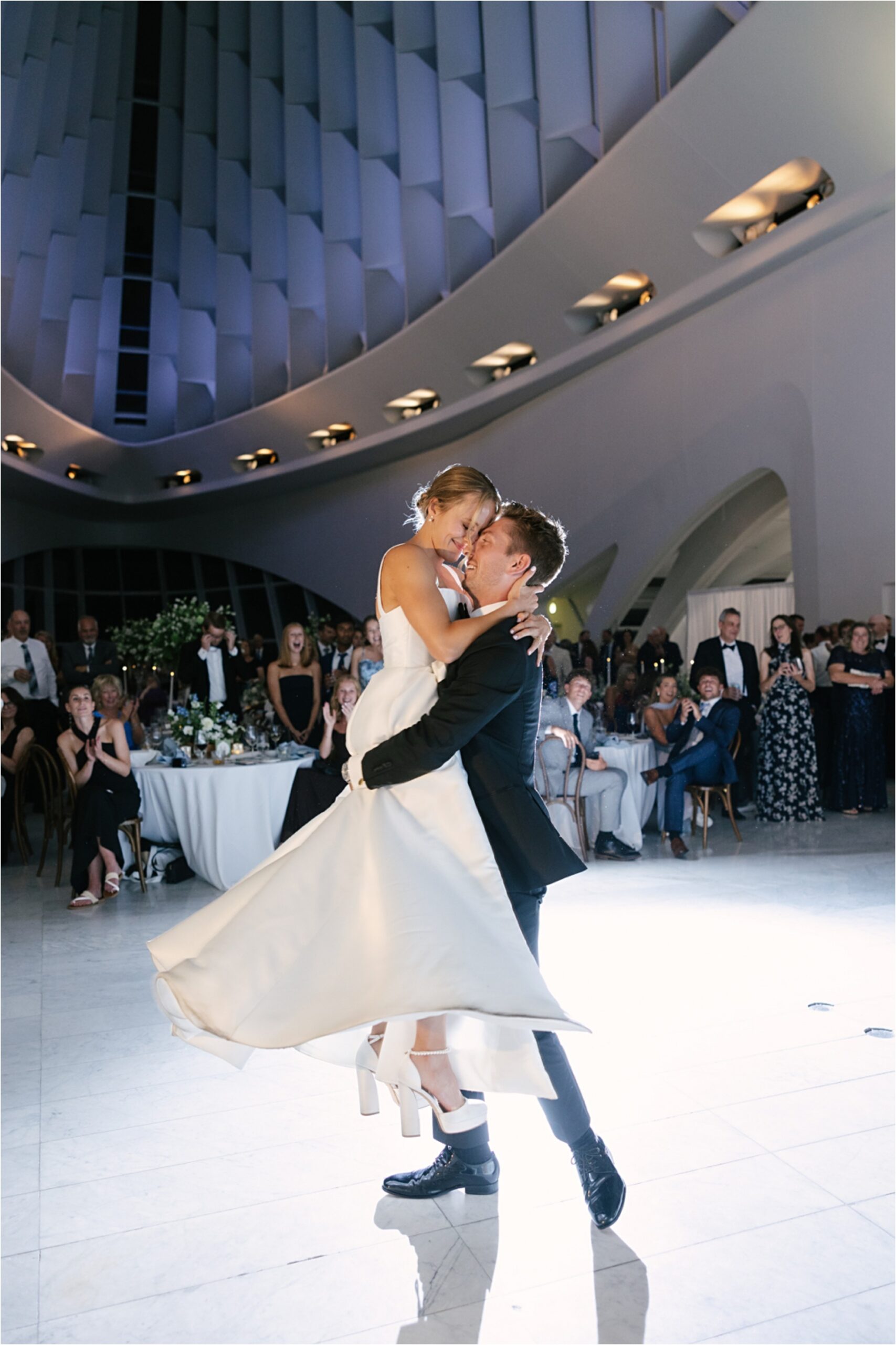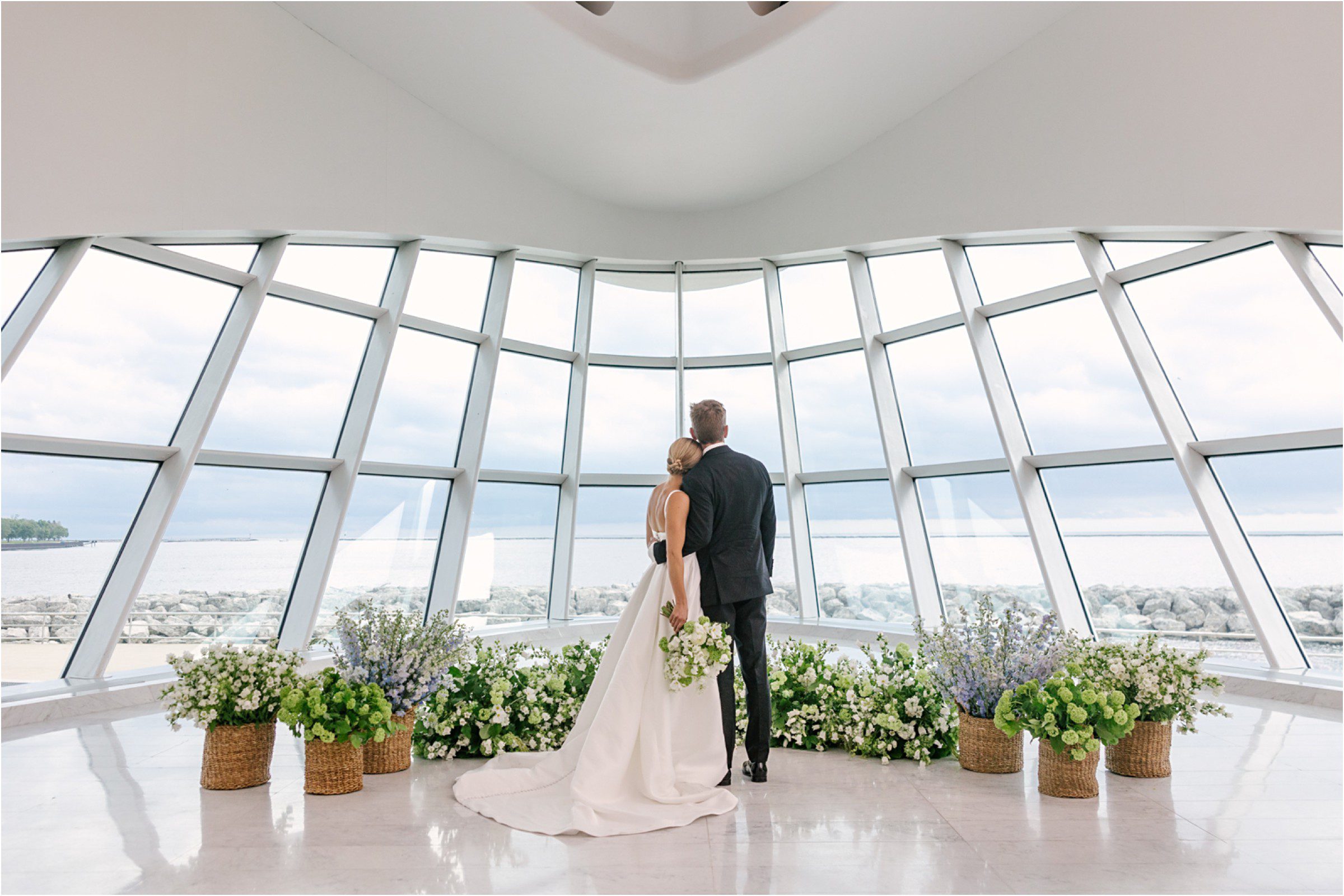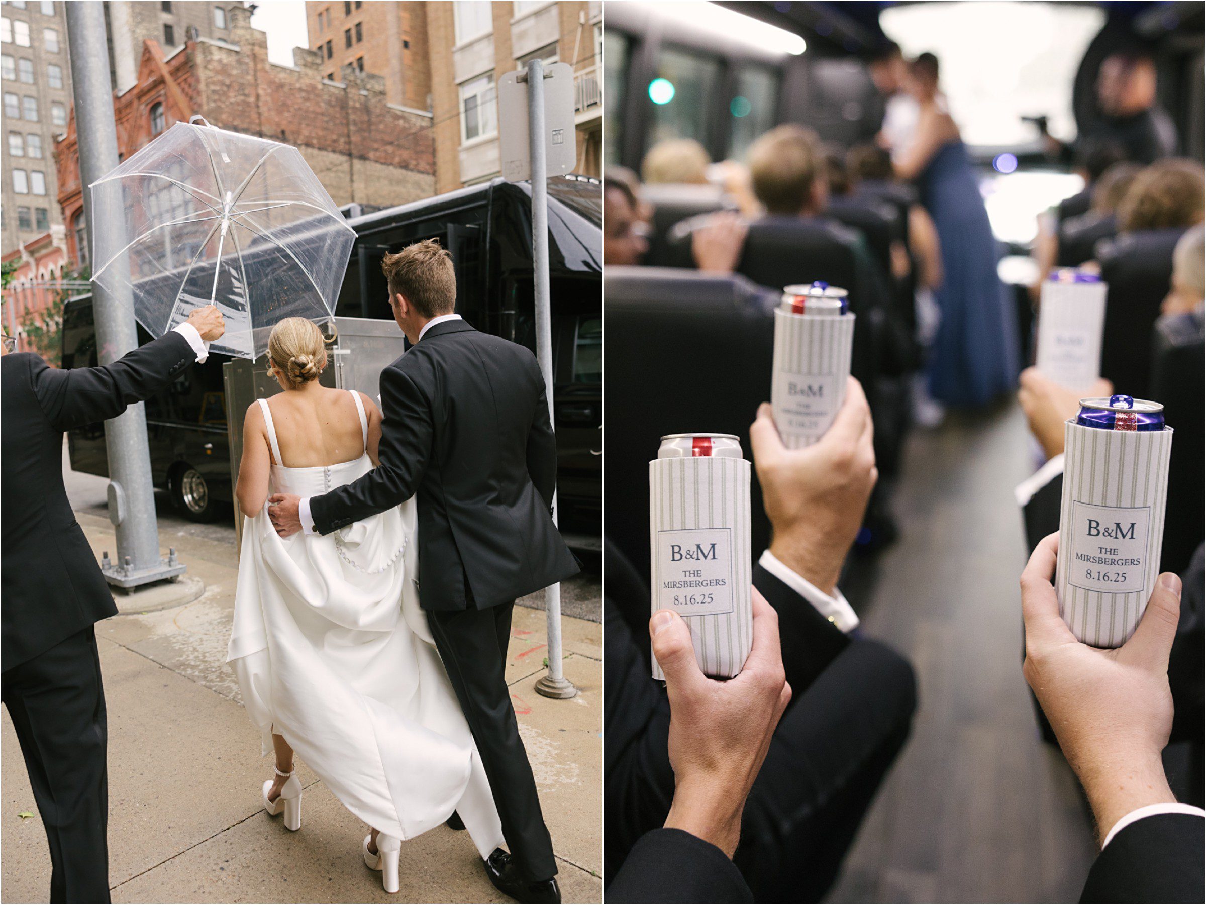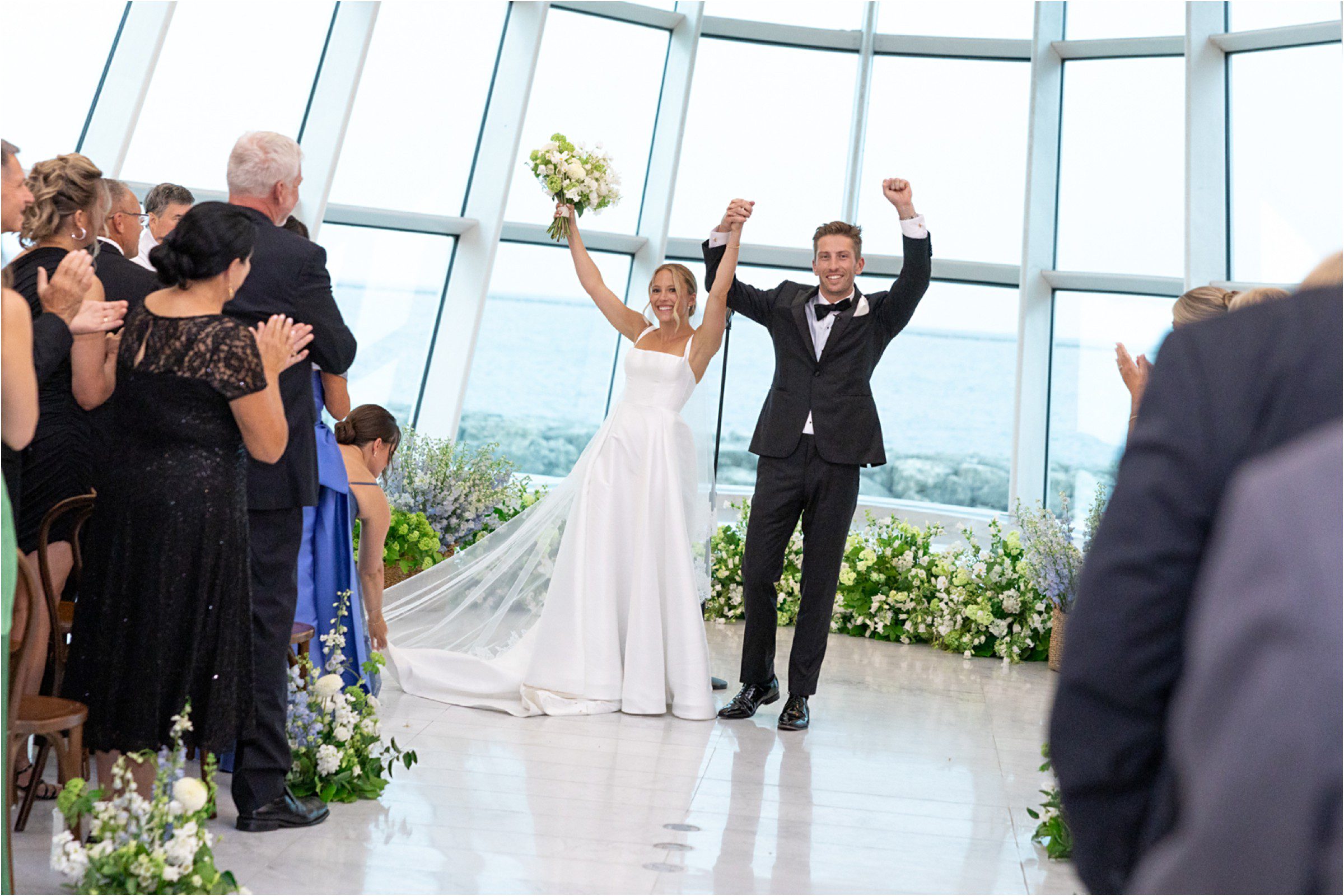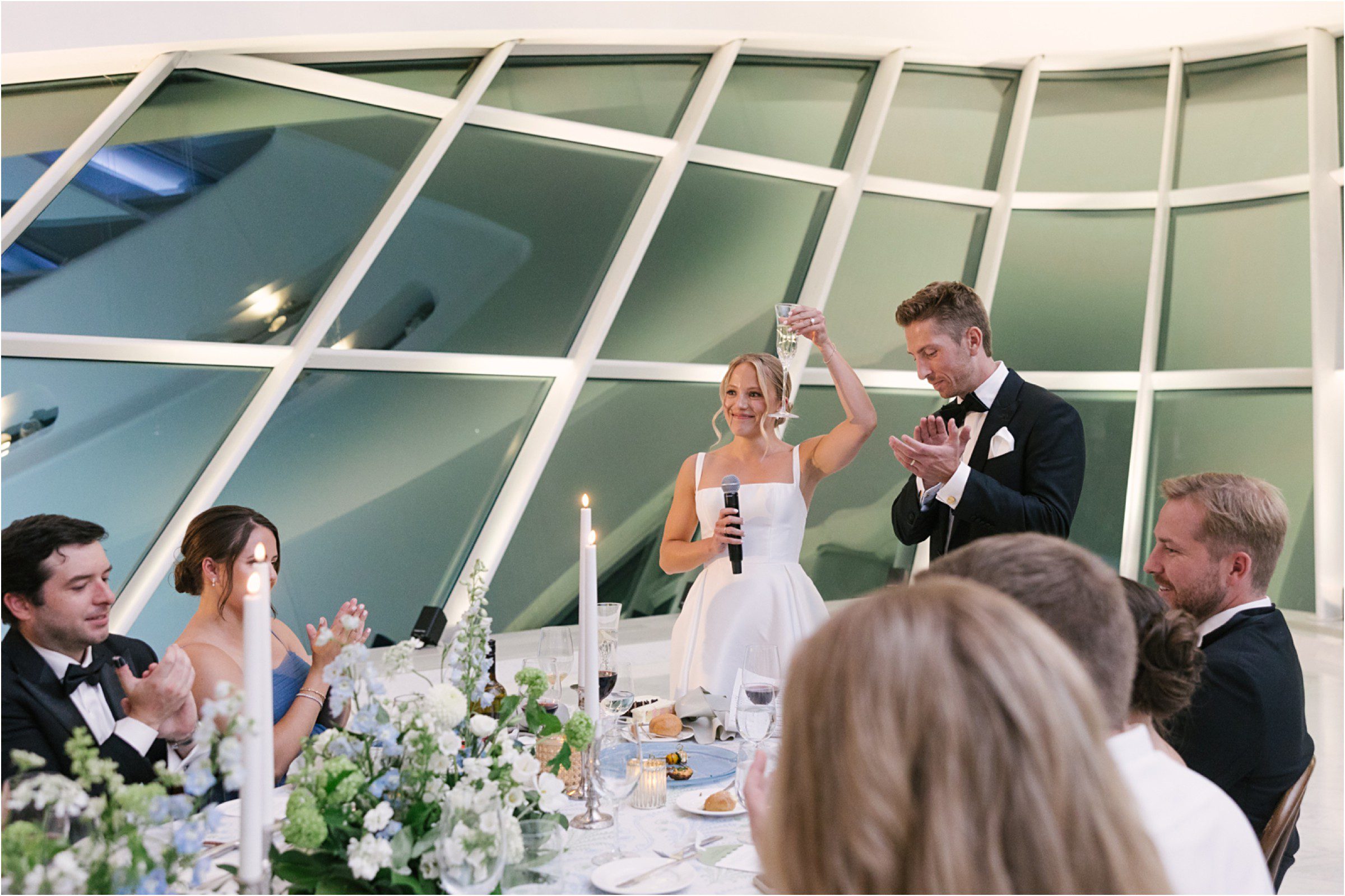 Brooke & Matt are joy incarnate. Their friends adore them, their parents practically beam when looking at them, and the two of them are hearts-on-the-sleeve-dance-like-no-one-is-watching kind of people. And man oh man, a wedding day filled with that kind of delight and love is exactly what a photographer needs to fill the proverbial tank and stay grounded in the moment on a wedding day. Theirs was an uncharacteristically stormy summer day but we made the most of our dry minutes and they got to see one another for the first time on the roof of Hotel Metro and take in Lake Michigan views with their wedding party. Even when the sun declined to shine outside they brought the summer air in with them via a design by Jane Kelly Floral that managed to make The Milwaukee Art Museum even more gorgeous. You’ll have to forgive how many detail shots there are in this post, but seriously, every delicious bluebell, sneak peek of Brooke’s sky high heels, and focus on the texture and pattern of the day just breathes life into my soul so let’s go with it. In the end our collective reward is one of the most beautiful stormy sunset sessions we’ve ever photographed and the happiest dancing grandpa you ever did see.