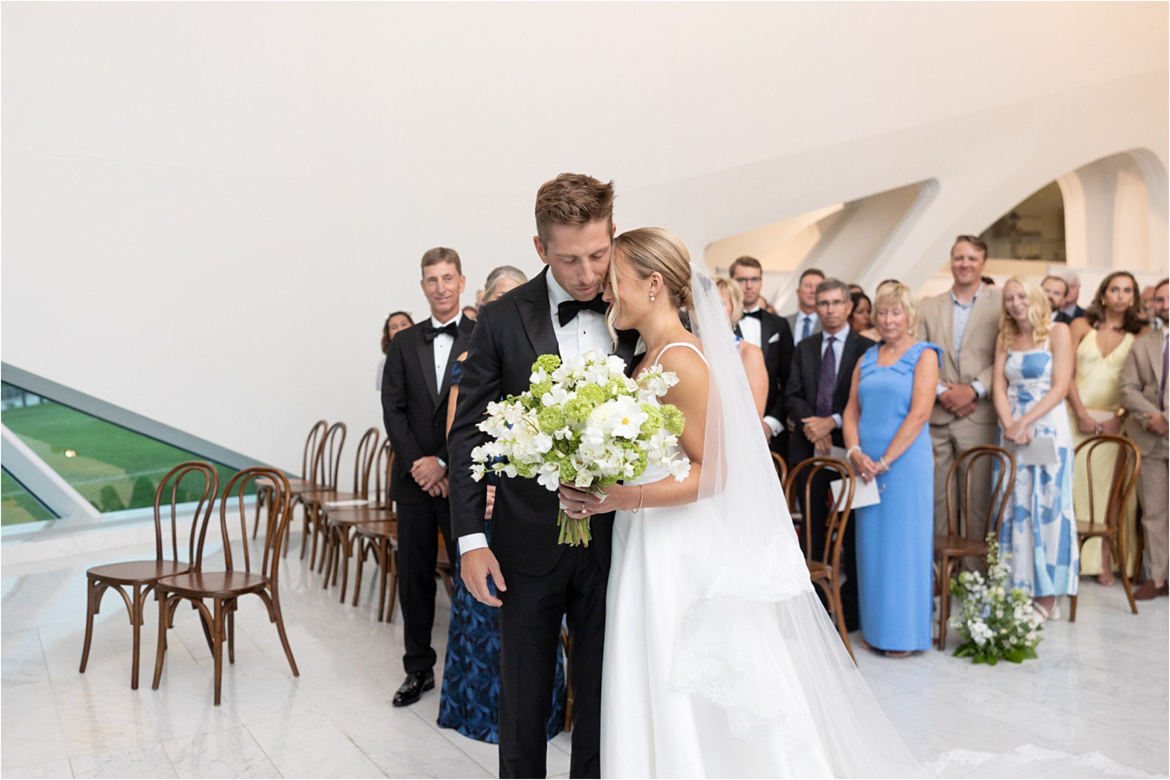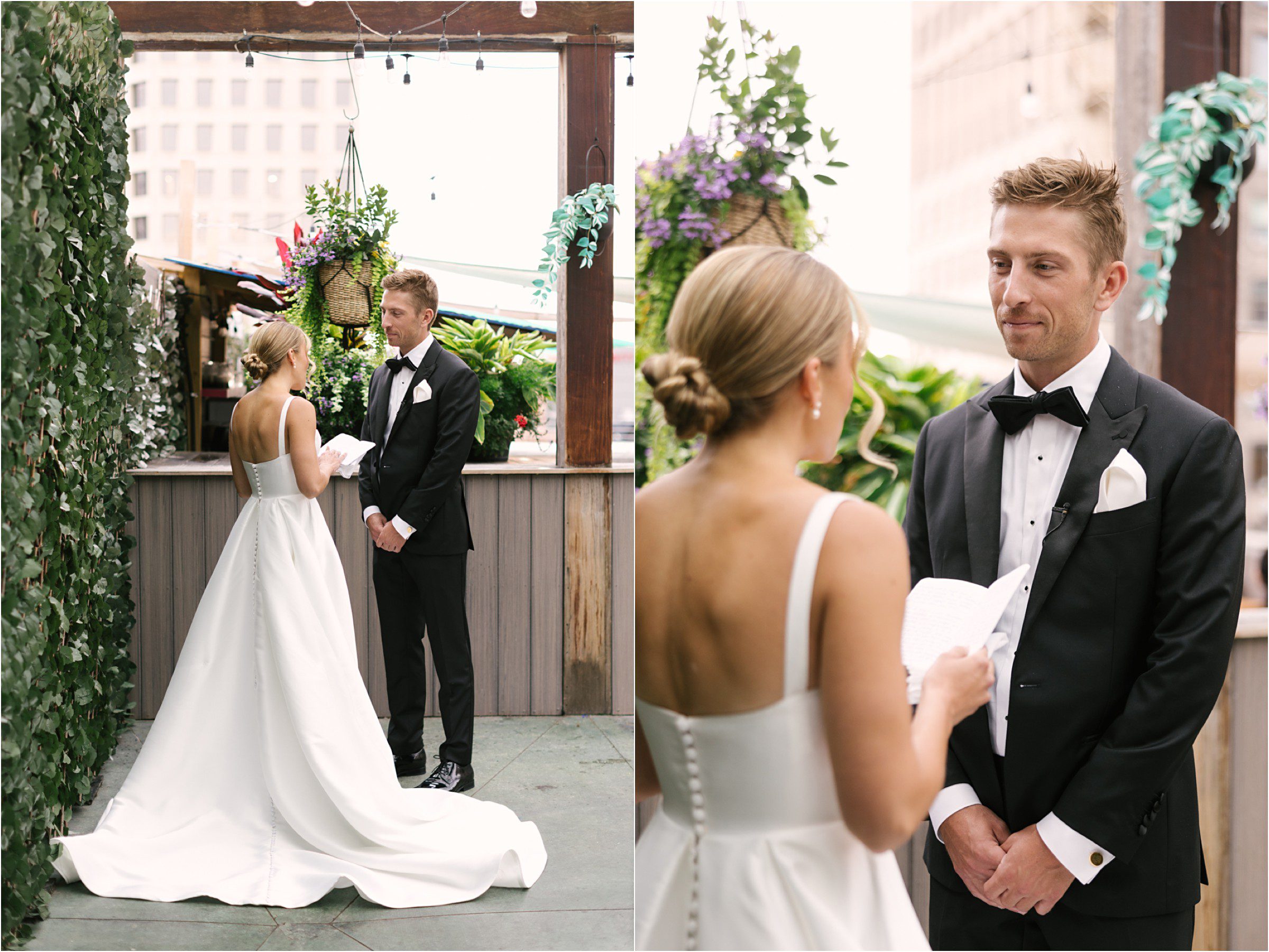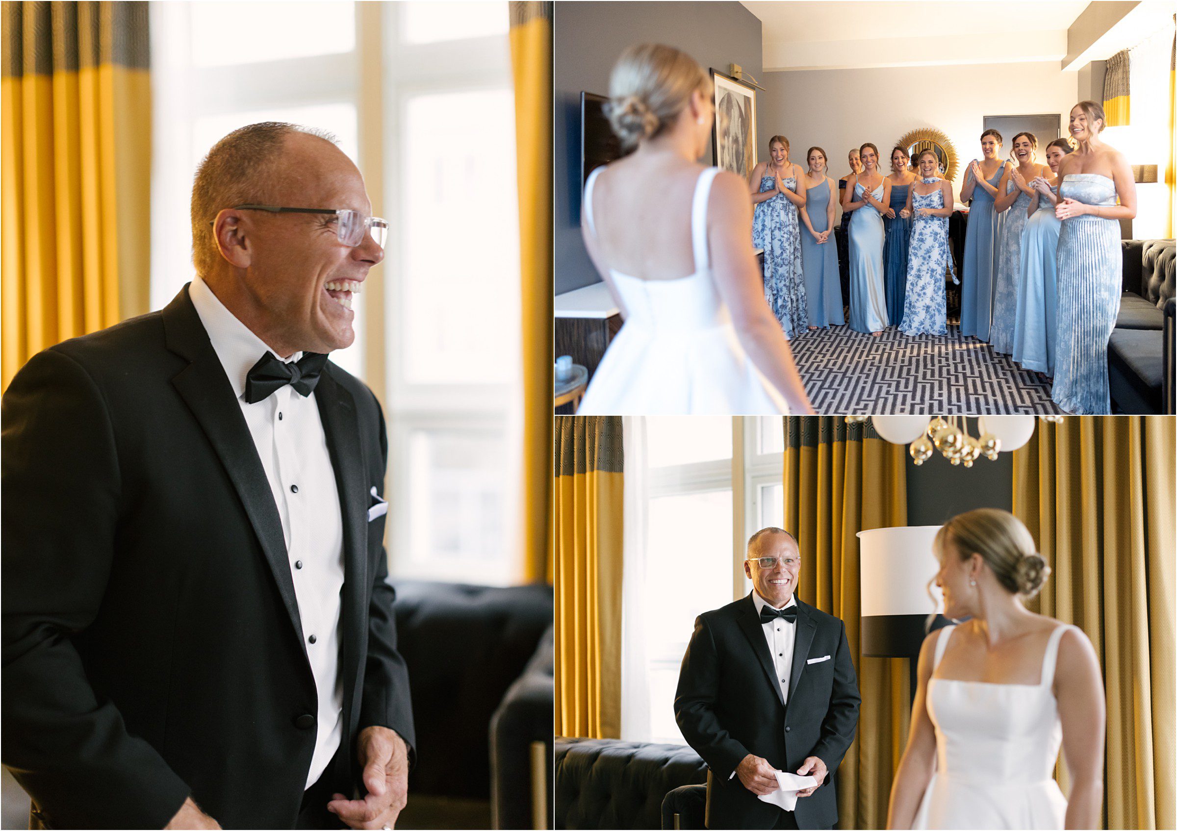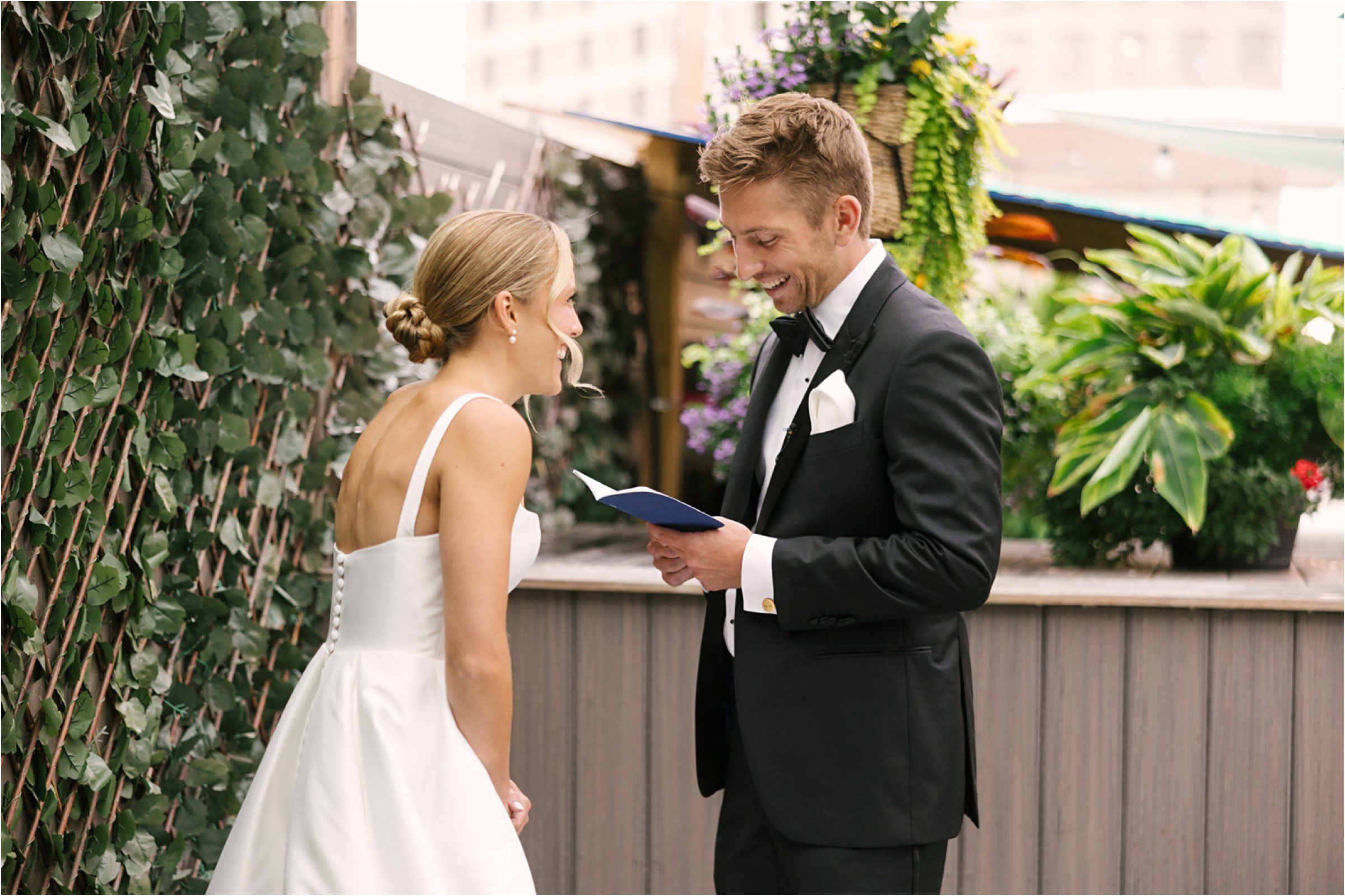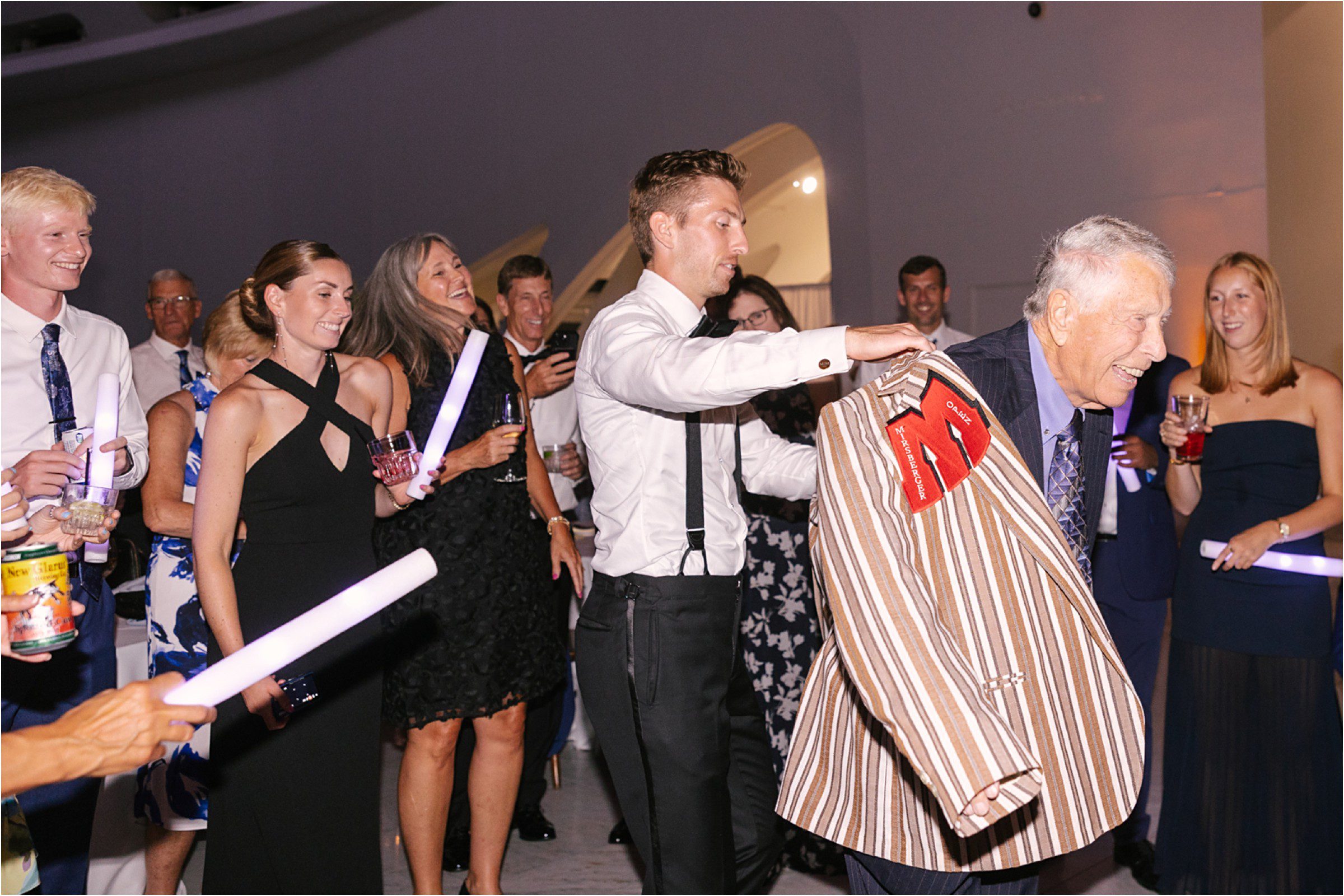 Brooke & Matt are joy incarnate. Their friends adore them, their parents practically beam when looking at them, and the two of them are hearts-on-the-sleeve-dance-like-no-one-is-watching kind of people. And man oh man, a wedding day filled with that kind of delight and love is exactly what a photographer needs to fill the proverbial tank and stay grounded in the moment on a wedding day. Theirs was an uncharacteristically stormy summer day but we made the most of our dry minutes and they got to see one another for the first time on the roof of Hotel Metro and take in Lake Michigan views with their wedding party. Even when the sun declined to shine outside they brought the summer air in with them via a design by Jane Kelly Floral that managed to make The Milwaukee Art Museum even more gorgeous. You’ll have to forgive how many detail shots there are in this post, but seriously, every delicious bluebell, sneak peek of Brooke’s sky high heels, and focus on the texture and pattern of the day just breathes life into my soul so let’s go with it. In the end our collective reward is one of the most beautiful stormy sunset sessions we’ve ever photographed and the happiest dancing grandpa you ever did see.
