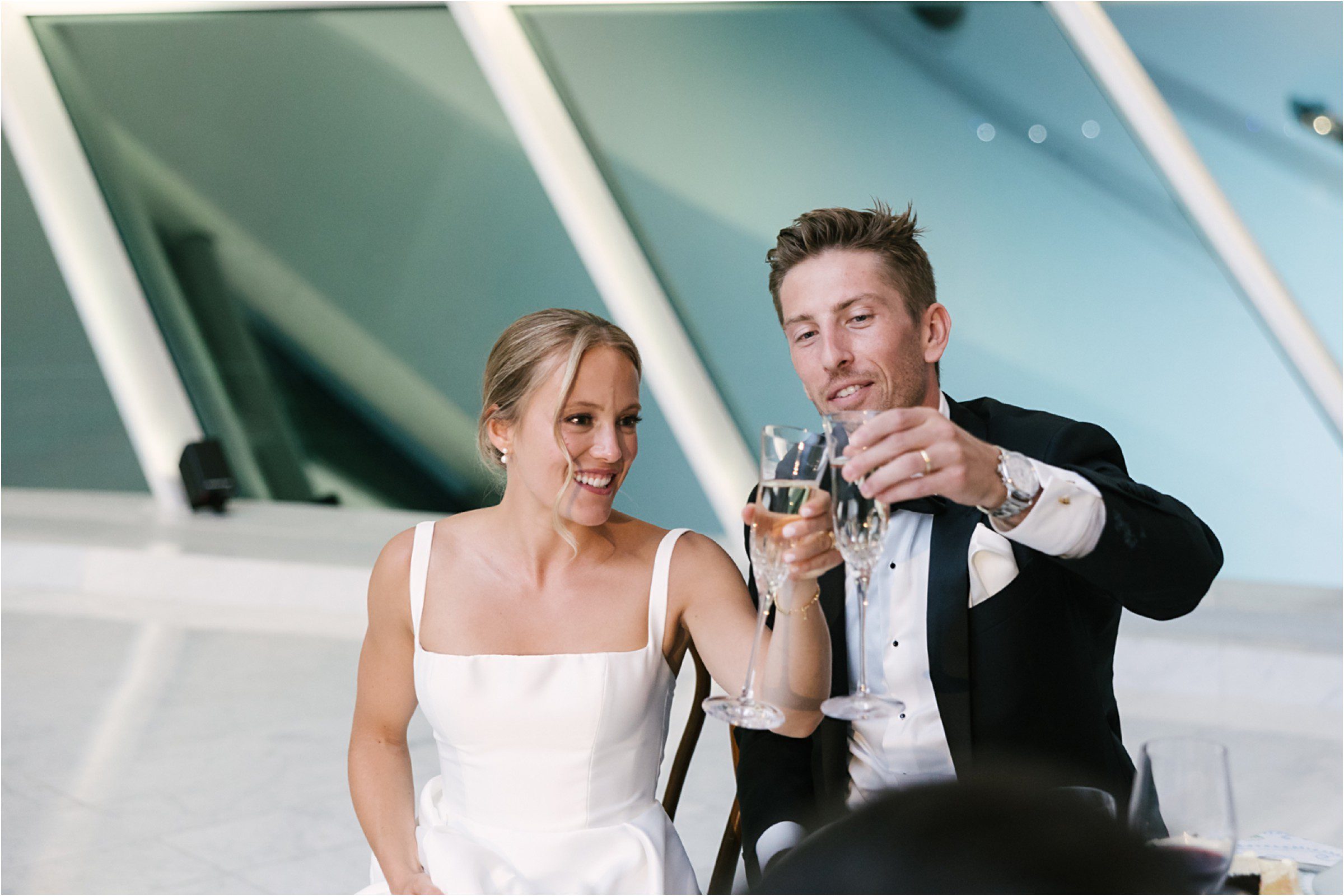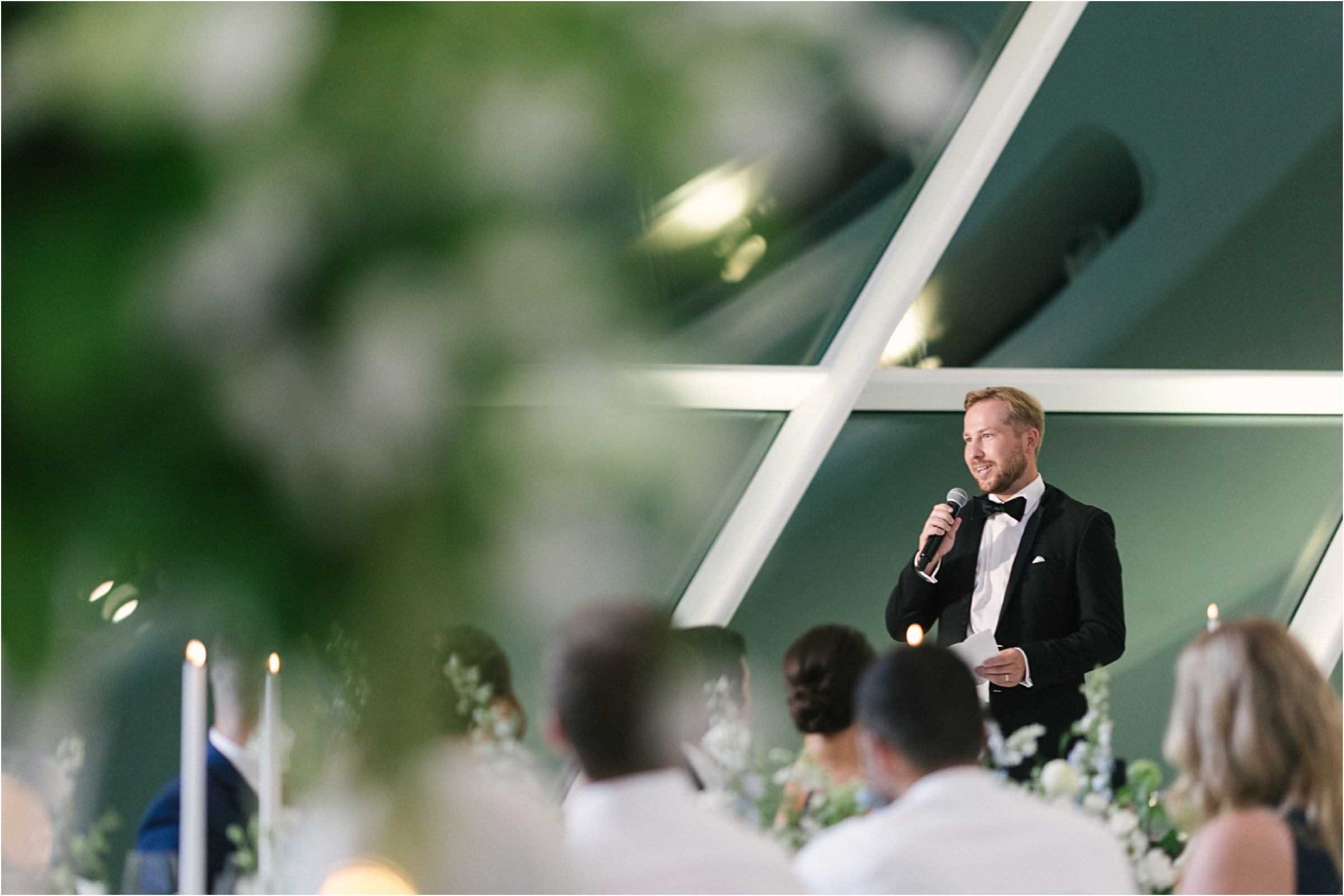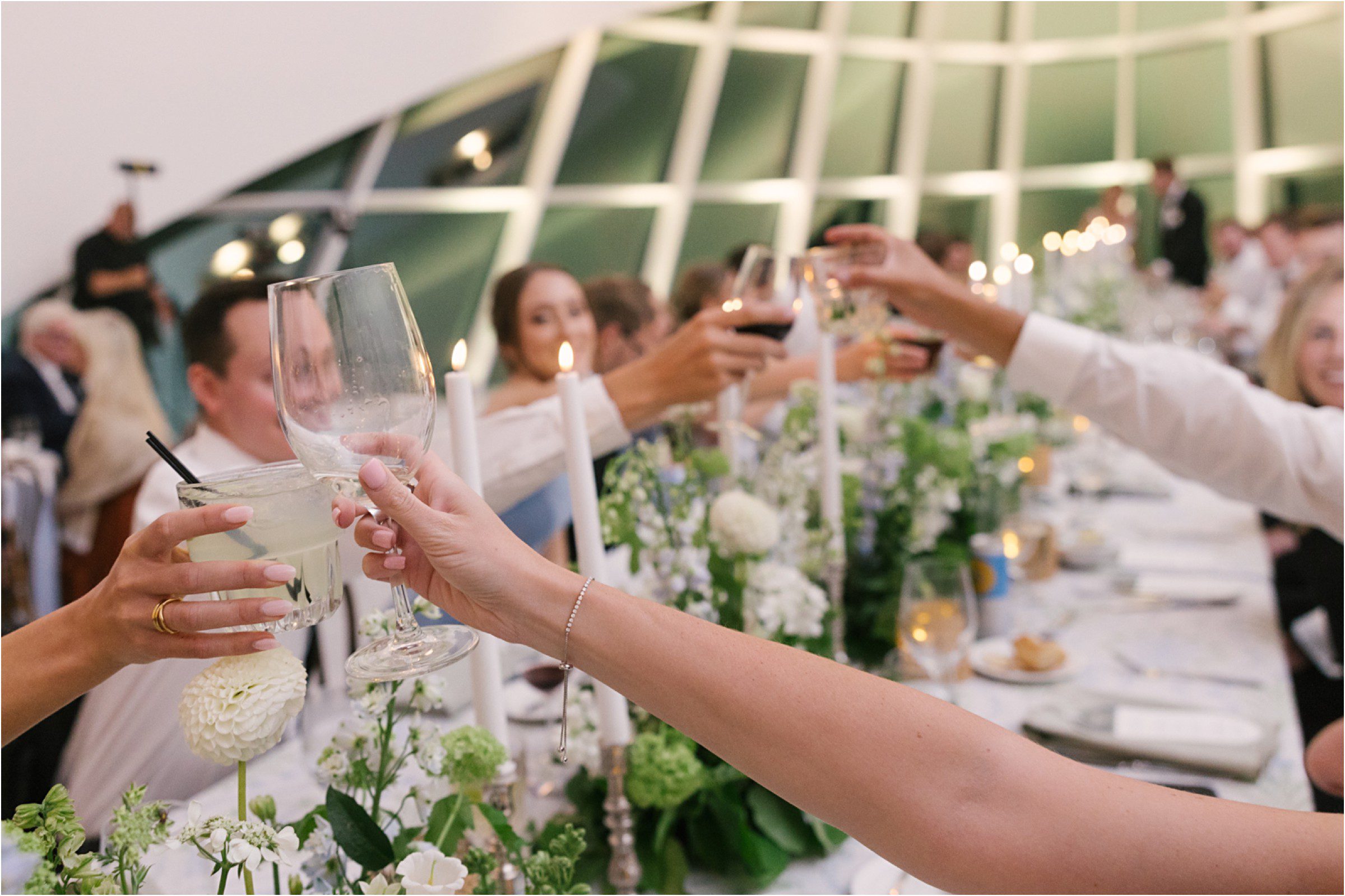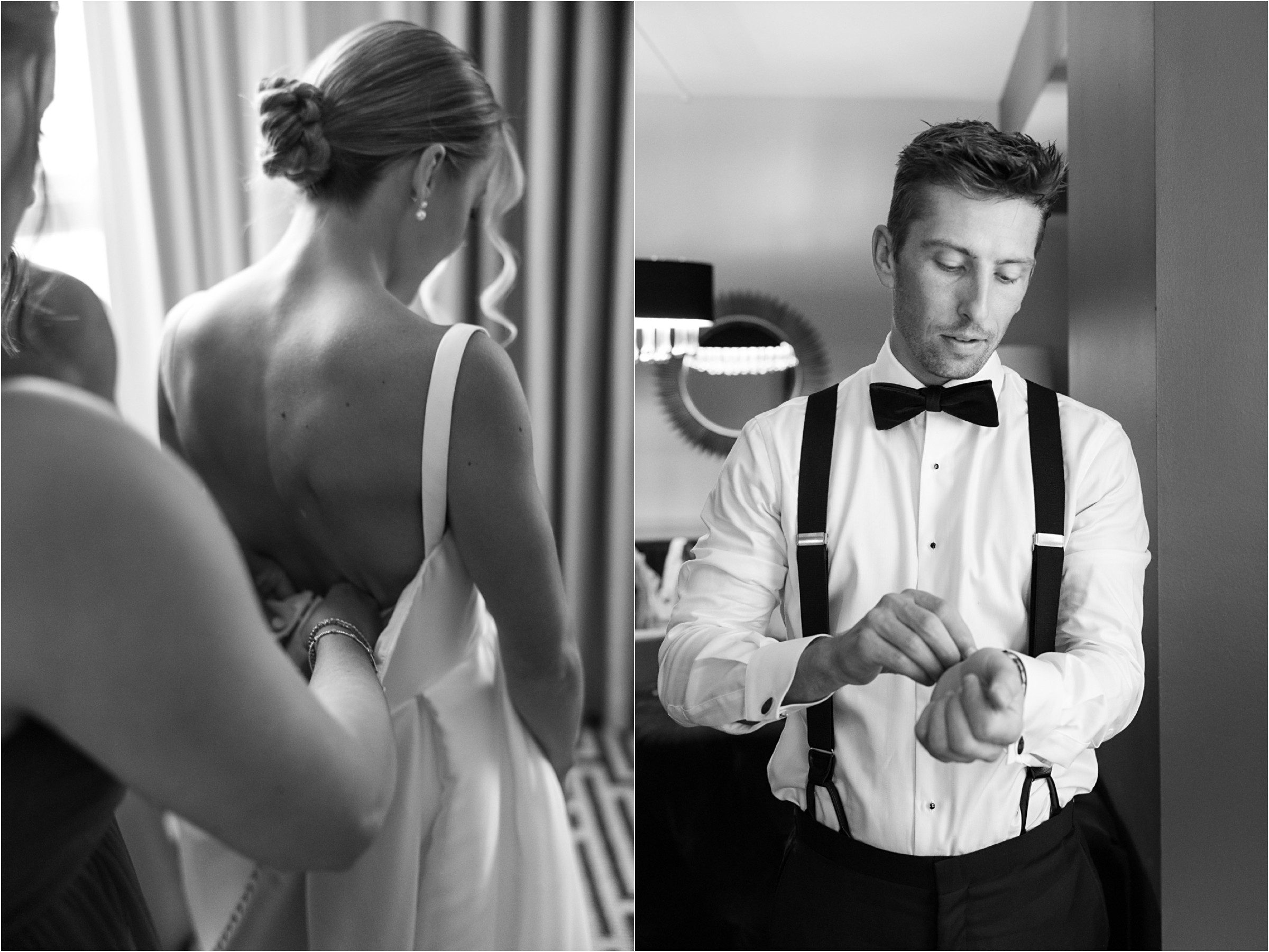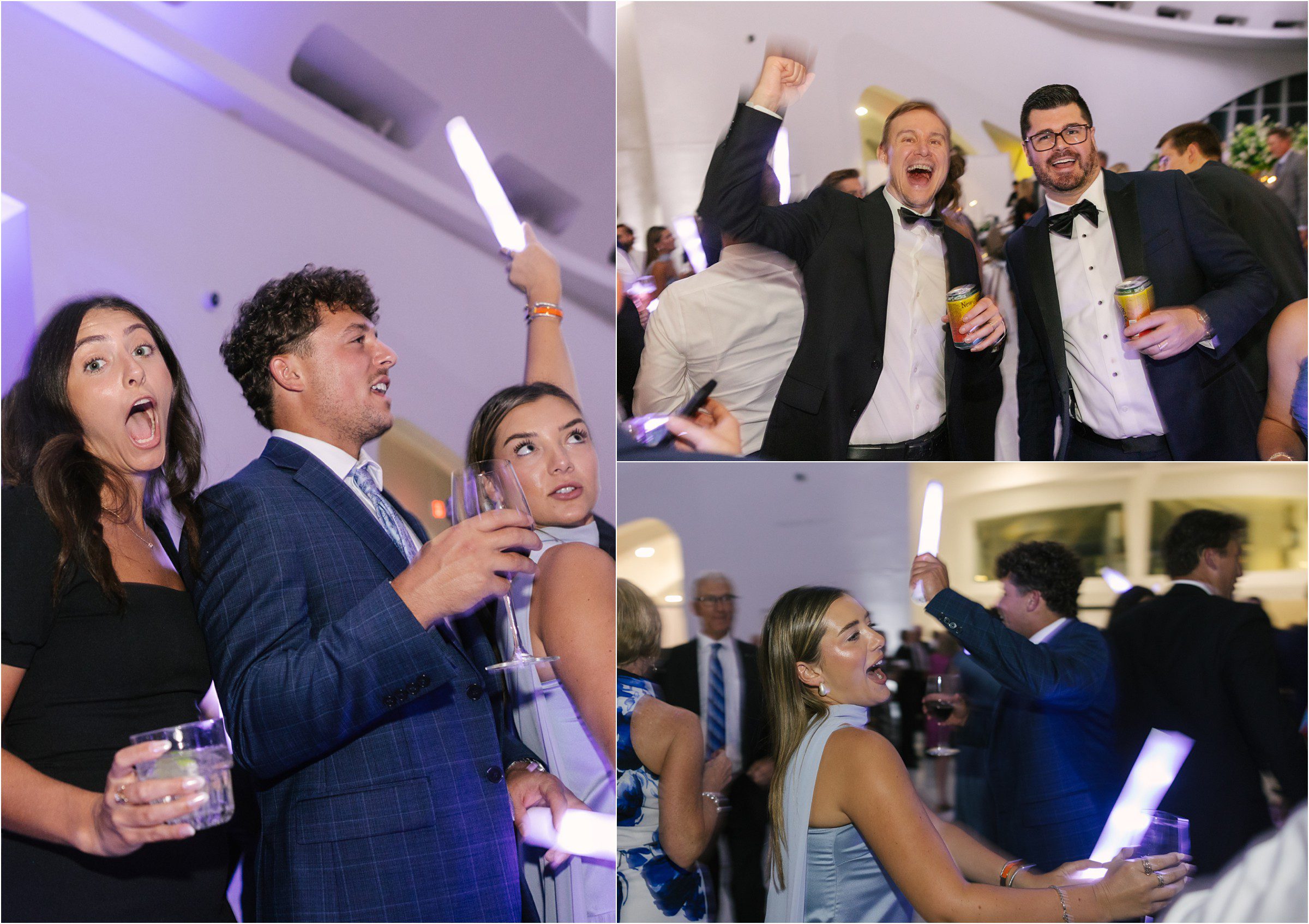 Brooke & Matt are joy incarnate. Their friends adore them, their parents practically beam when looking at them, and the two of them are hearts-on-the-sleeve-dance-like-no-one-is-watching kind of people. And man oh man, a wedding day filled with that kind of delight and love is exactly what a photographer needs to fill the proverbial tank and stay grounded in the moment on a wedding day. Theirs was an uncharacteristically stormy summer day but we made the most of our dry minutes and they got to see one another for the first time on the roof of Hotel Metro and take in Lake Michigan views with their wedding party. Even when the sun declined to shine outside they brought the summer air in with them via a design by Jane Kelly Floral that managed to make The Milwaukee Art Museum even more gorgeous. You’ll have to forgive how many detail shots there are in this post, but seriously, every delicious bluebell, sneak peek of Brooke’s sky high heels, and focus on the texture and pattern of the day just breathes life into my soul so let’s go with it. In the end our collective reward is one of the most beautiful stormy sunset sessions we’ve ever photographed and the happiest dancing grandpa you ever did see.