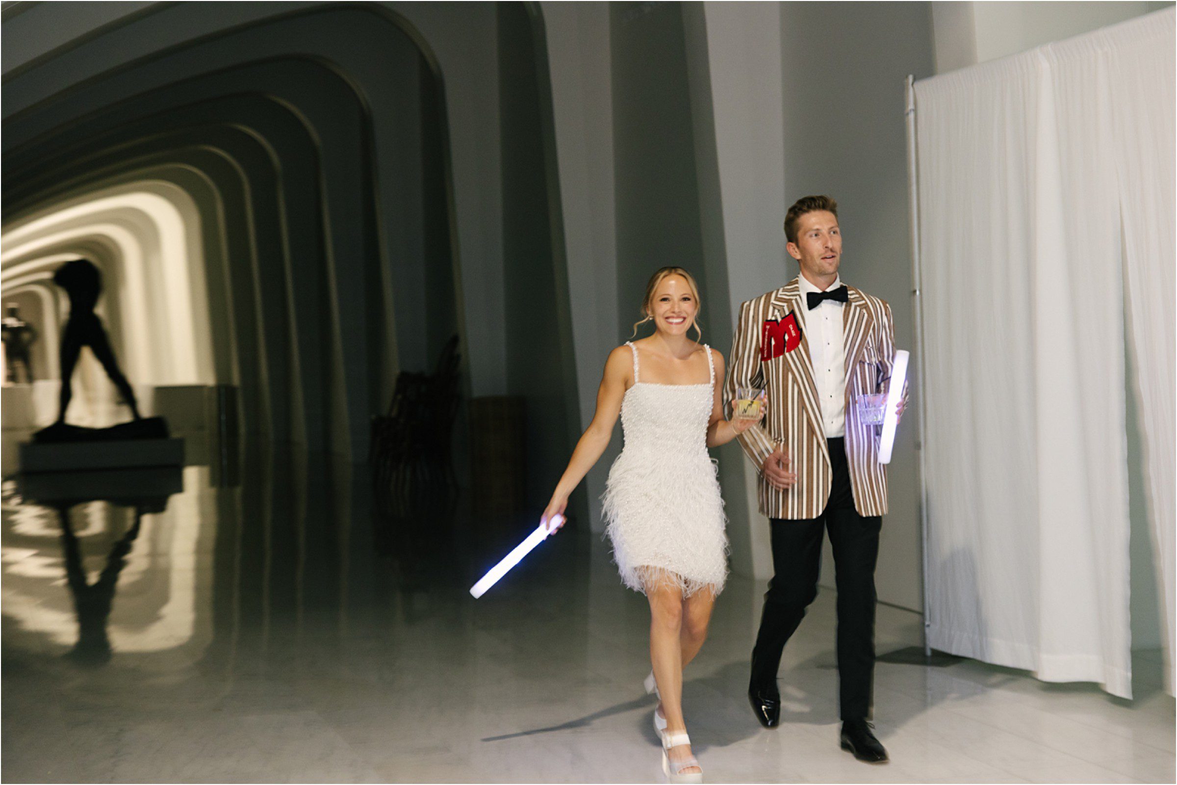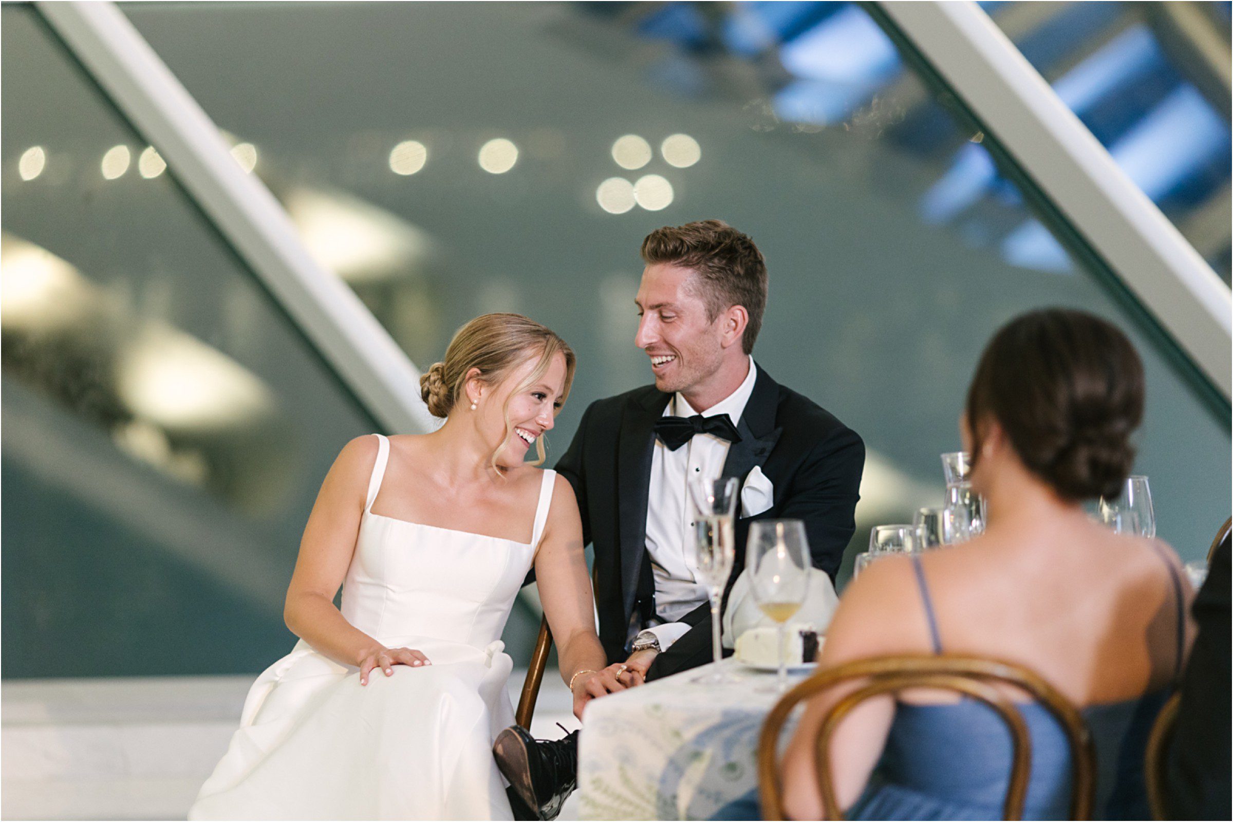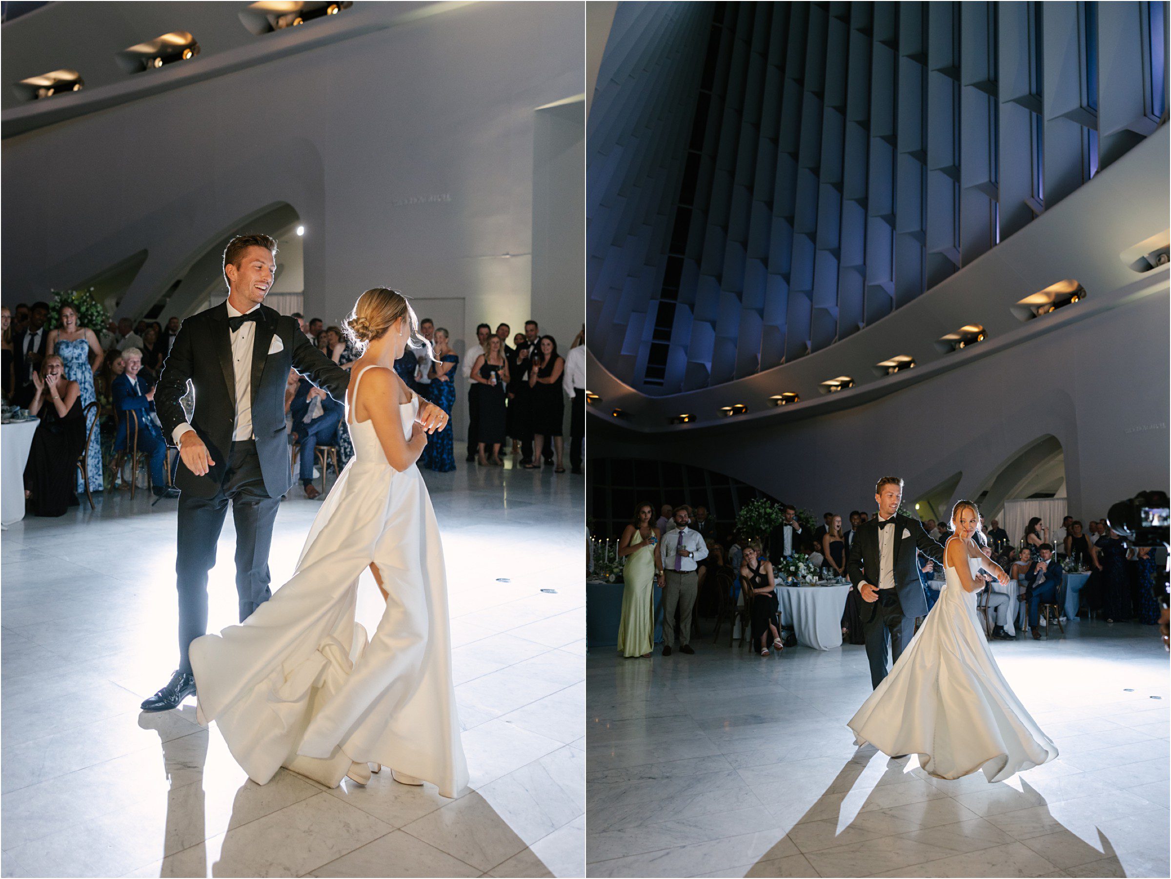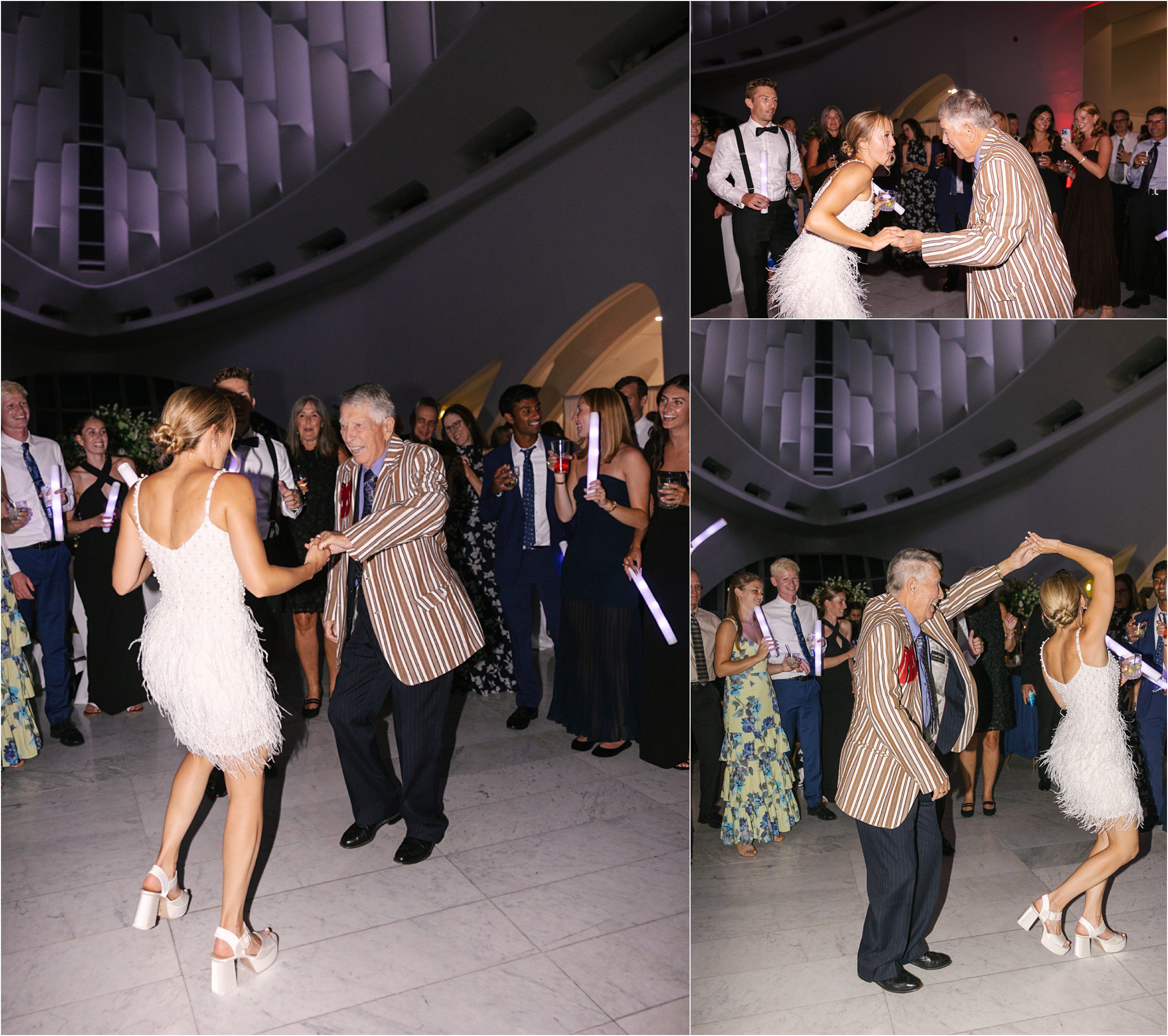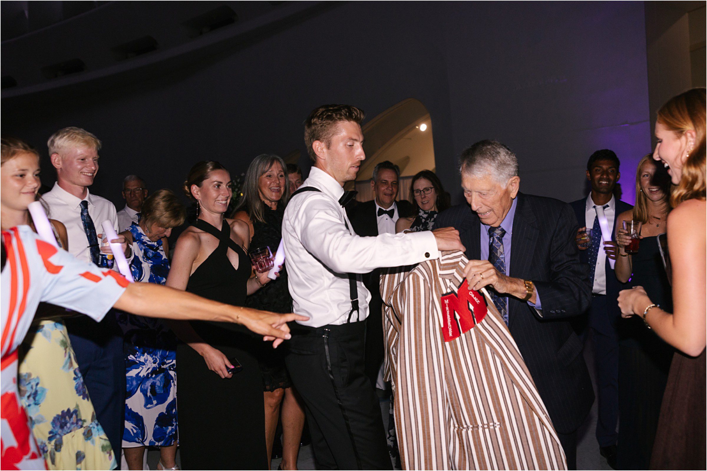 Brooke & Matt are joy incarnate. Their friends adore them, their parents practically beam when looking at them, and the two of them are hearts-on-the-sleeve-dance-like-no-one-is-watching kind of people. And man oh man, a wedding day filled with that kind of delight and love is exactly what a photographer needs to fill the proverbial tank and stay grounded in the moment on a wedding day. Theirs was an uncharacteristically stormy summer day but we made the most of our dry minutes and they got to see one another for the first time on the roof of Hotel Metro and take in Lake Michigan views with their wedding party. Even when the sun declined to shine outside they brought the summer air in with them via a design by Jane Kelly Floral that managed to make The Milwaukee Art Museum even more gorgeous. You’ll have to forgive how many detail shots there are in this post, but seriously, every delicious bluebell, sneak peek of Brooke’s sky high heels, and focus on the texture and pattern of the day just breathes life into my soul so let’s go with it. In the end our collective reward is one of the most beautiful stormy sunset sessions we’ve ever photographed and the happiest dancing grandpa you ever did see.