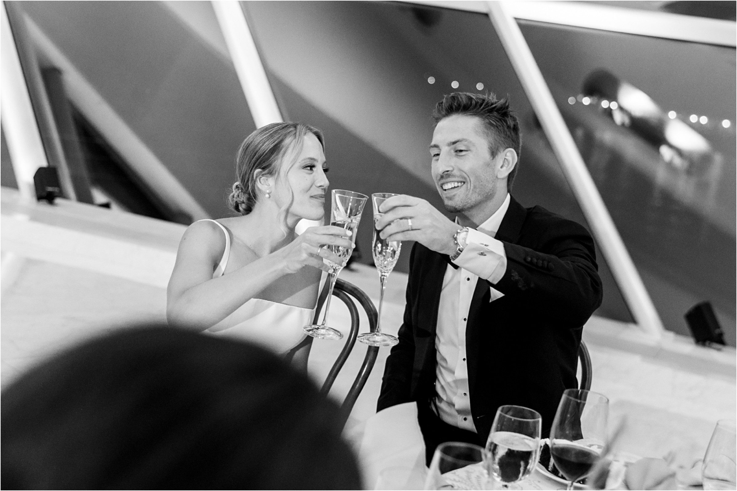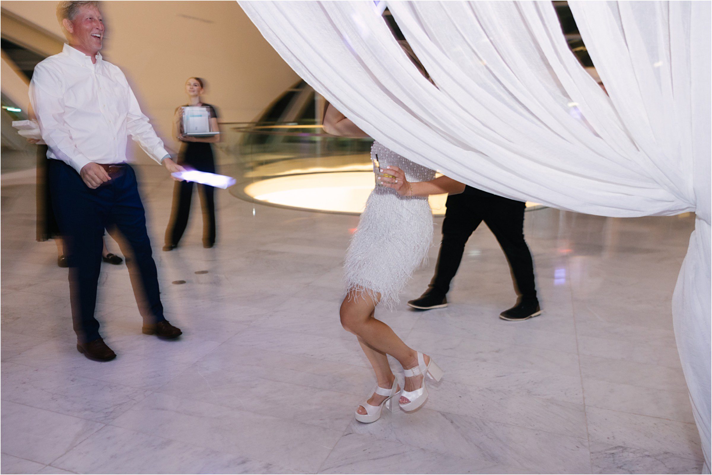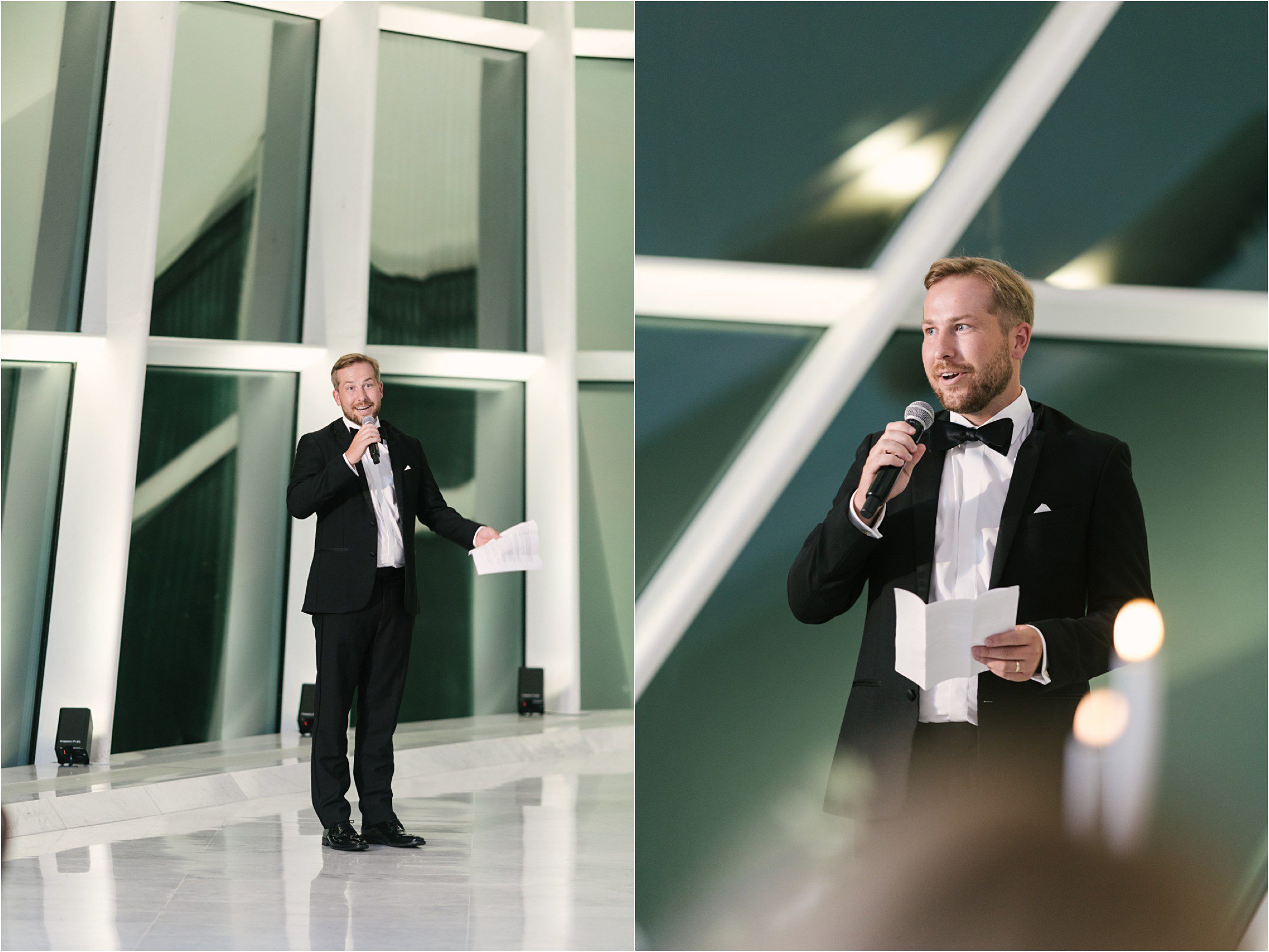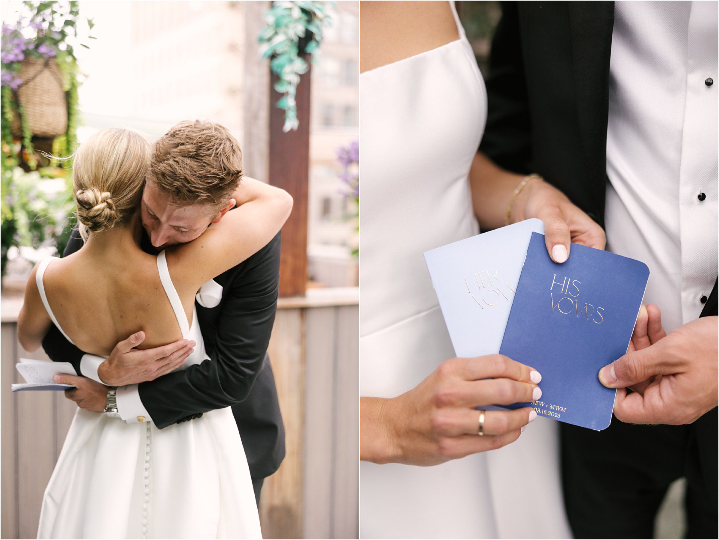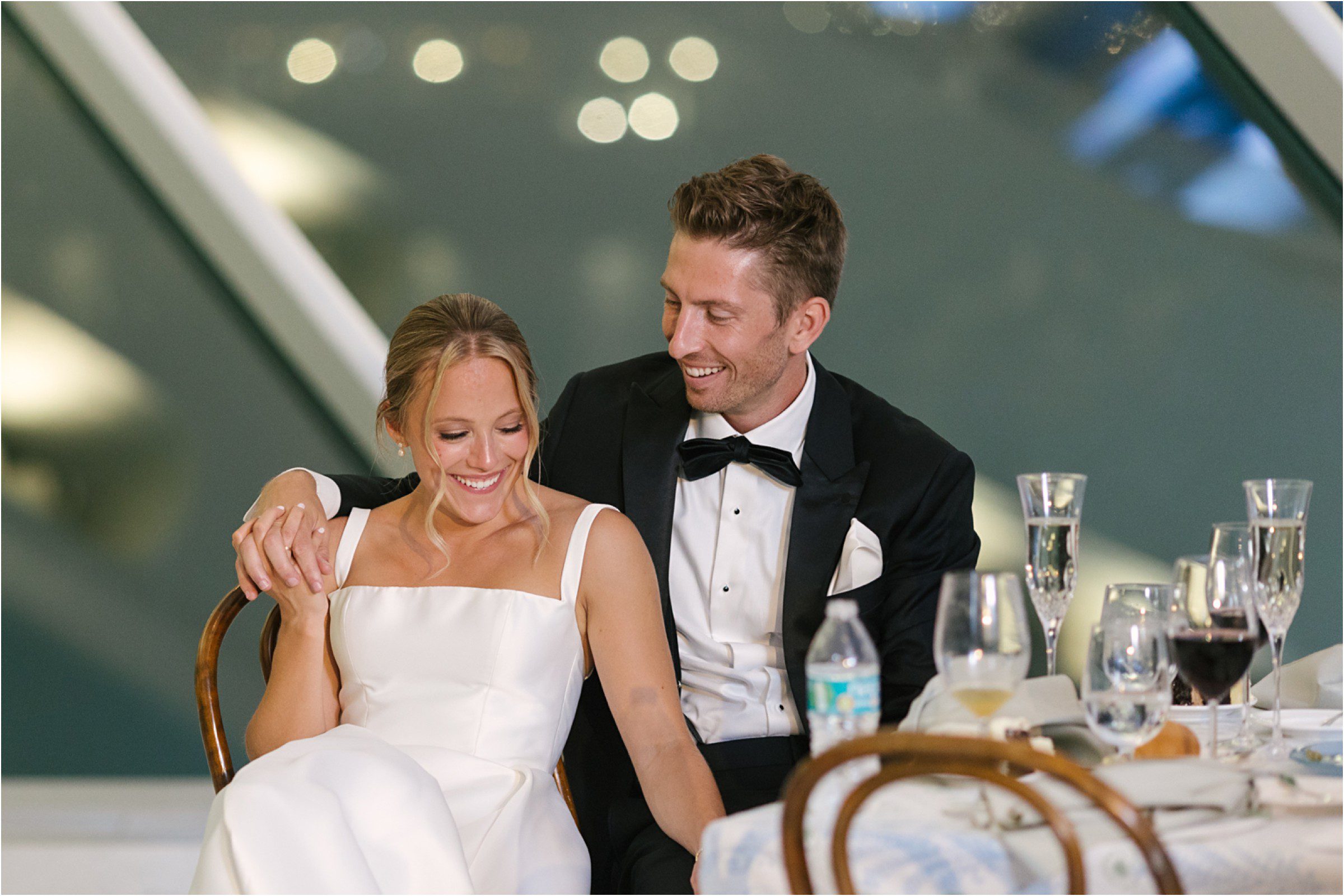 Brooke & Matt are joy incarnate. Their friends adore them, their parents practically beam when looking at them, and the two of them are hearts-on-the-sleeve-dance-like-no-one-is-watching kind of people. And man oh man, a wedding day filled with that kind of delight and love is exactly what a photographer needs to fill the proverbial tank and stay grounded in the moment on a wedding day. Theirs was an uncharacteristically stormy summer day but we made the most of our dry minutes and they got to see one another for the first time on the roof of Hotel Metro and take in Lake Michigan views with their wedding party. Even when the sun declined to shine outside they brought the summer air in with them via a design by Jane Kelly Floral that managed to make The Milwaukee Art Museum even more gorgeous. You’ll have to forgive how many detail shots there are in this post, but seriously, every delicious bluebell, sneak peek of Brooke’s sky high heels, and focus on the texture and pattern of the day just breathes life into my soul so let’s go with it. In the end our collective reward is one of the most beautiful stormy sunset sessions we’ve ever photographed and the happiest dancing grandpa you ever did see.